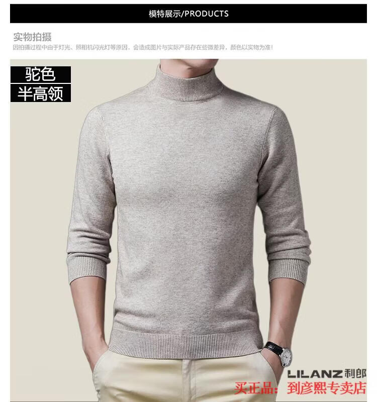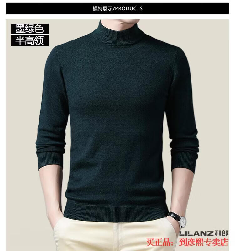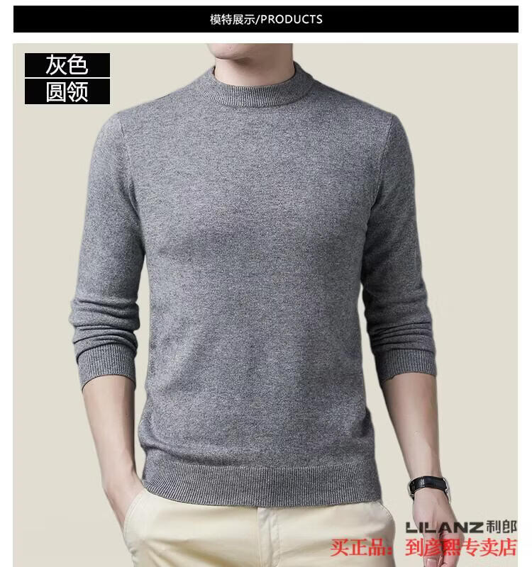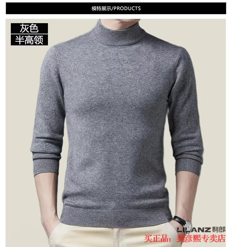 LILANZ Medio cuello alto oficial de lana pura para hombre Camisa con capas interiores de lana de punto cálida y gruesa (medio cuello alto) gris - modelo insignia S 160<80-100Jin Jin equivale a 0,5 kg>