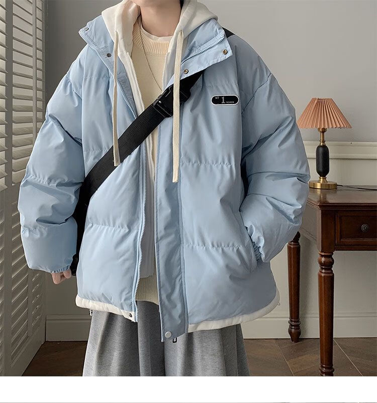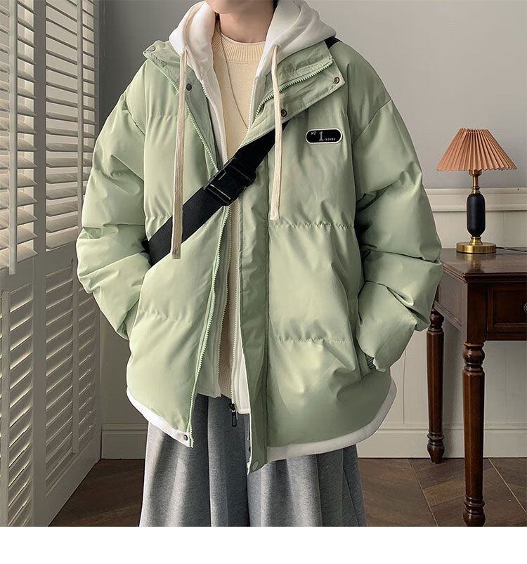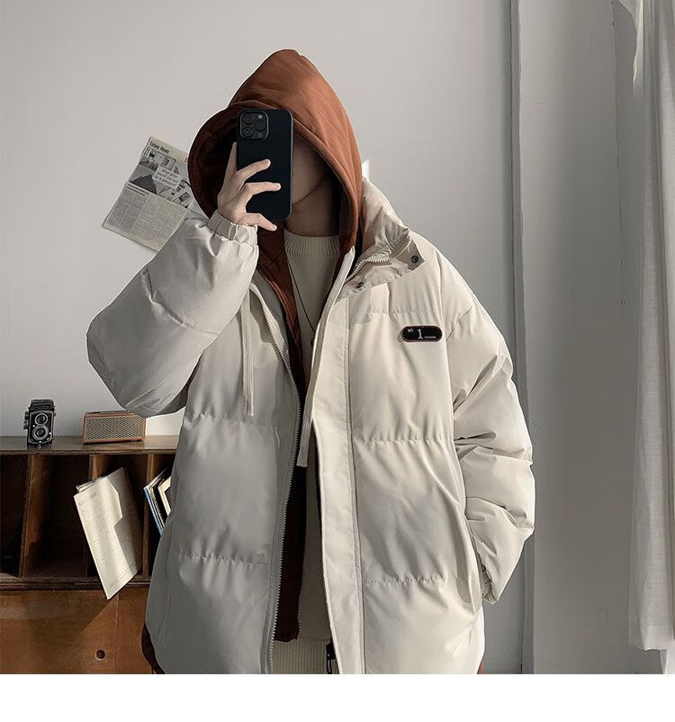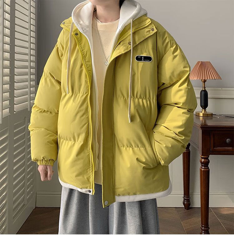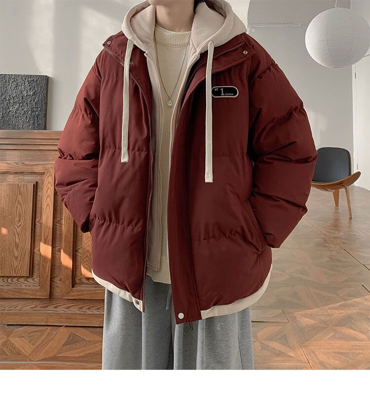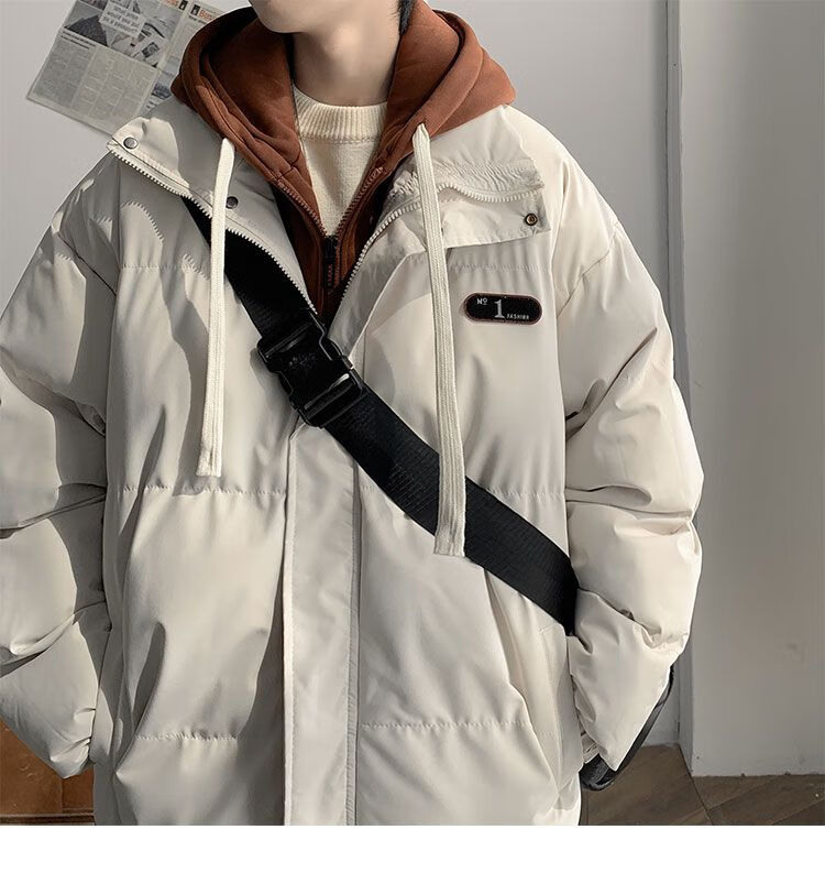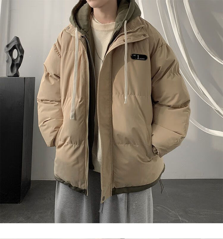 JEEP SPIRIT Jeep fake two-piece cotton coat men's winter loose casual thickened warm cotton coat jacket trendy student hooded cotton apricot XL