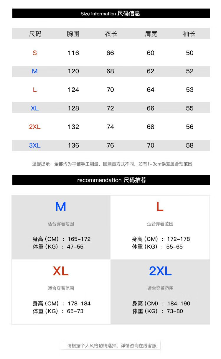 China (cm) 165 / 88-90 170 / 96-98 175 / 108-110 180 / 118-122 185 / 126-130