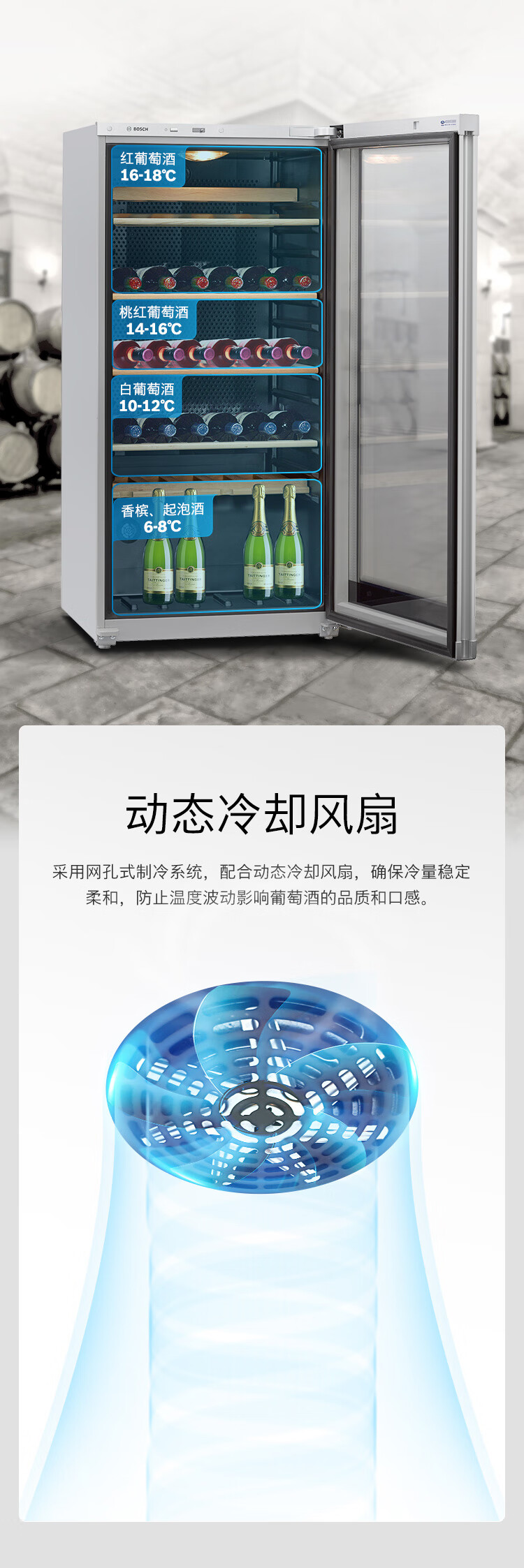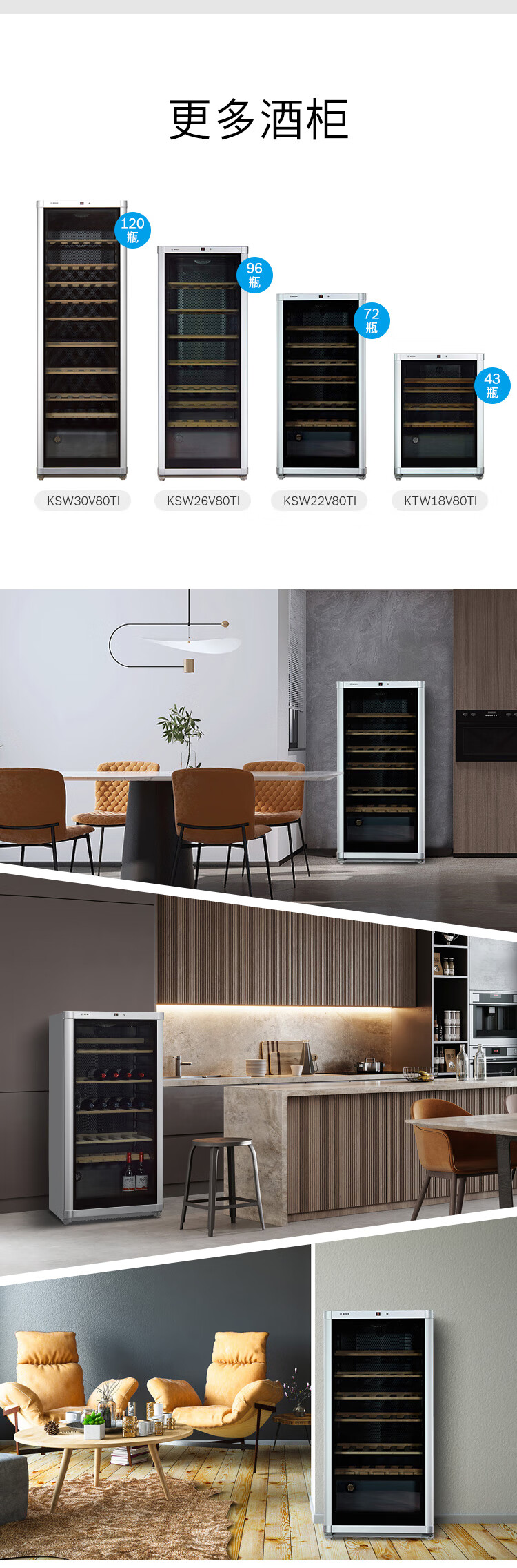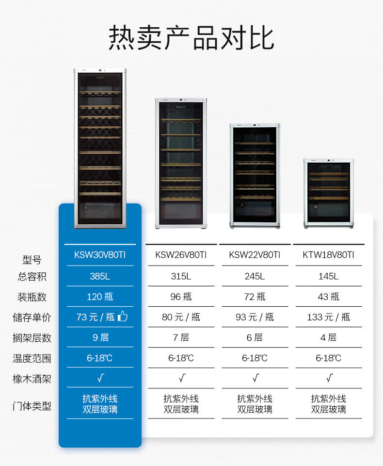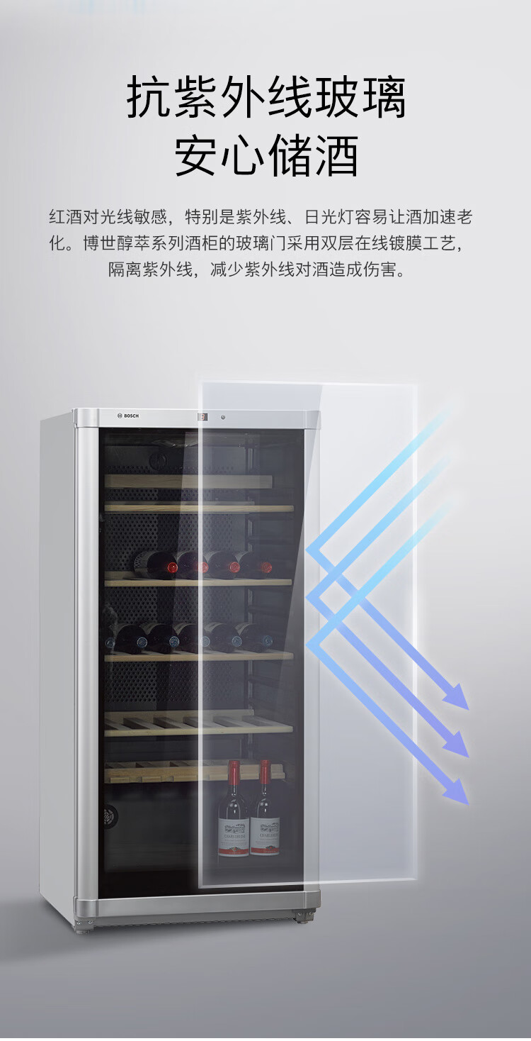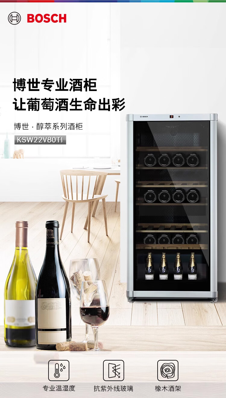 Bosch BOSCH 72-pack intelligent constant temperature professional wine cabinet household high-end solid wood wine rack 22V80 silver