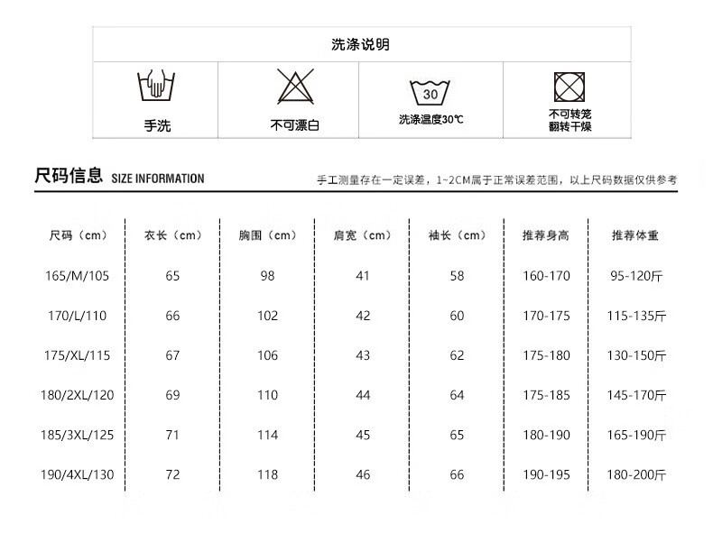 China (cm) 165 / 88-90 170 / 96-98 175 / 108-110 180 / 118-122 185 / 126-130
