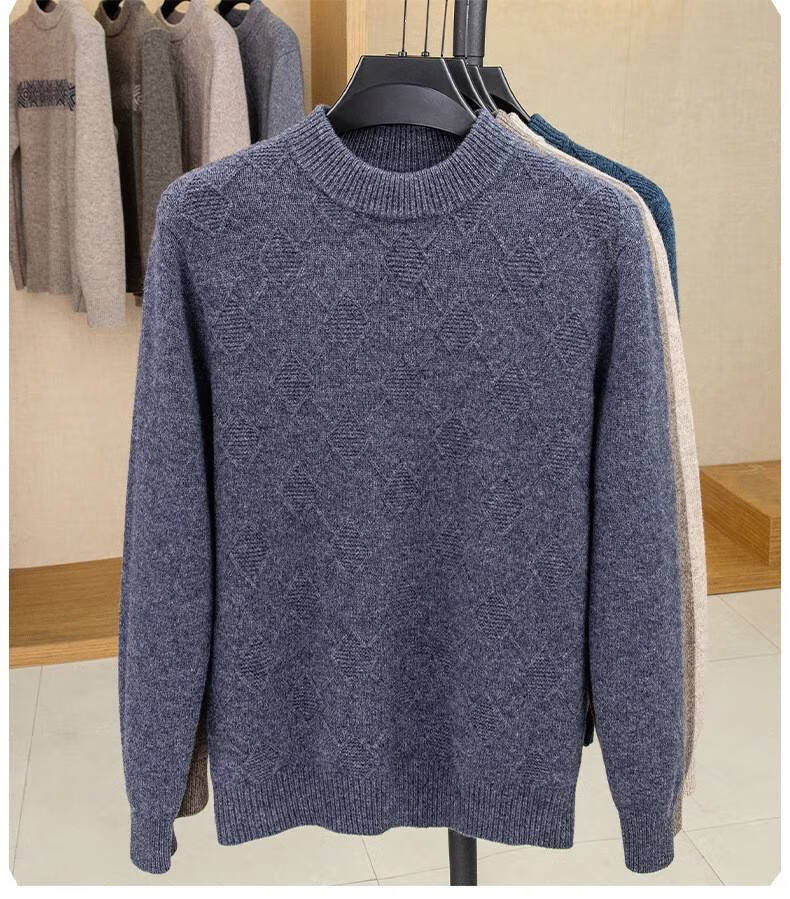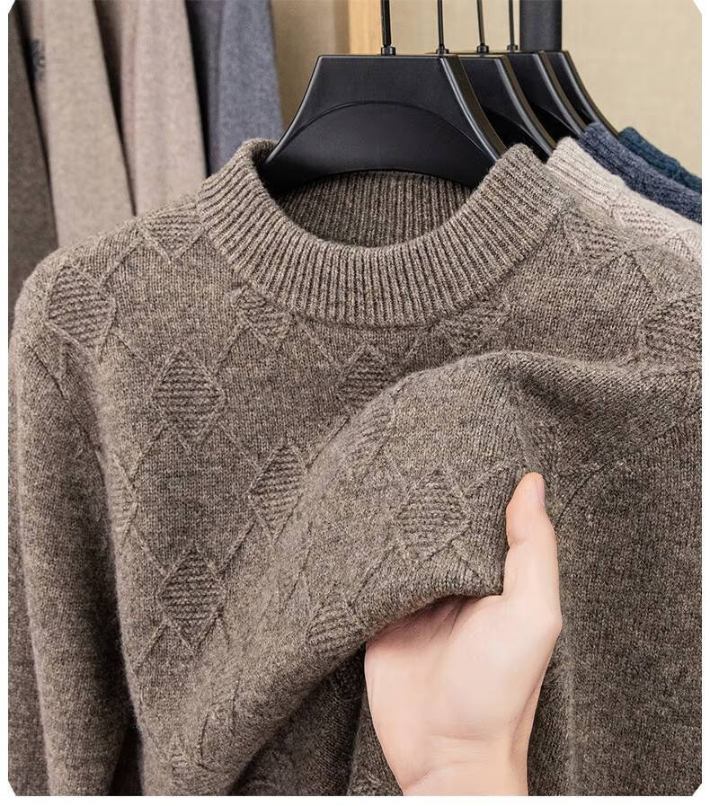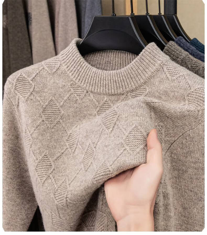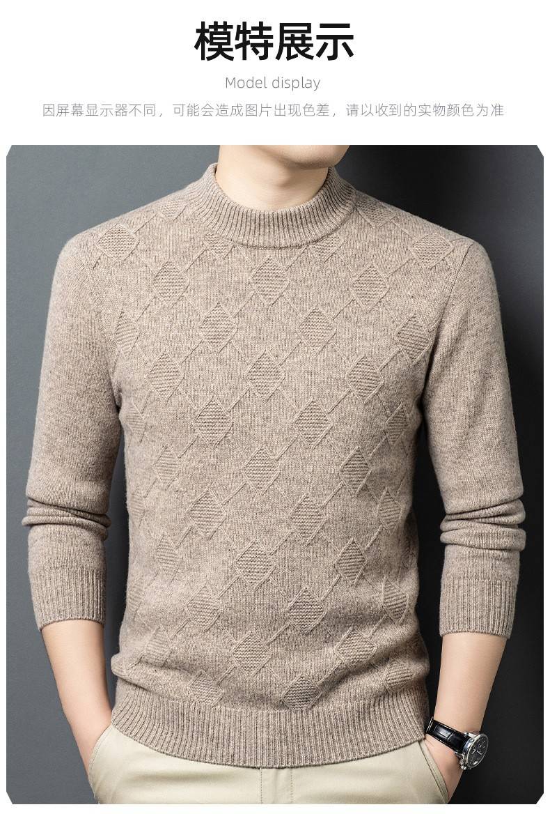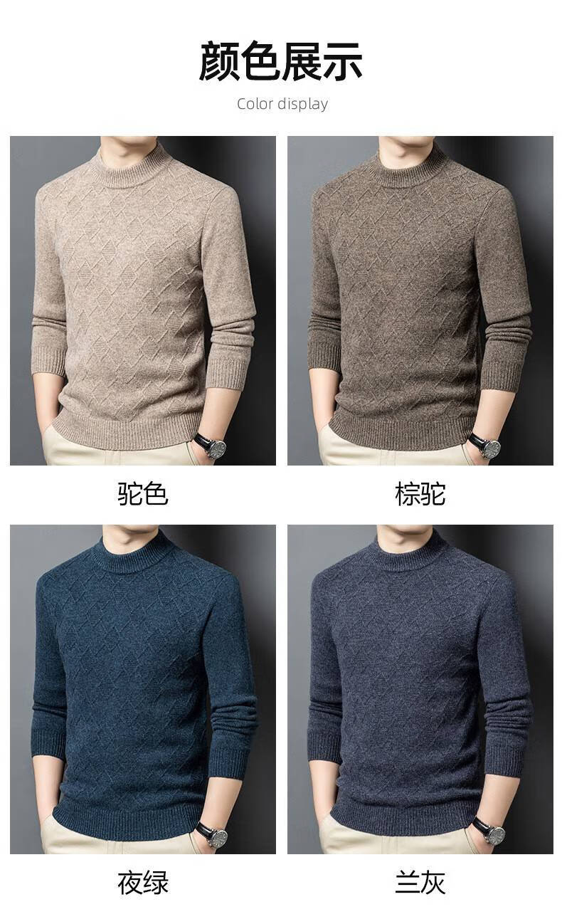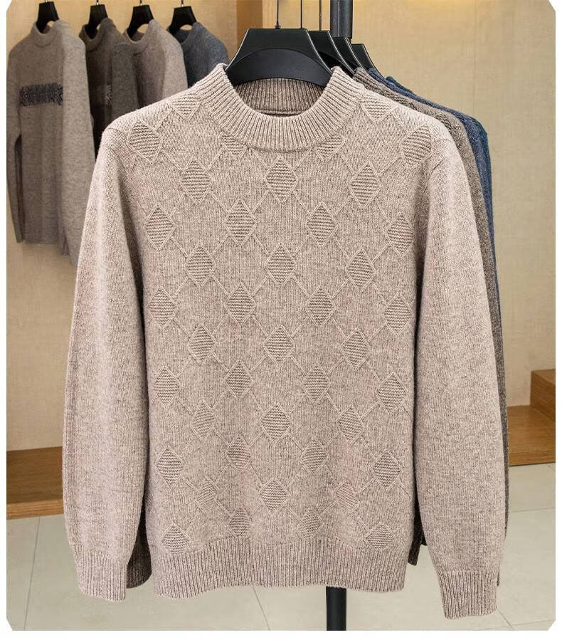 Lilan men's thickened woolen sweater half high round neck winter thick woolen sweater middle-aged dad's new style base camel thickened 4XL (190)