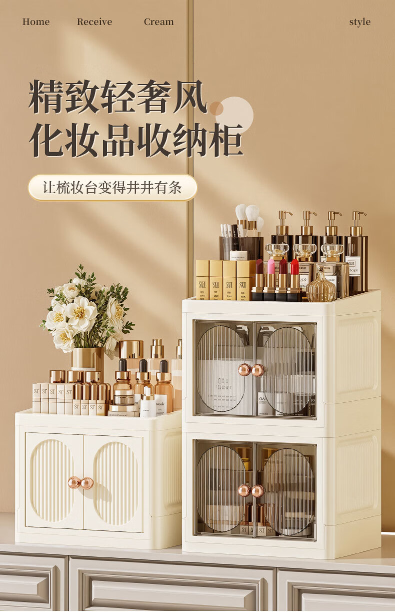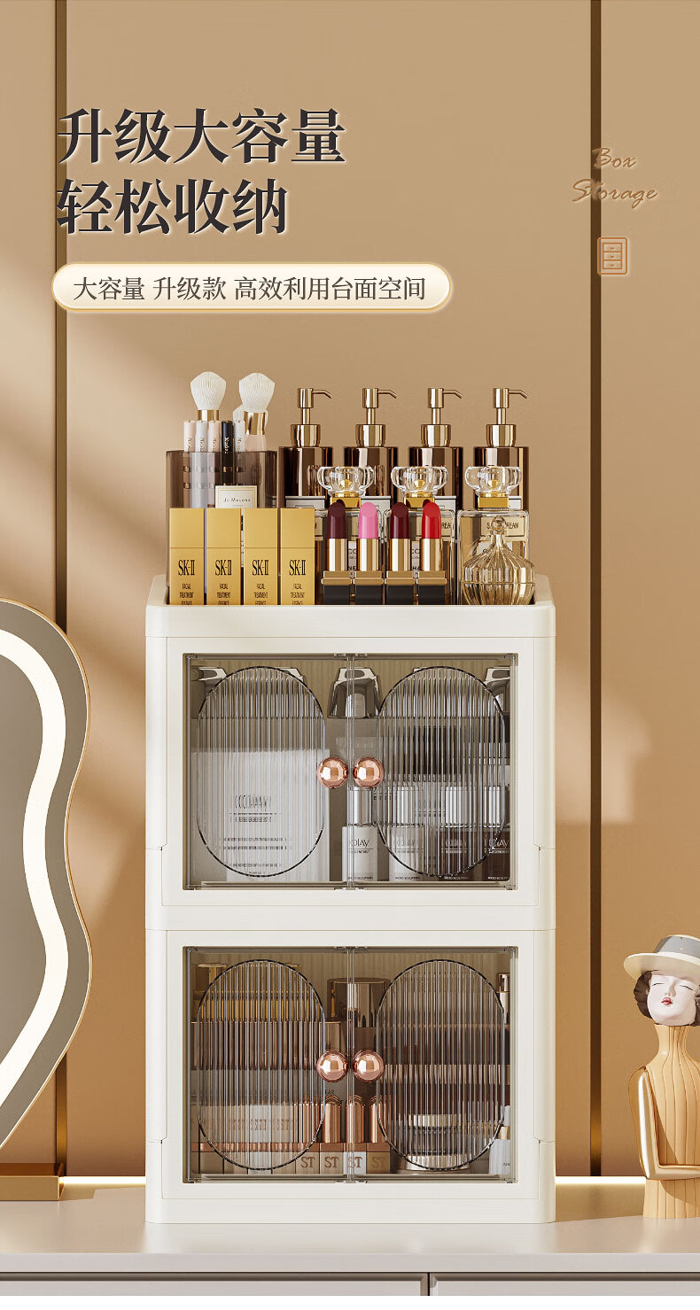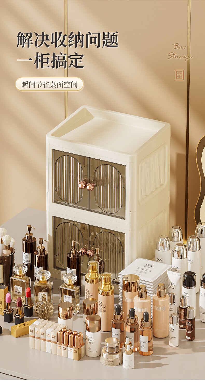 Cosmetic storage box desktop high-end skin care products lipstick perfume compartment organizer bathroom storage shelf white - 3 layers, top can be stored