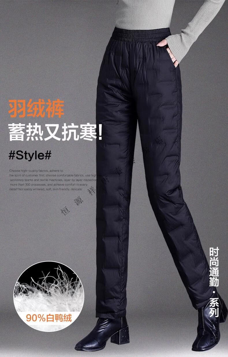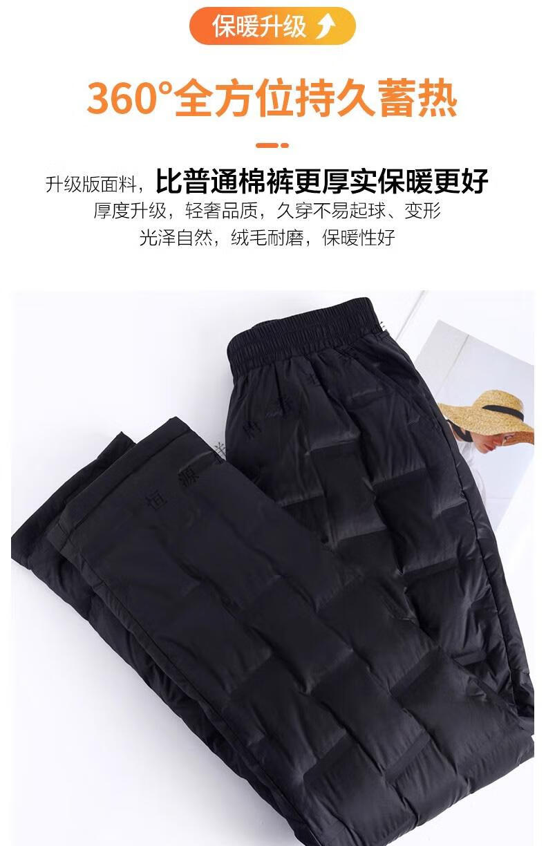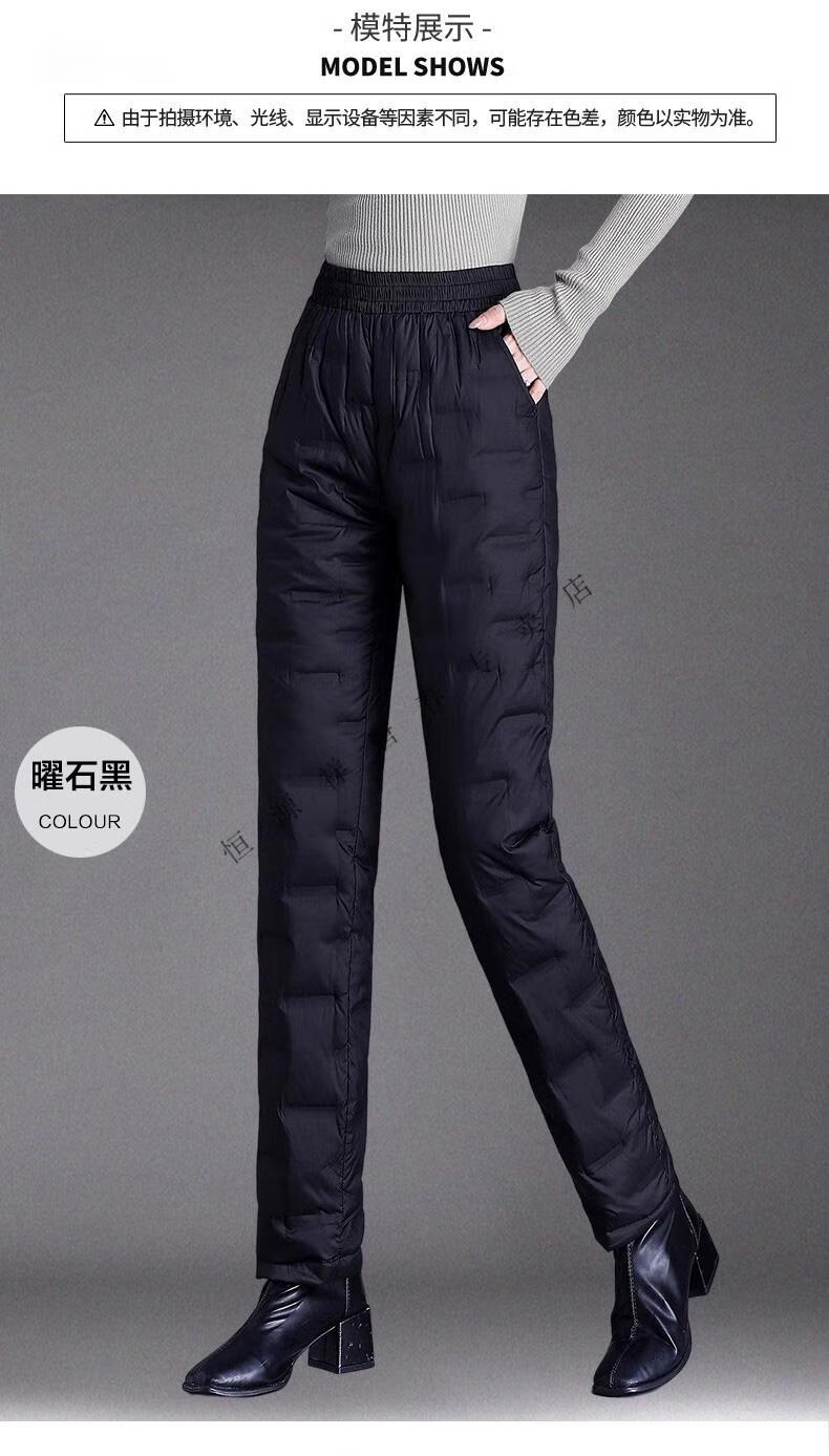 Hengyuanxiang brand middle-aged and elderly down pants women's outer wear winter high-waisted loose thickening mother's style straight cotton pants new obsidian black M