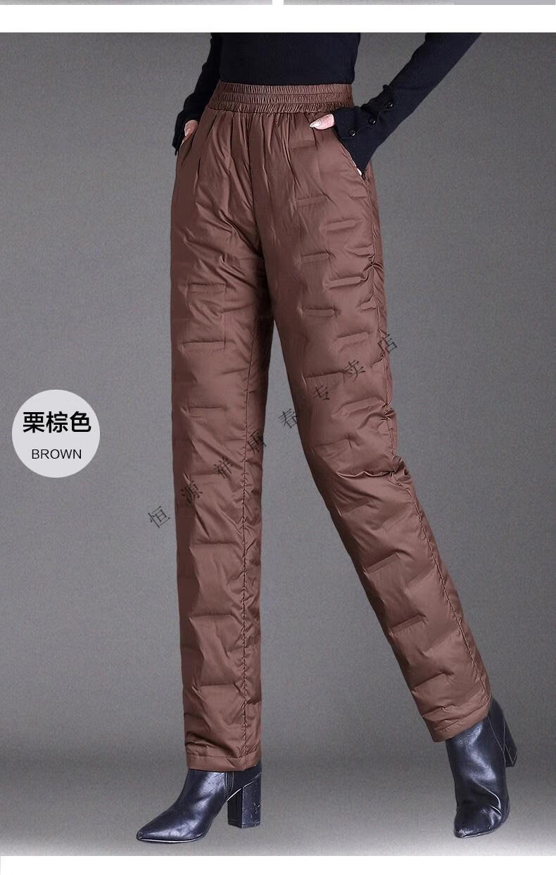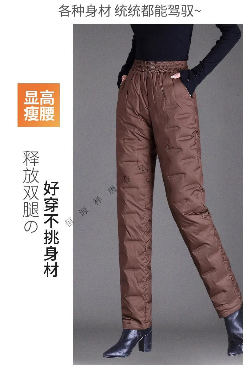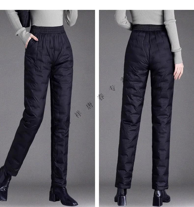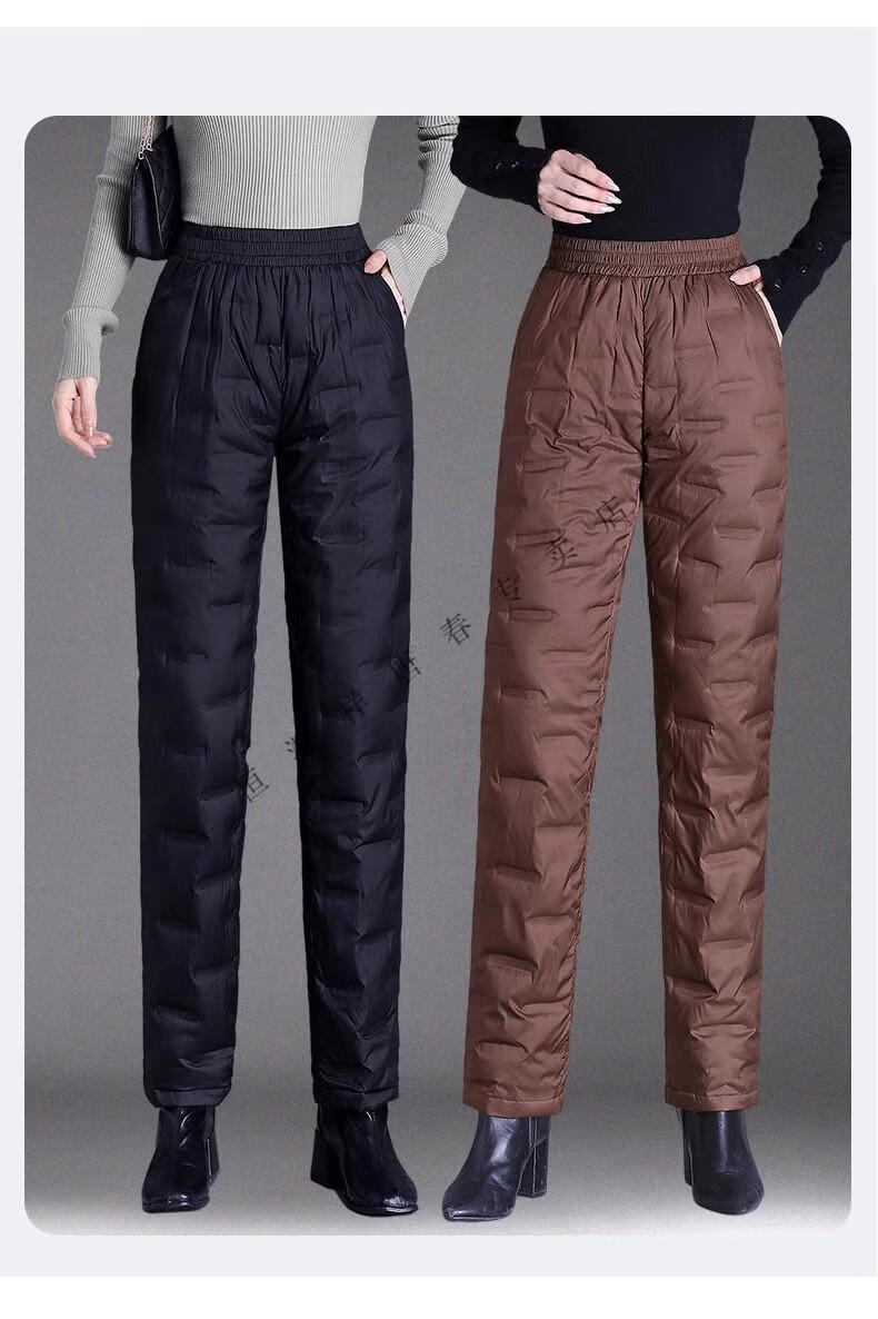 Hengyuanxiang brand middle-aged and elderly down pants women's outer wear winter high-waisted loose thickening mother's style straight cotton pants new obsidian black M