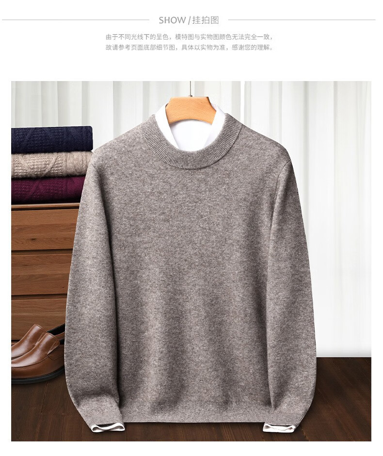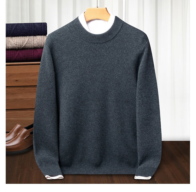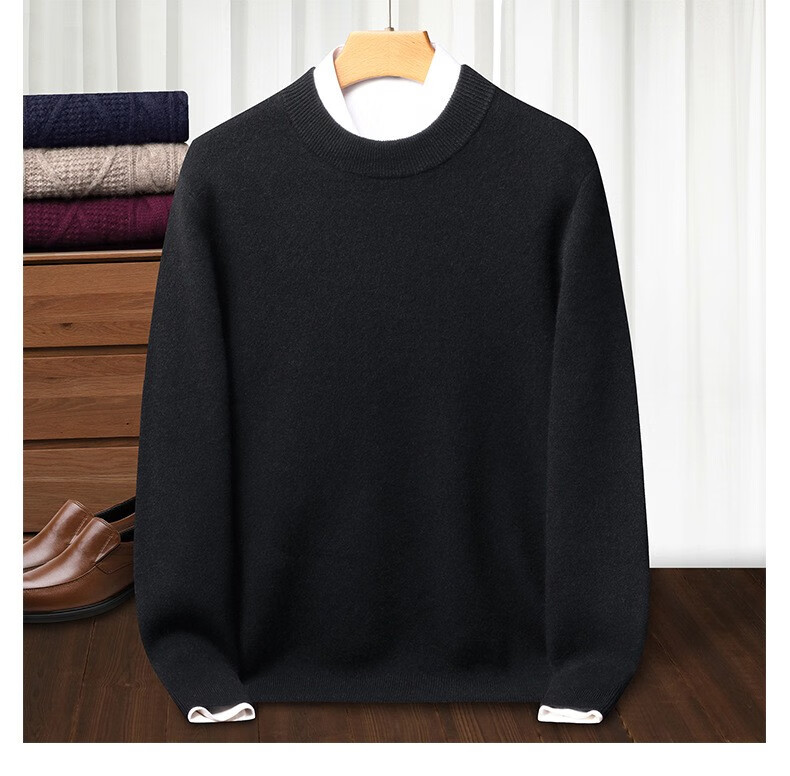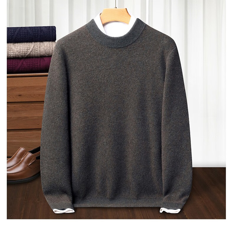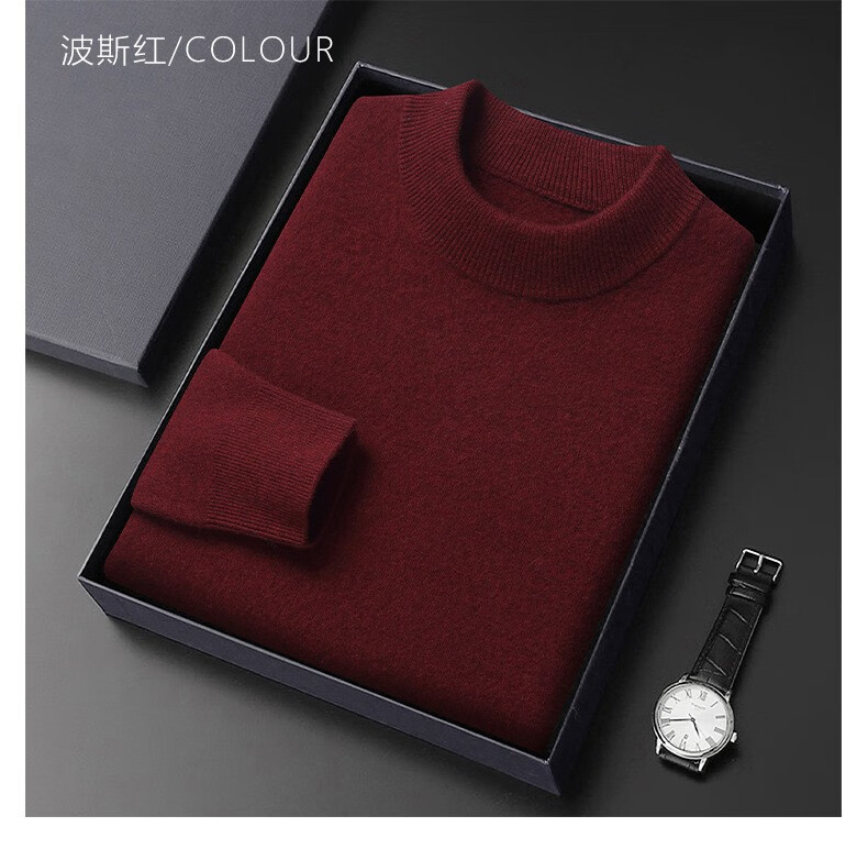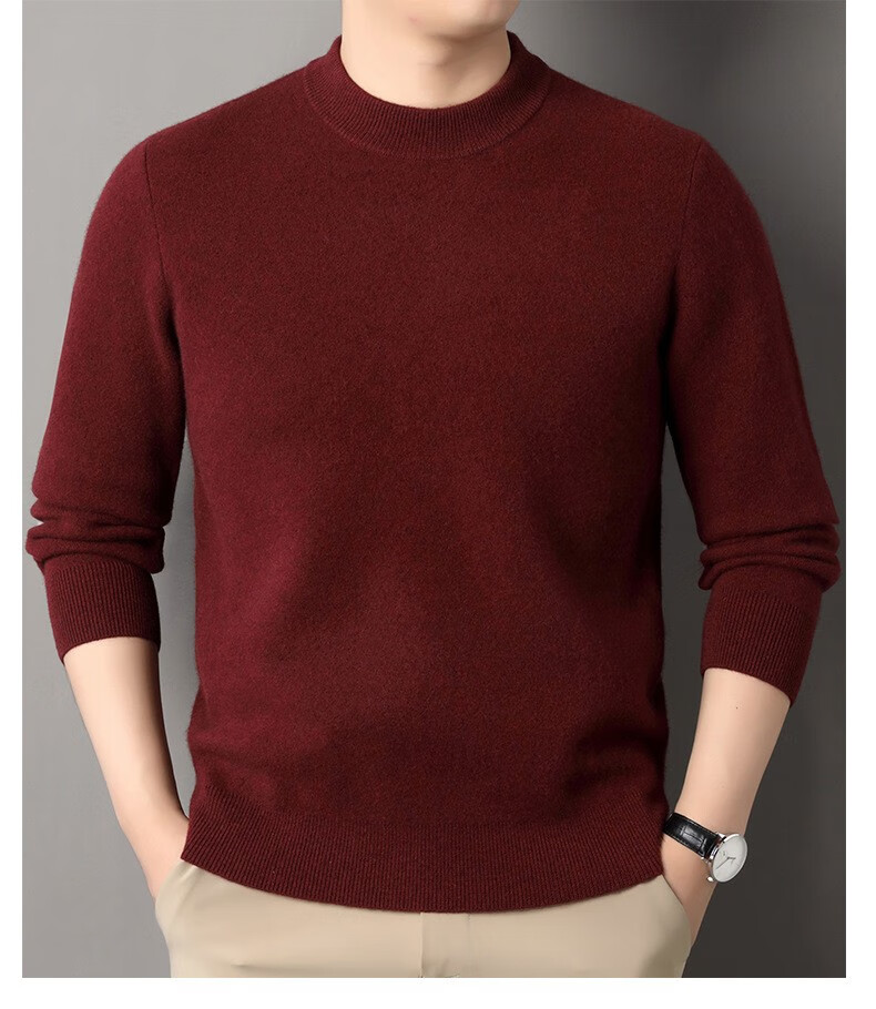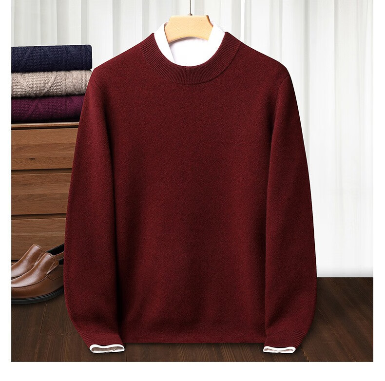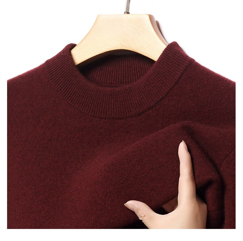 Lilan men's thickened woolen sweater round neck yak sweater sweater for middle-aged and elderly dad solid color winter knitted sweater Persian red thickened 4XL (190)