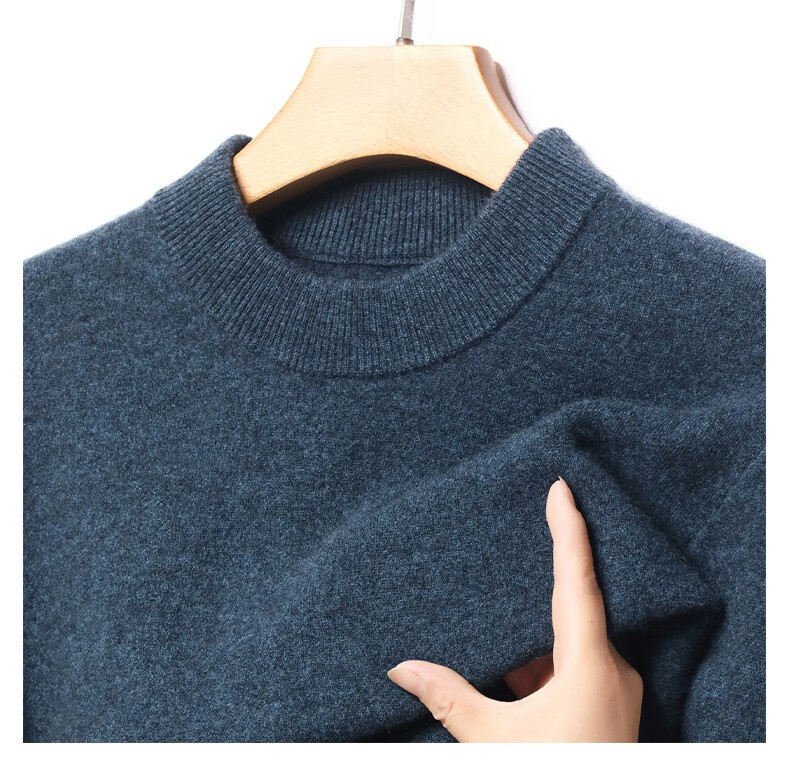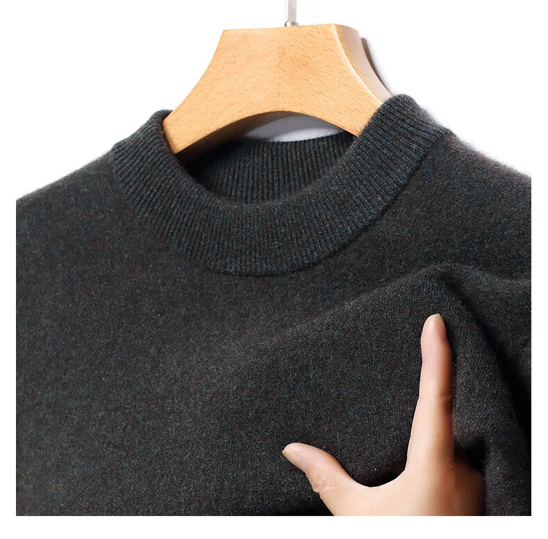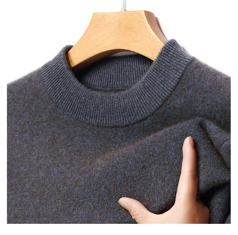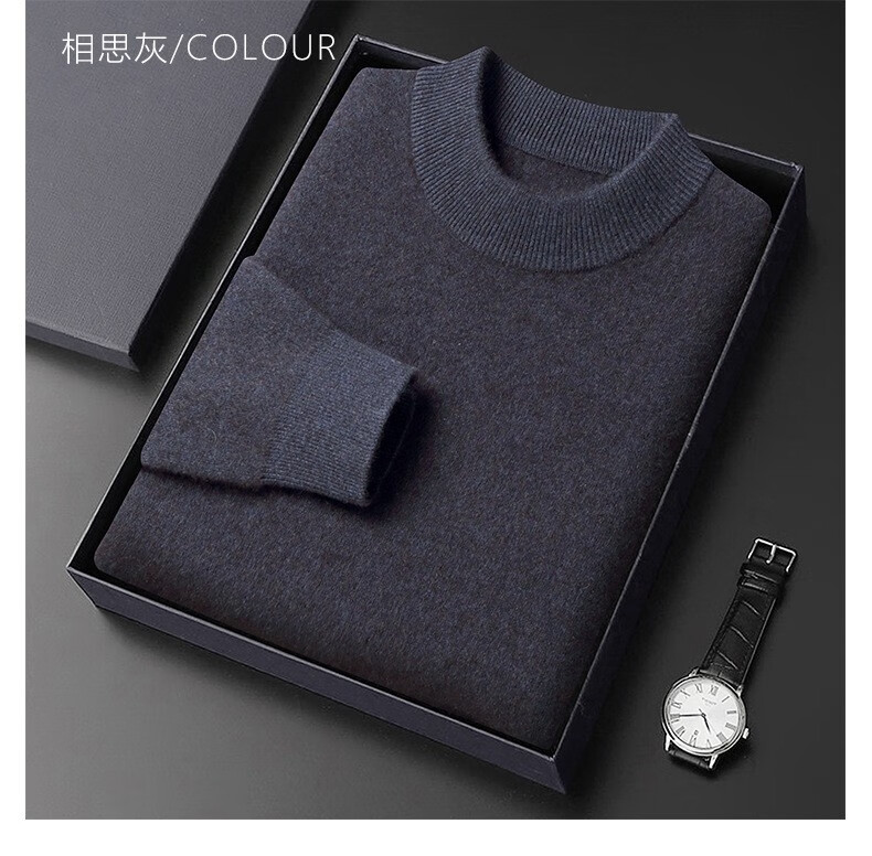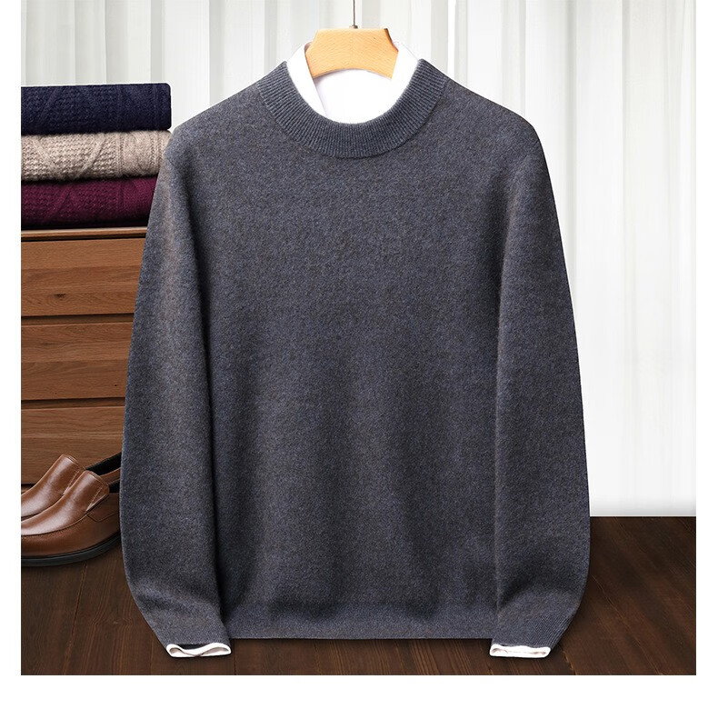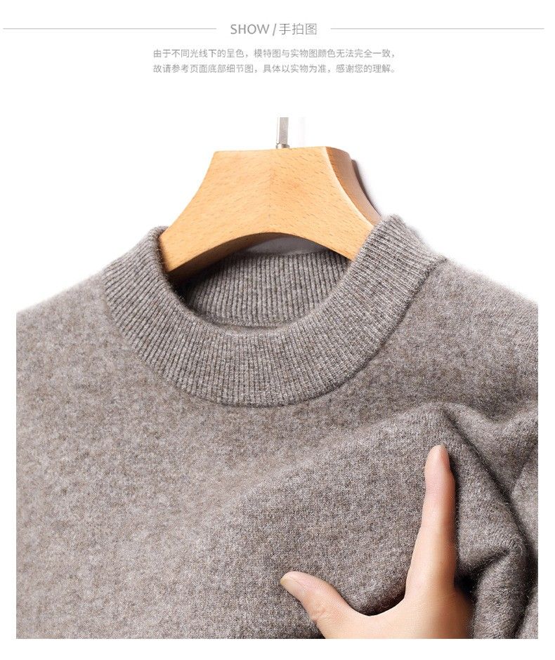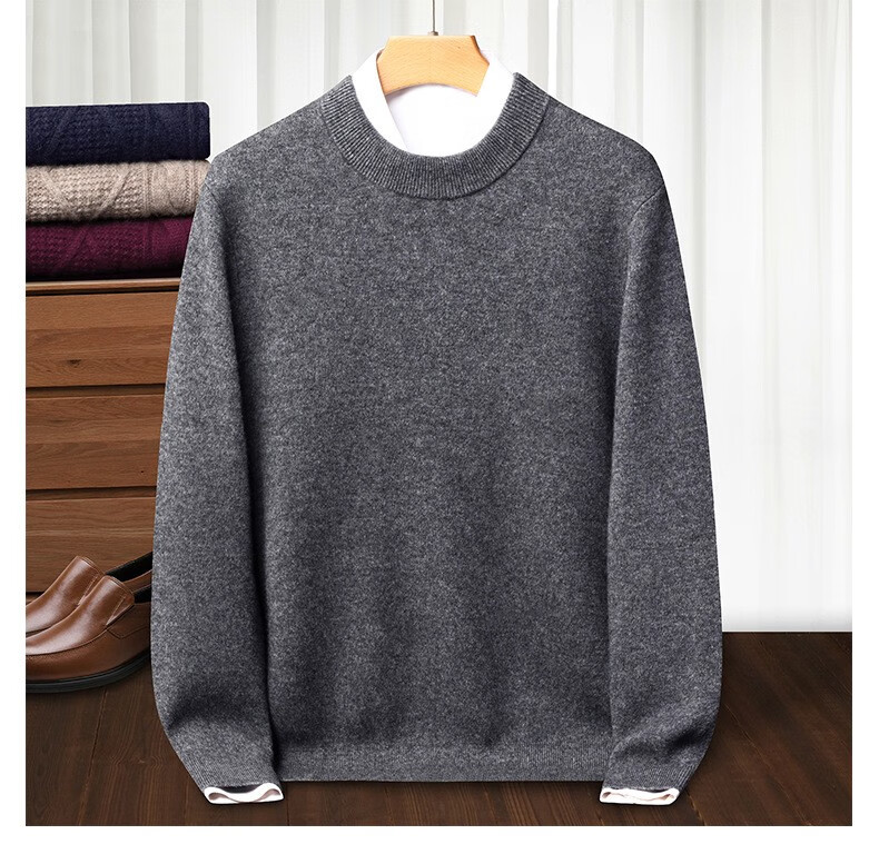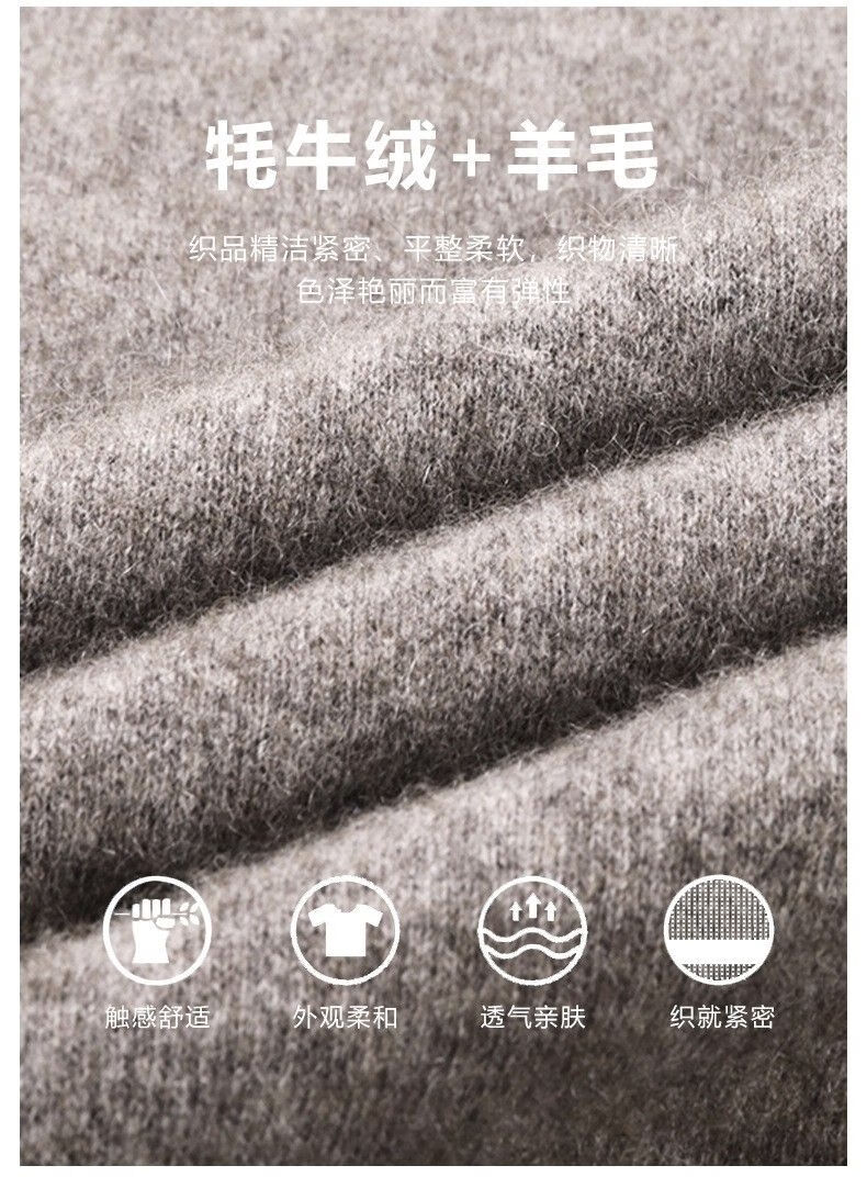 Lilan men's thickened woolen sweater round neck yak sweater sweater for middle-aged and elderly dad solid color winter knitted sweater Persian red thickened 4XL (190)