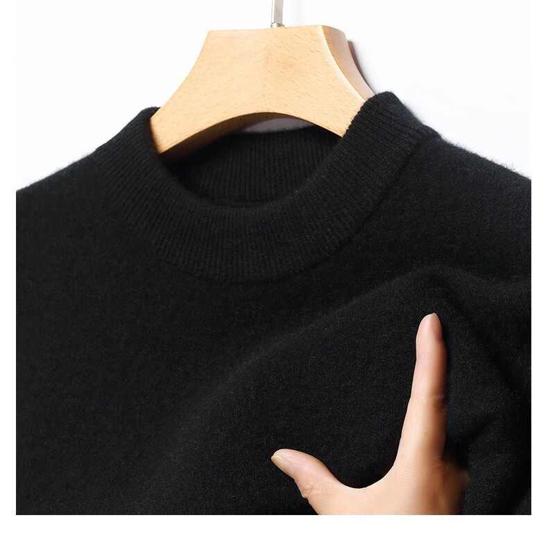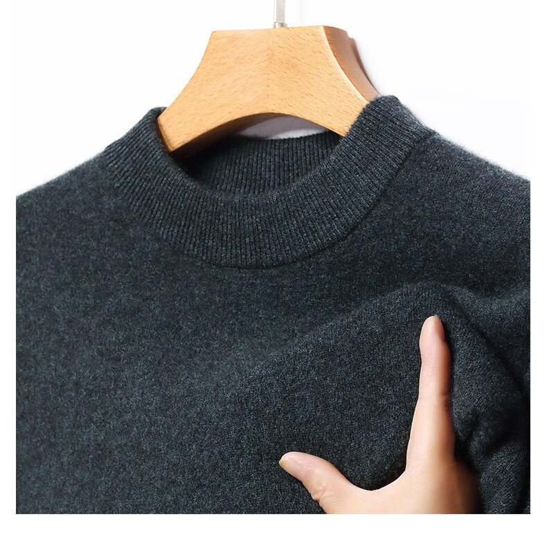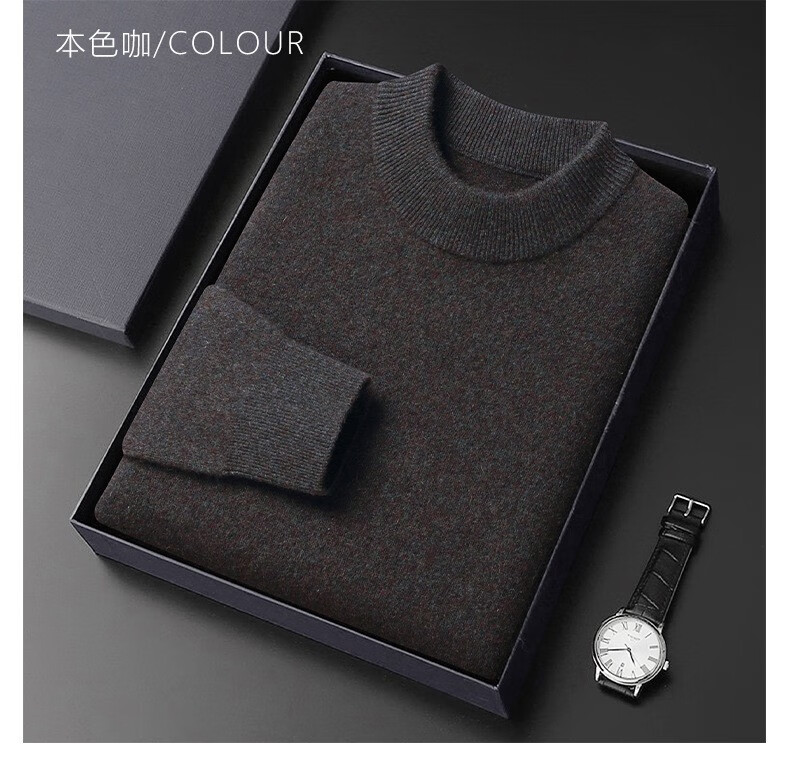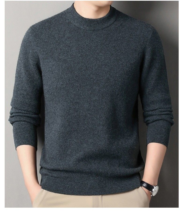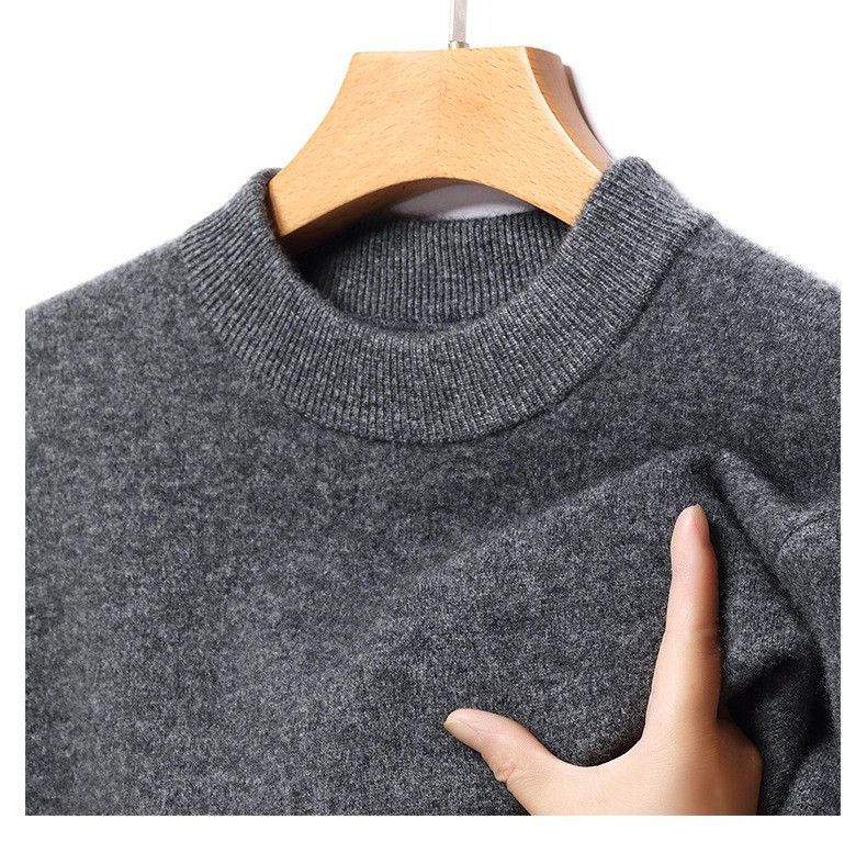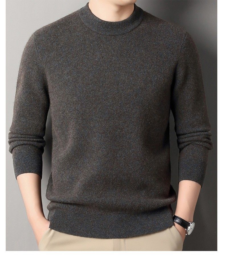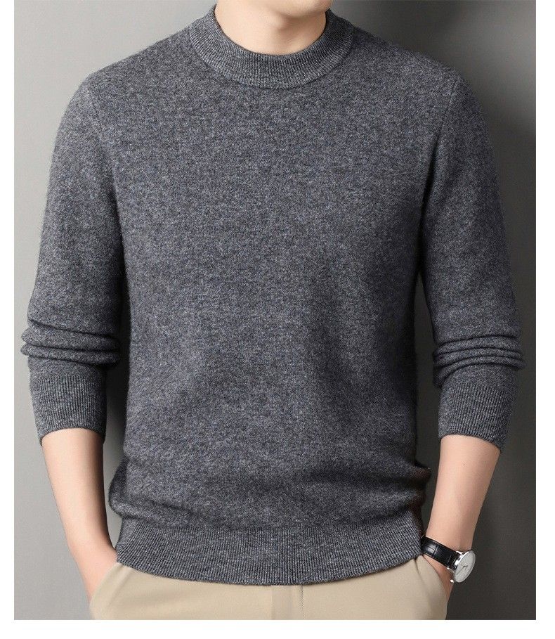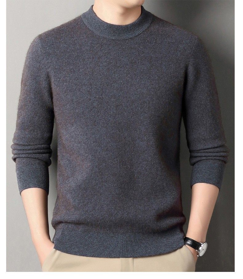 Lilan men's thickened woolen sweater round neck yak sweater sweater for middle-aged and elderly dad solid color winter knitted sweater Persian red thickened 4XL (190)