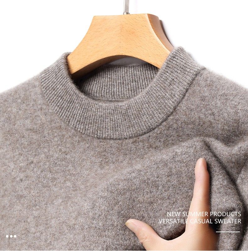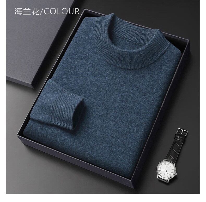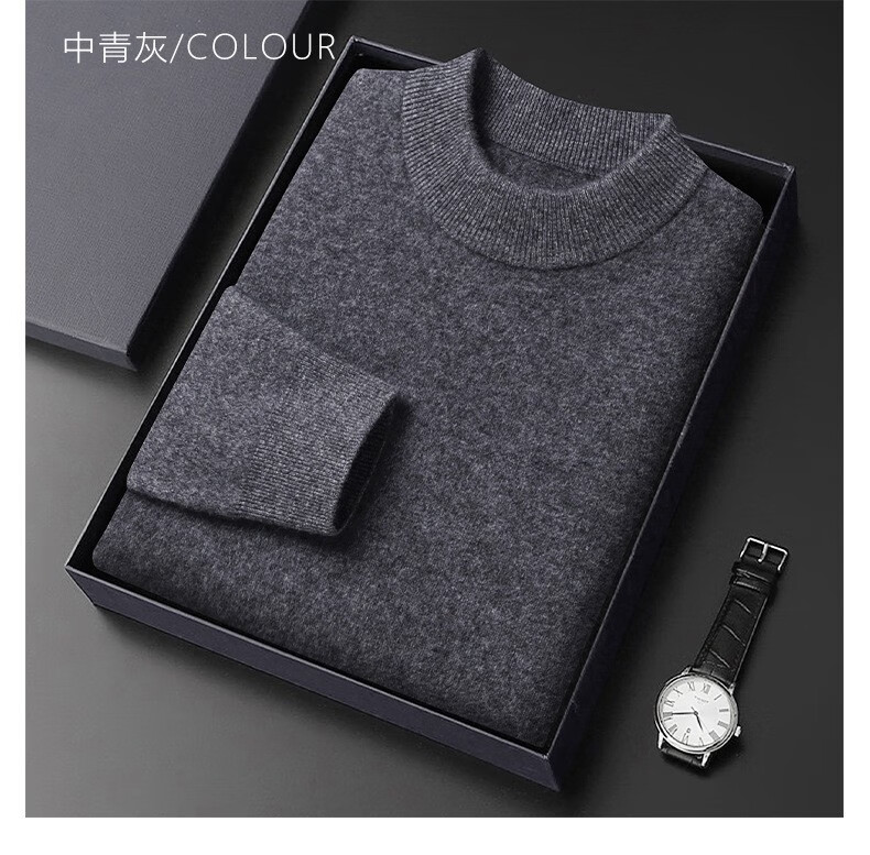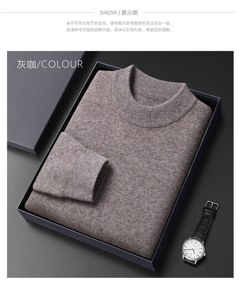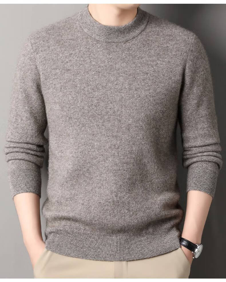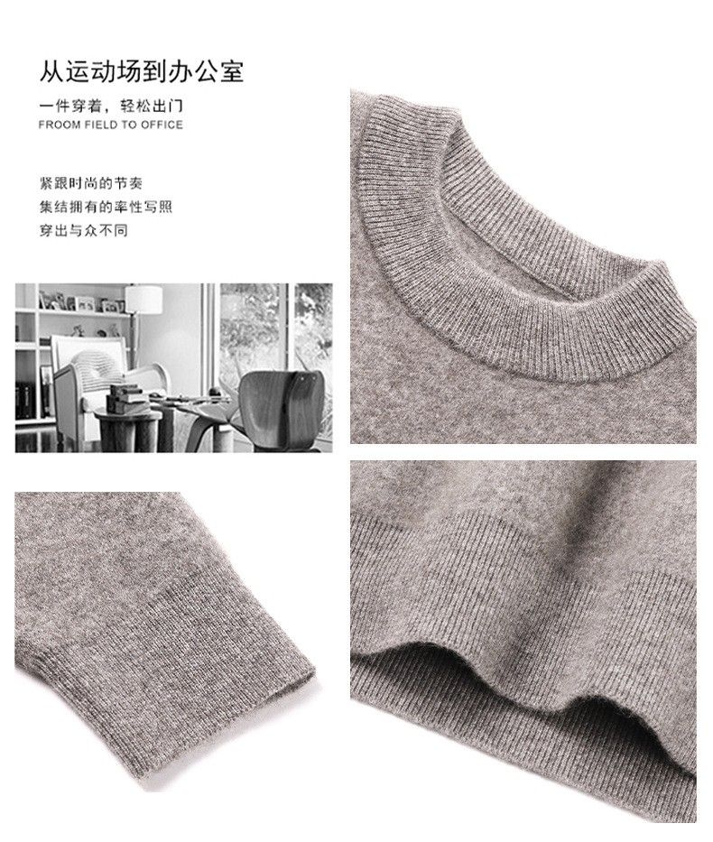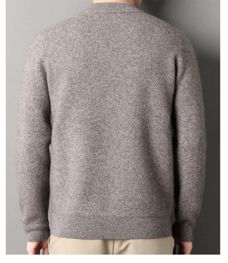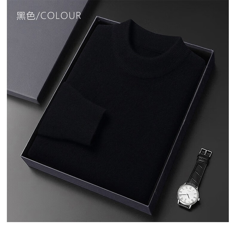 Lilan men's thickened woolen sweater round neck yak sweater sweater for middle-aged and elderly dad solid color winter knitted sweater Persian red thickened 4XL (190)