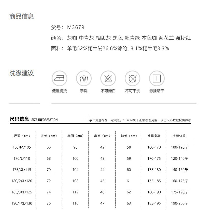 China (cm) 165 / 88-90 170 / 96-98 175 / 108-110 180 / 118-122 185 / 126-130
