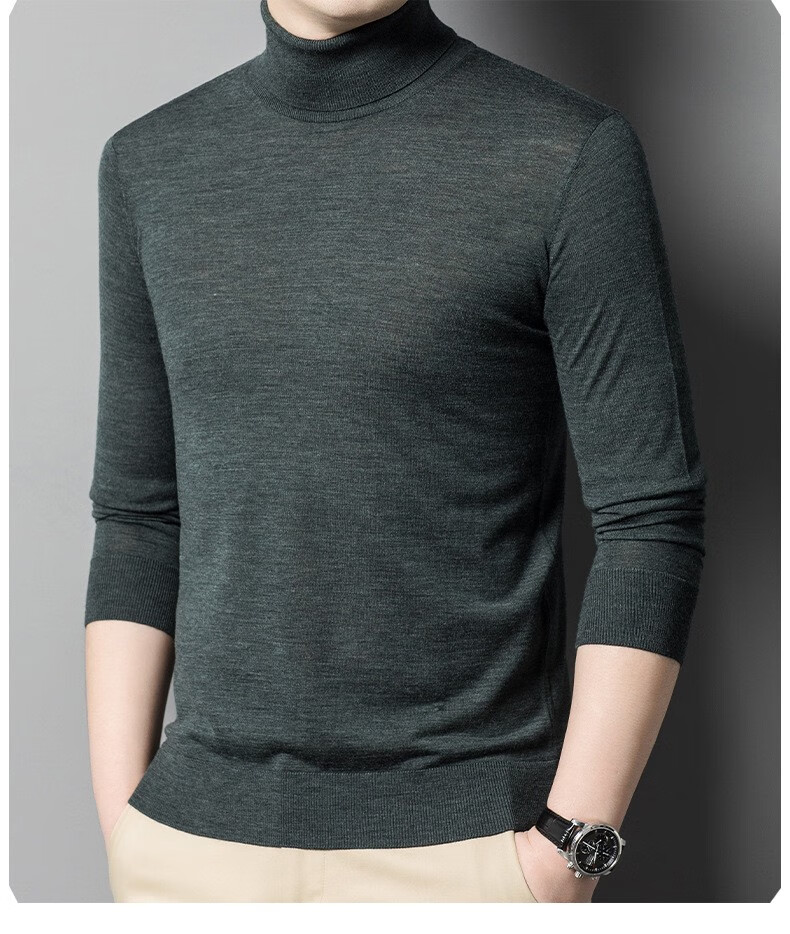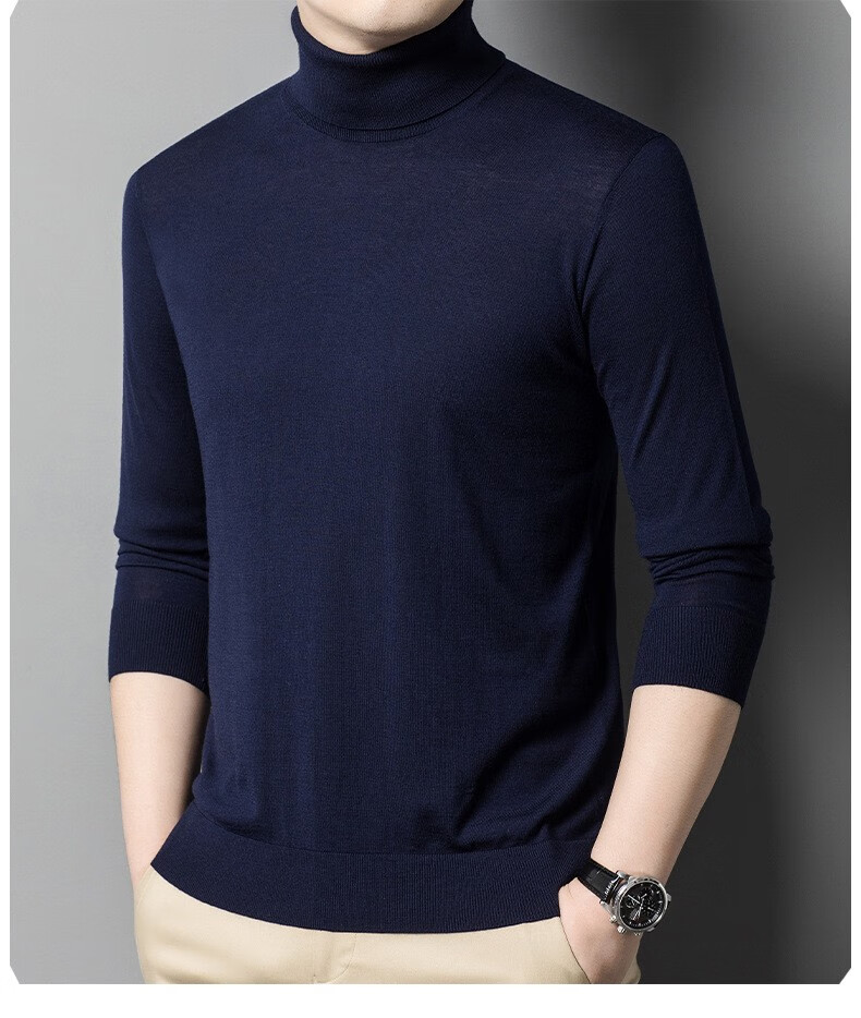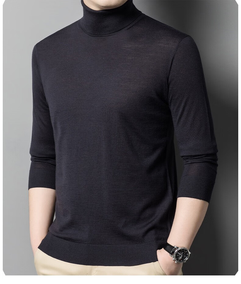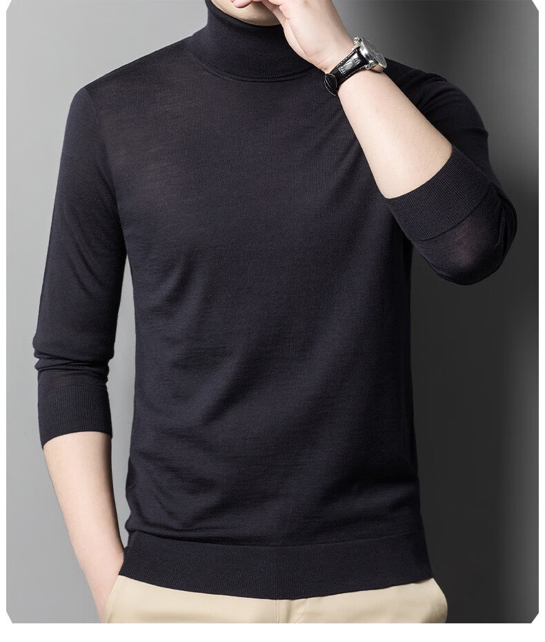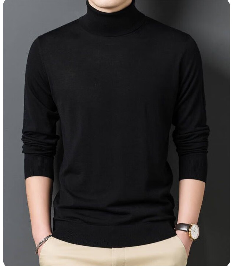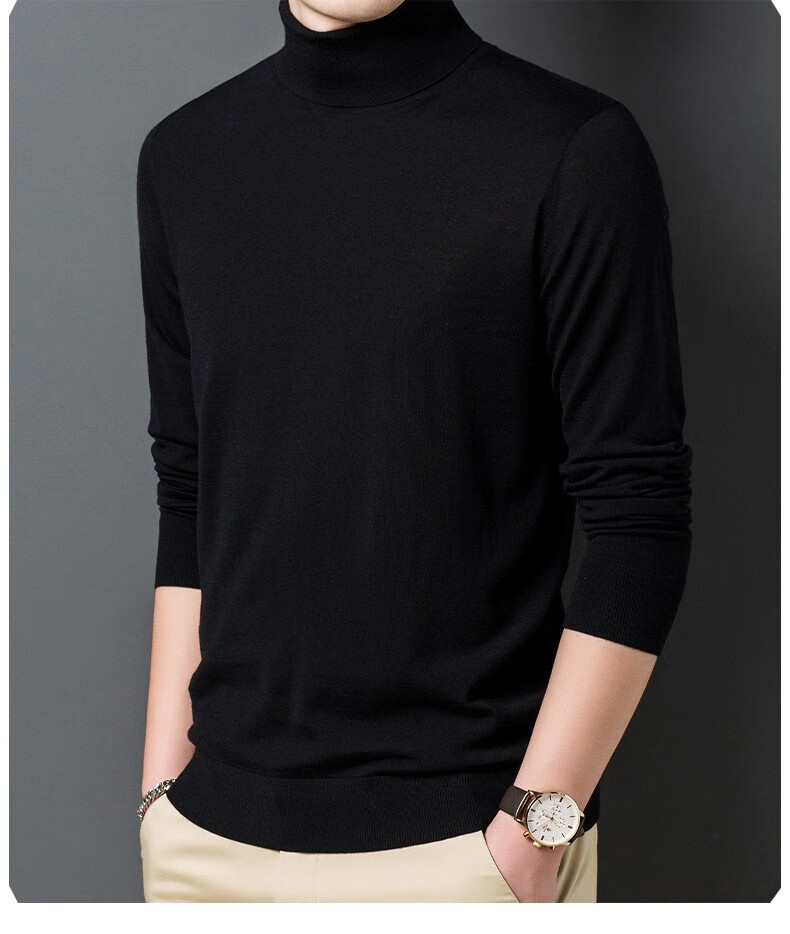 Lilang Light Luxury Turtleneck Worsted Wool Sweater Men's Spring and Autumn Thin Long Sleeve Bottoming Shirt 100 Pure Wool 60 Count Super Fine Black Thin Section 4XL (190)