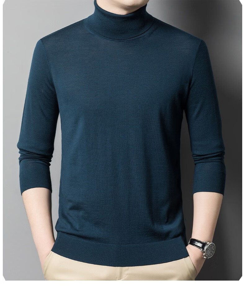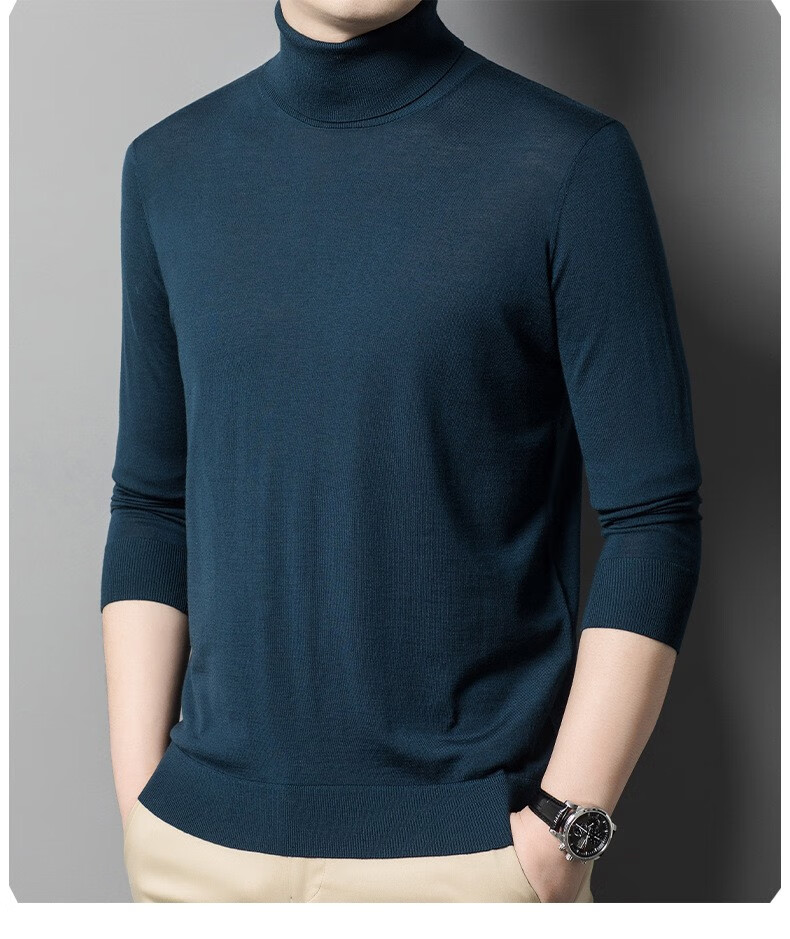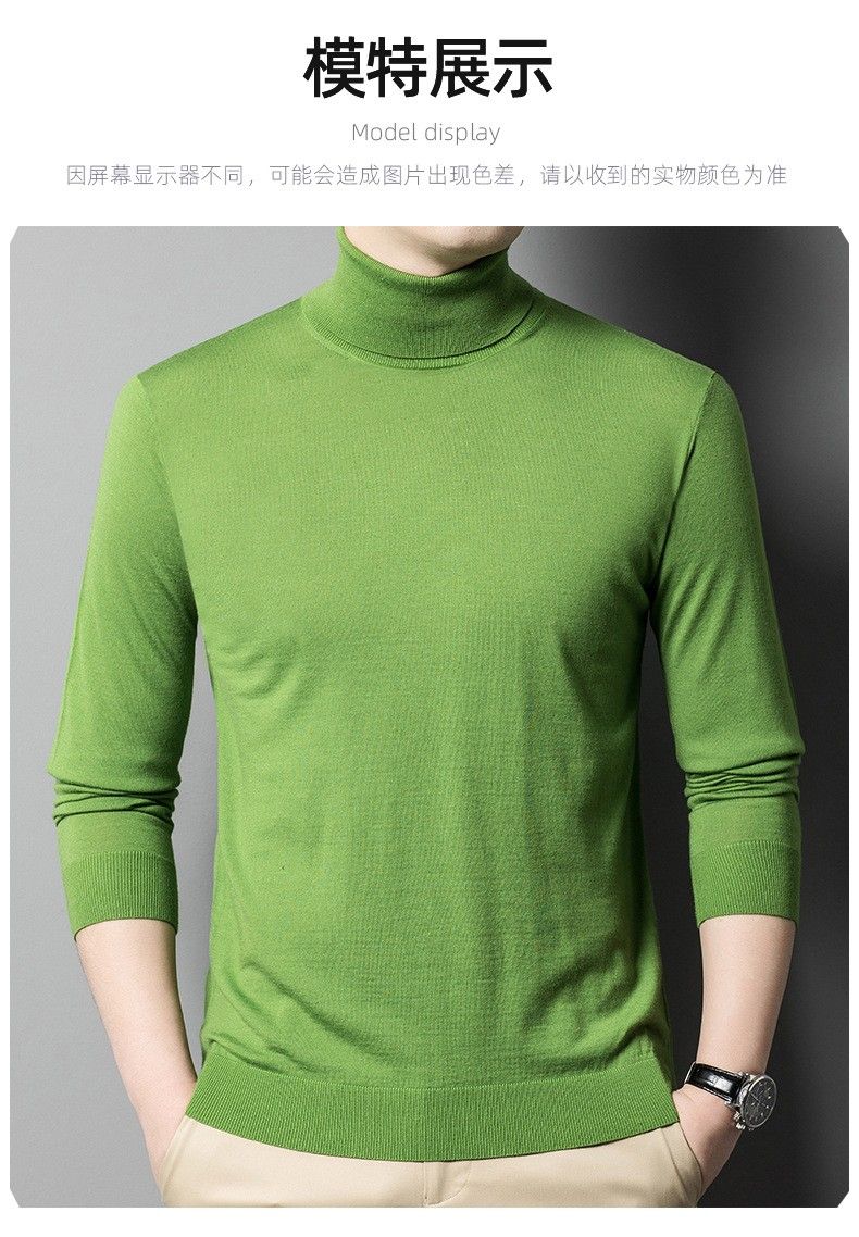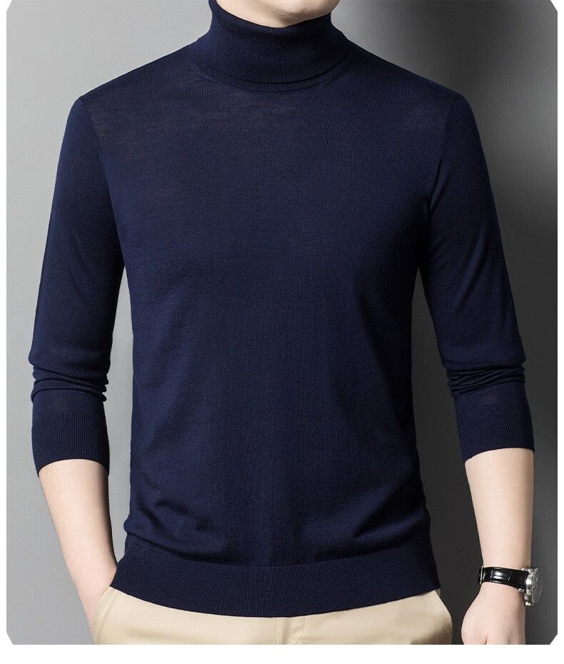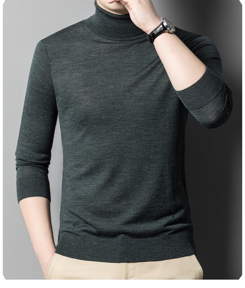 Lilang Light Luxury Turtleneck Worsted Wool Sweater Men's Spring and Autumn Thin Long Sleeve Bottoming Shirt 100 Pure Wool 60 Count Super Fine Black Thin Section 4XL (190)