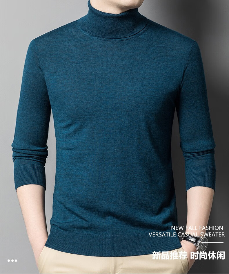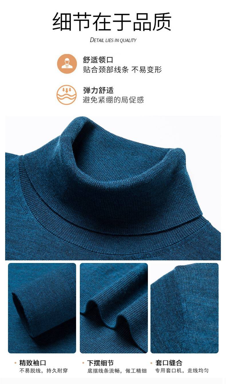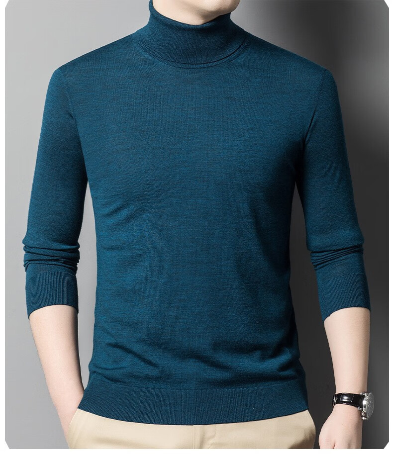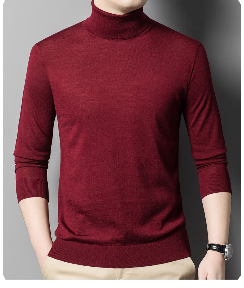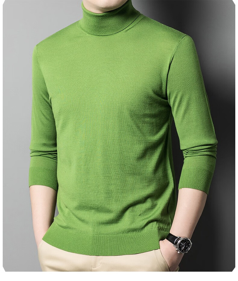 Lilang Light Luxury Turtleneck Worsted Wool Sweater Men's Spring and Autumn Thin Long Sleeve Bottoming Shirt 100 Pure Wool 60 Count Super Fine Black Thin Section 4XL (190)