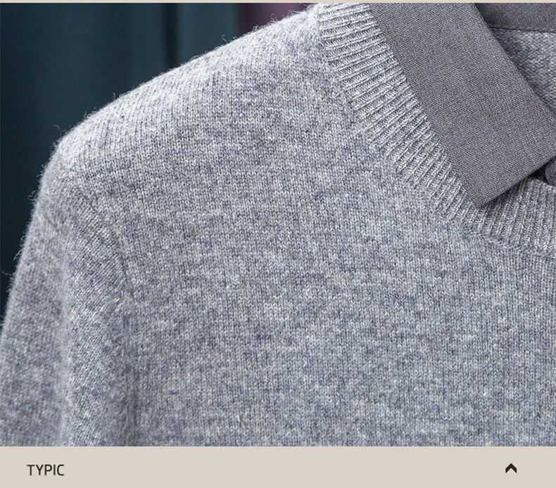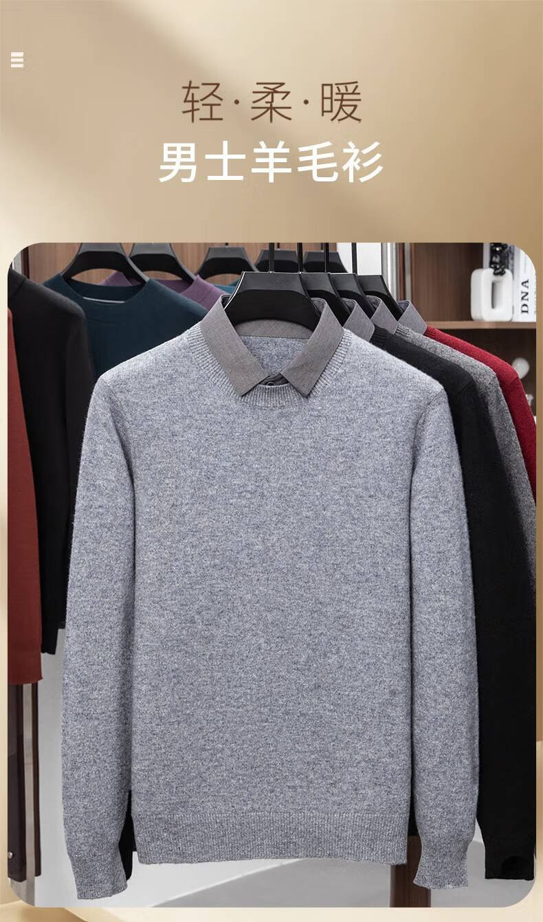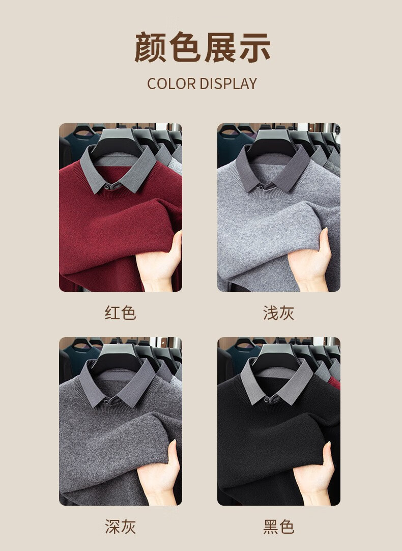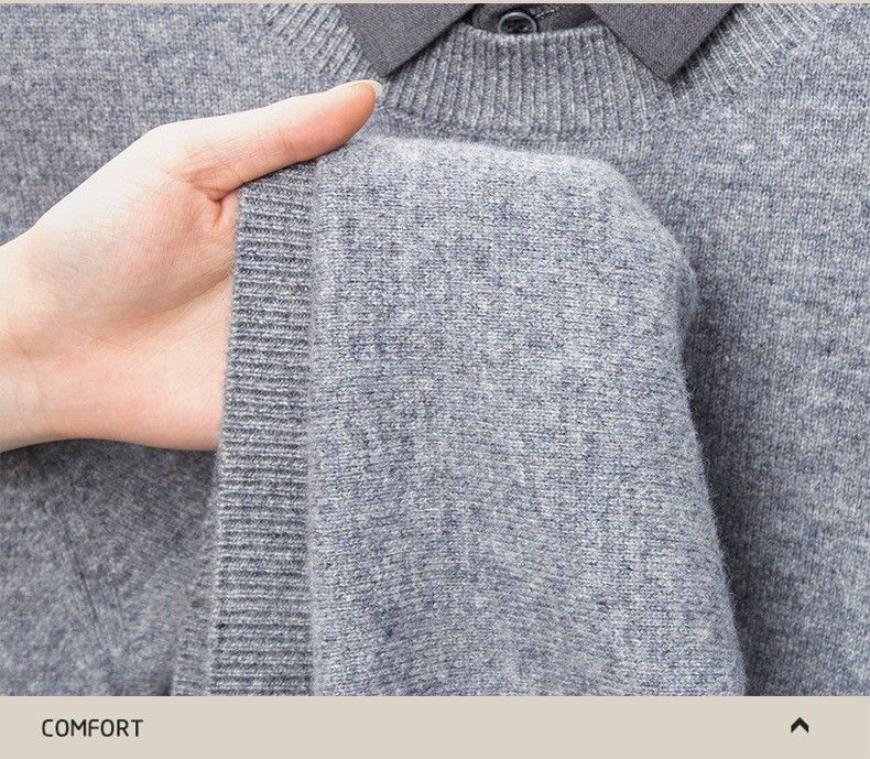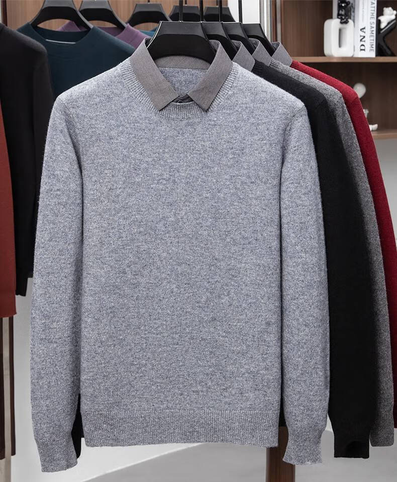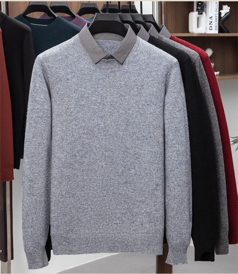 Lilan men's shirt collar fake two-piece woolen sweater round neck thickened casual top new middle-aged business sweater fake black thickened M (165)