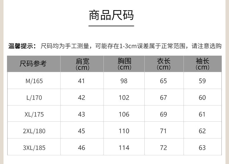 China (cm) 165 / 88-90 170 / 96-98 175 / 108-110 180 / 118-122 185 / 126-130