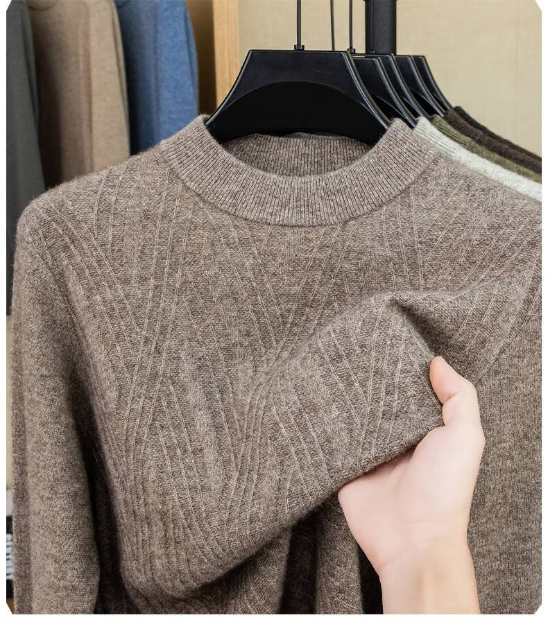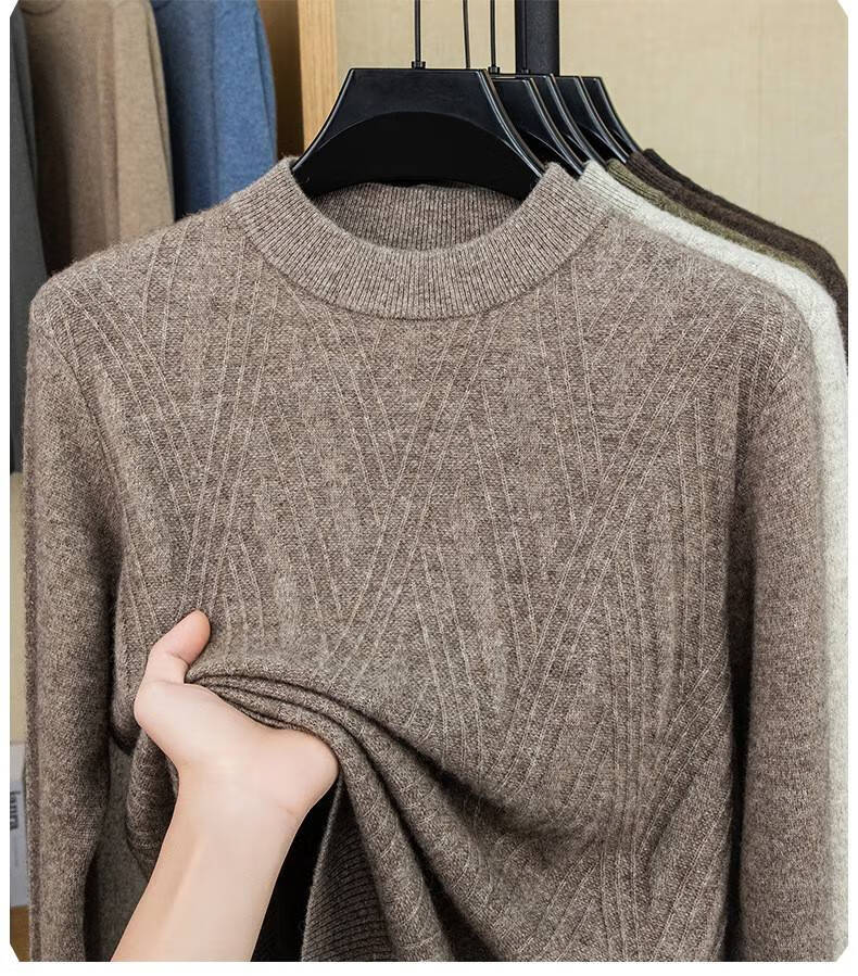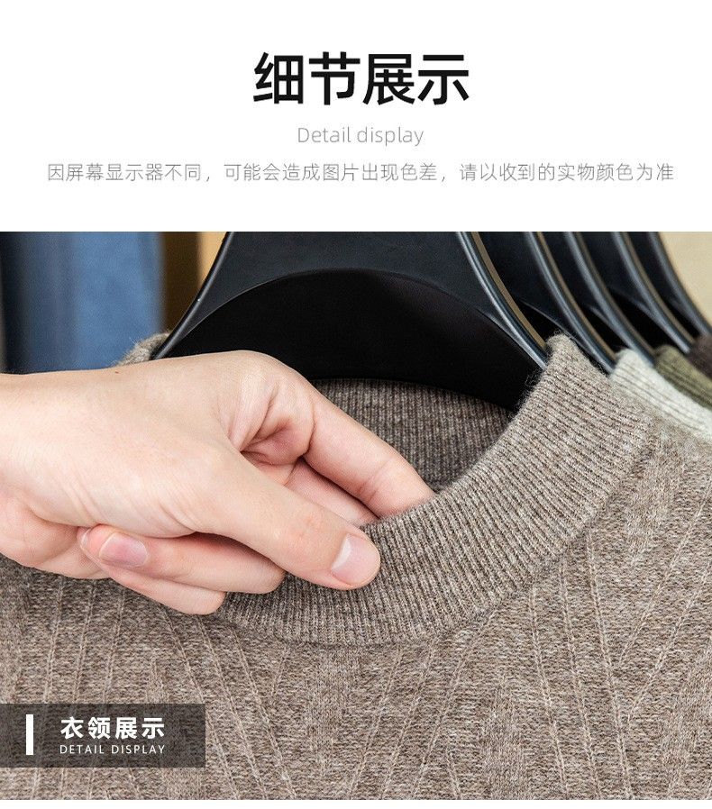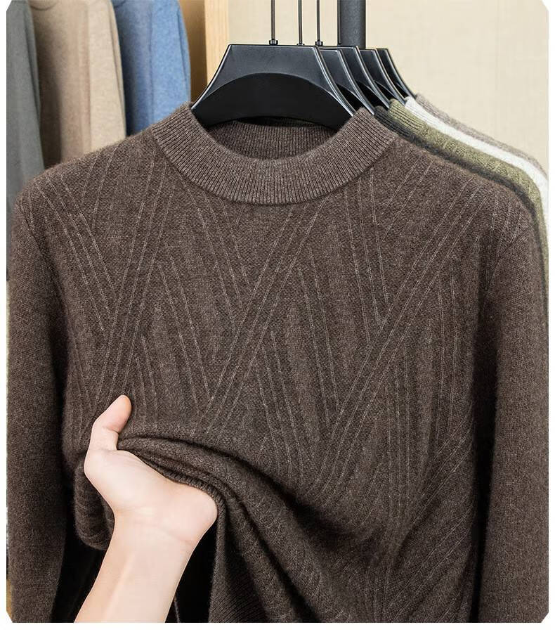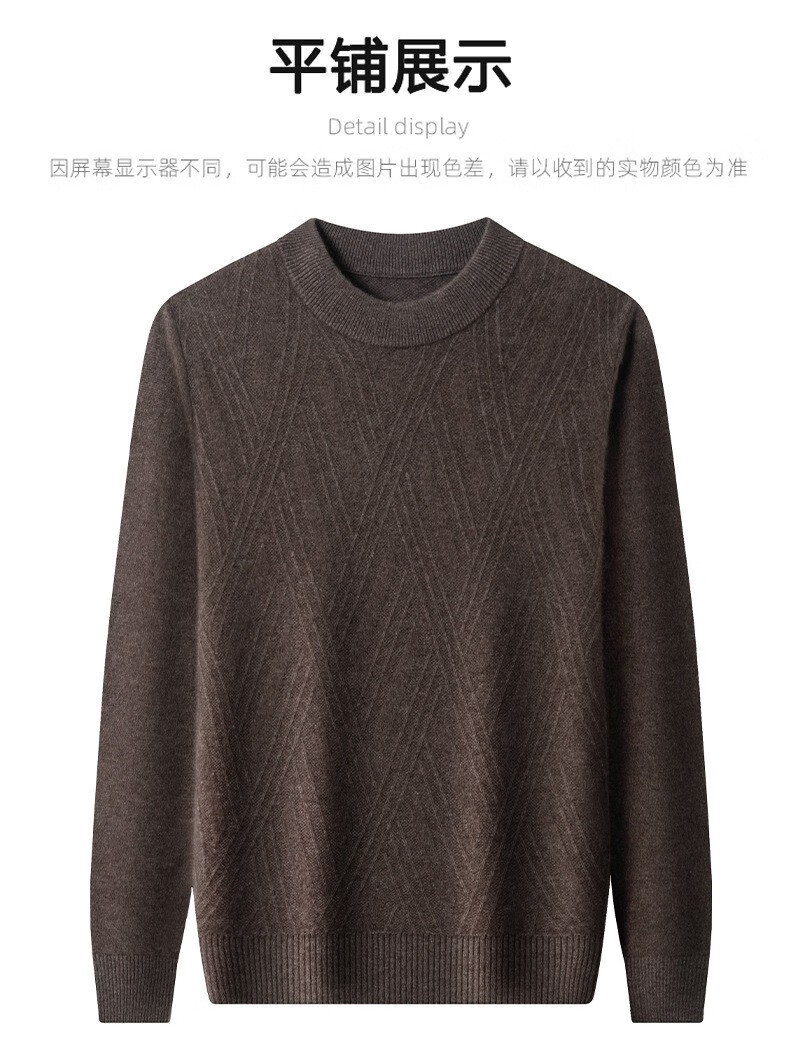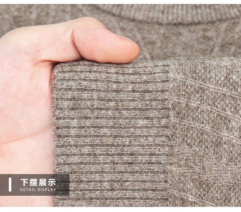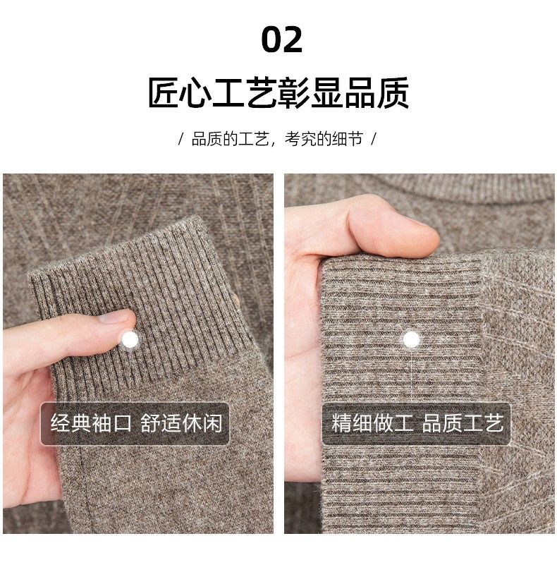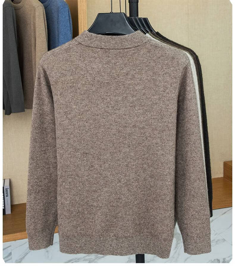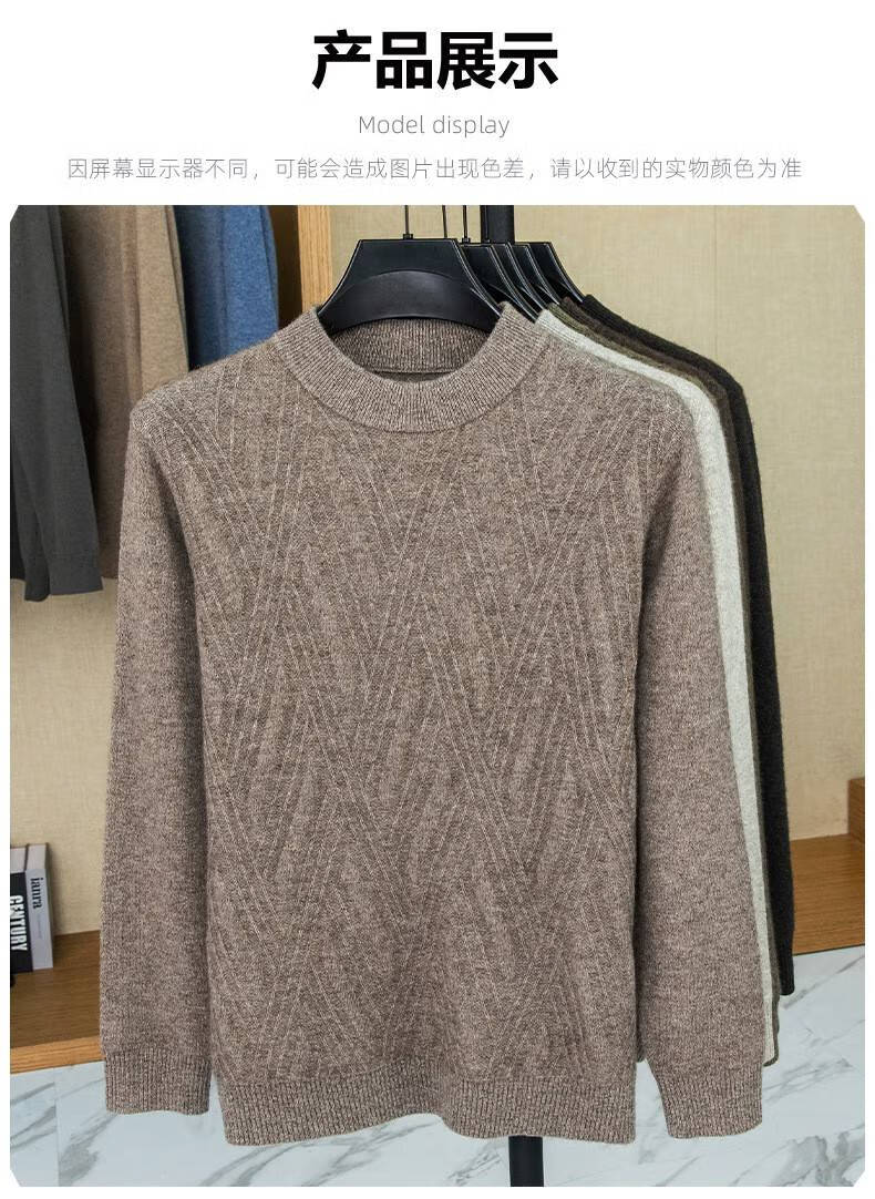 Lilan's new yak wool sweater men's round neck thickened sweater middle-aged and elderly dad wear winter 400g sweater tobacco leaf brown thickened 4XL (190)