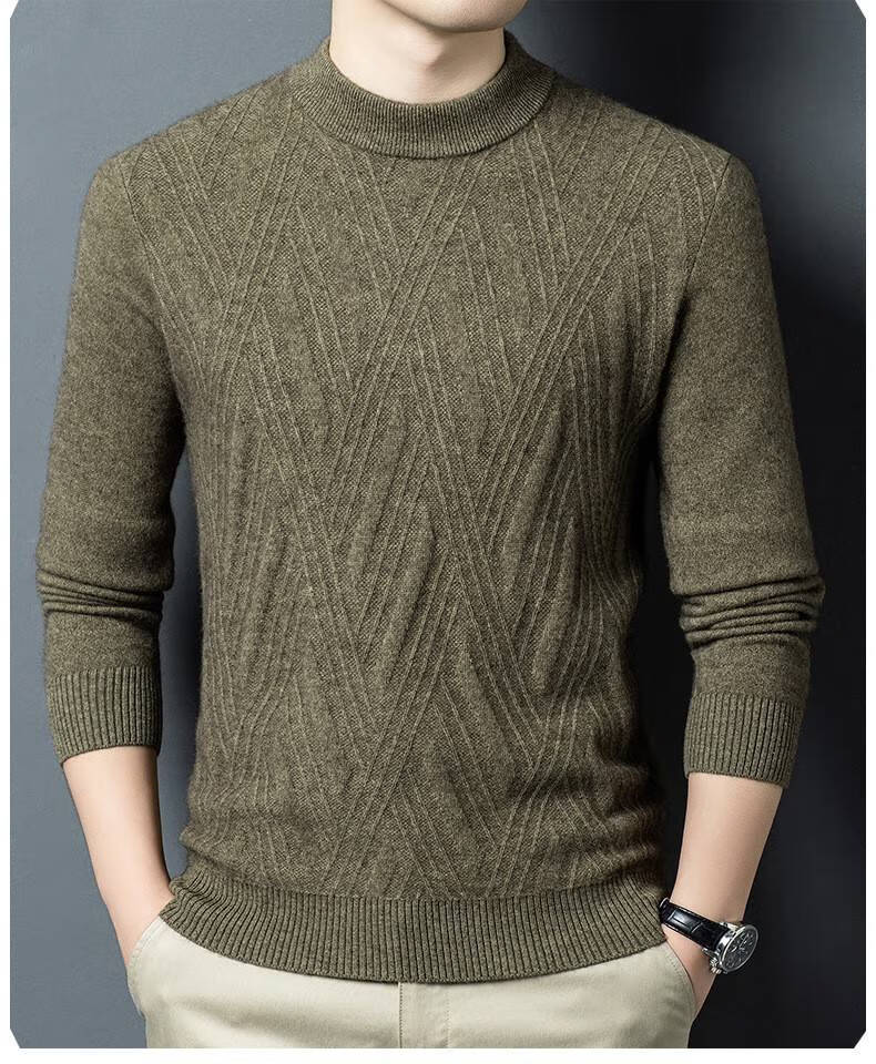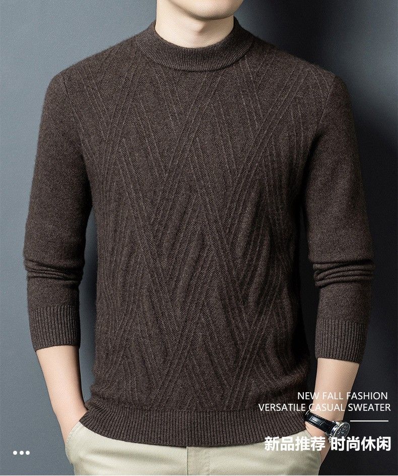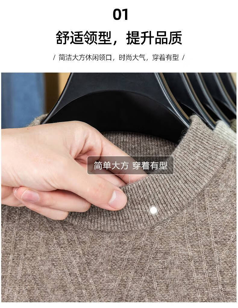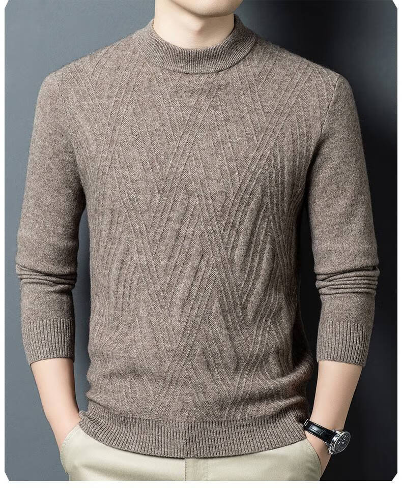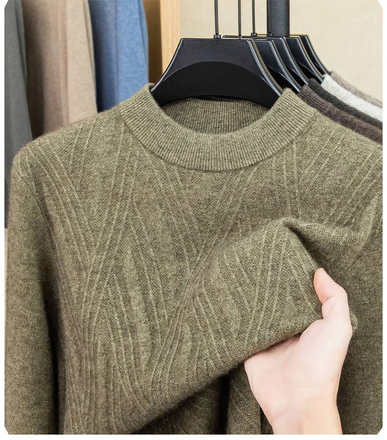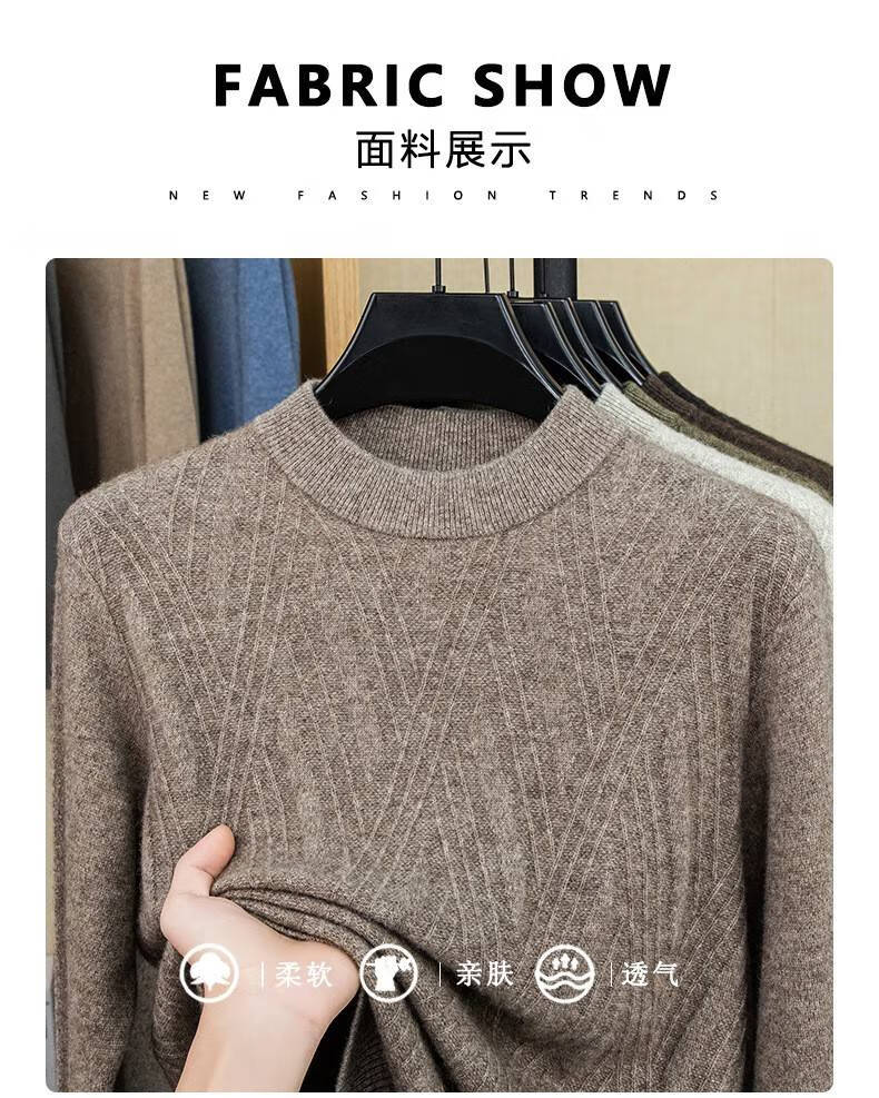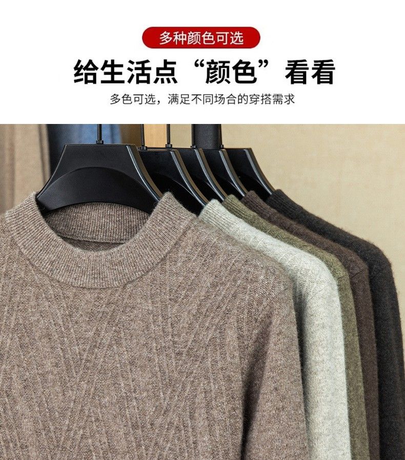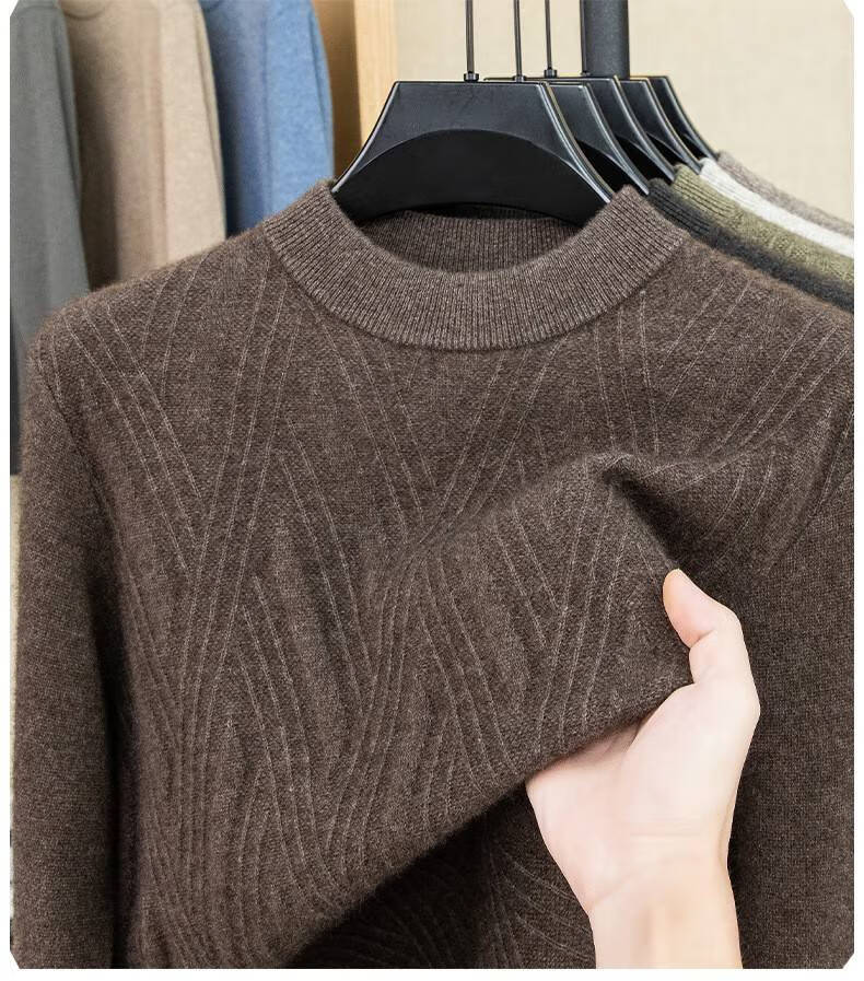 Lilan's new yak wool sweater men's round neck thickened sweater middle-aged and elderly dad wear winter 400g sweater tobacco leaf brown thickened 4XL (190)