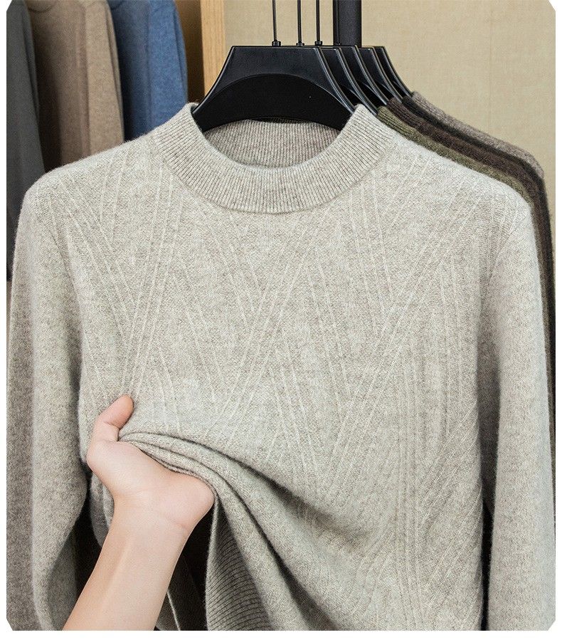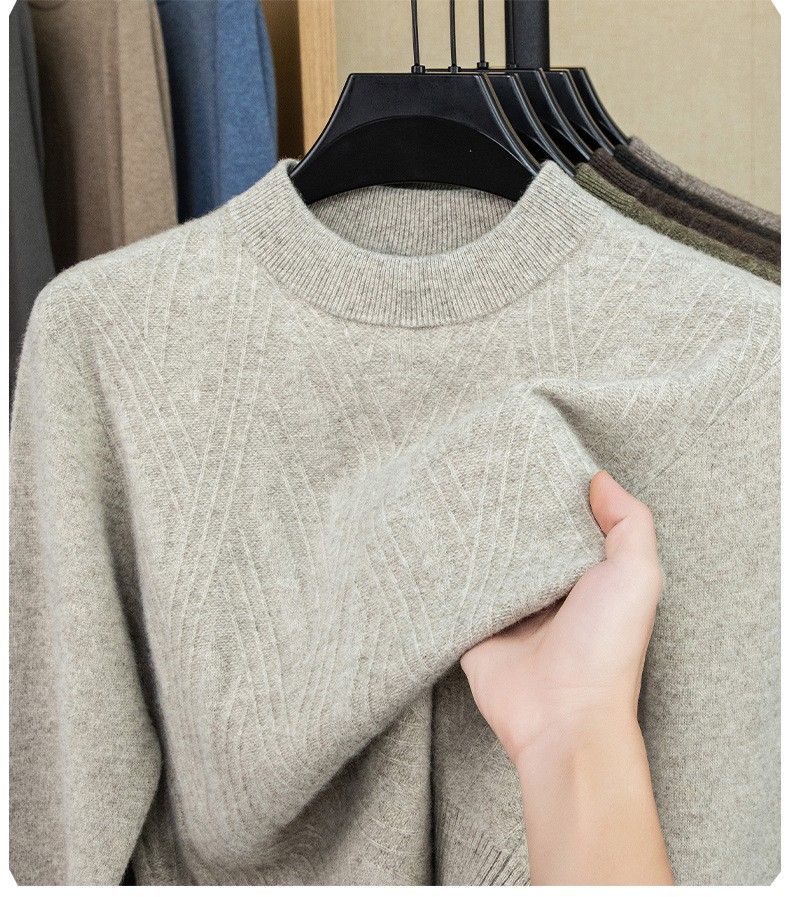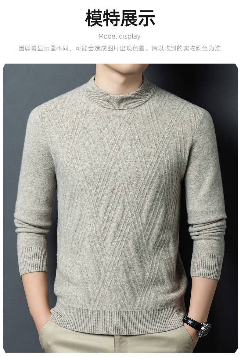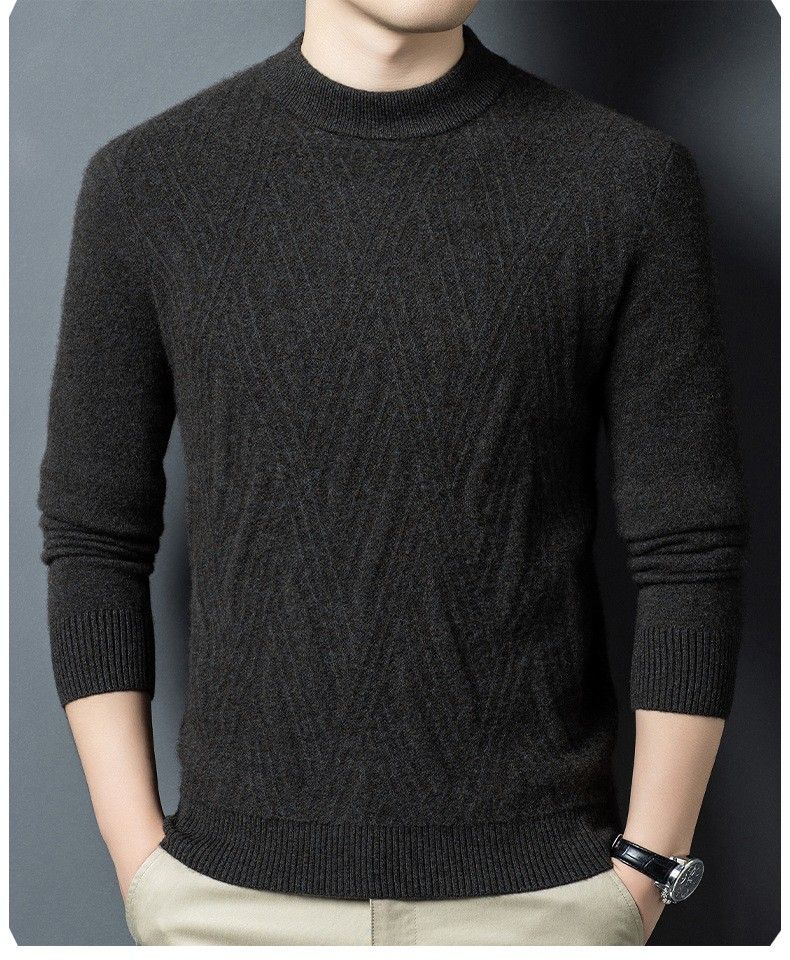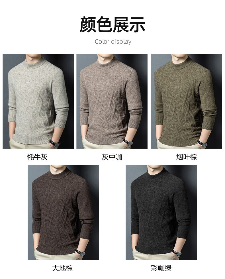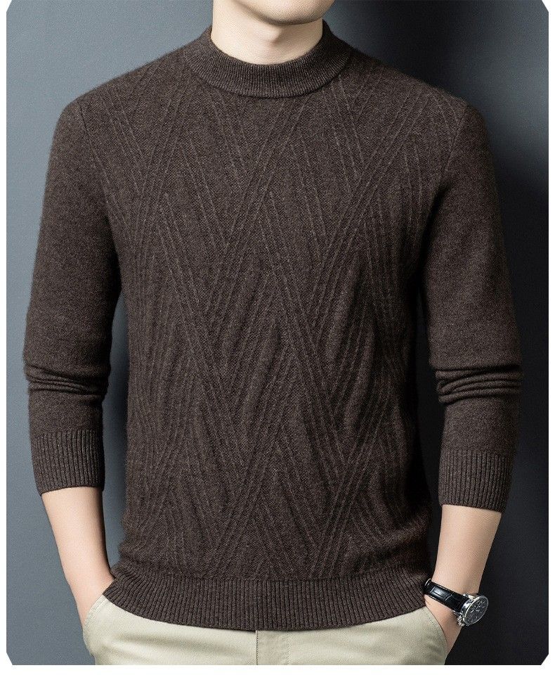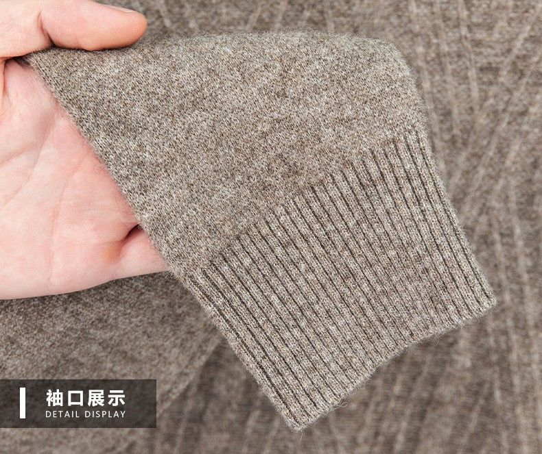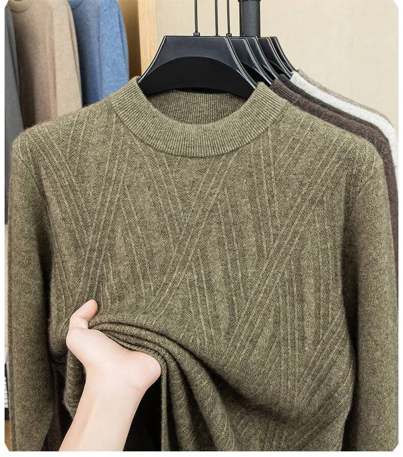 Lilan's new yak wool sweater men's round neck thickened sweater middle-aged and elderly dad wear winter 400g sweater tobacco leaf brown thickened 4XL (190)