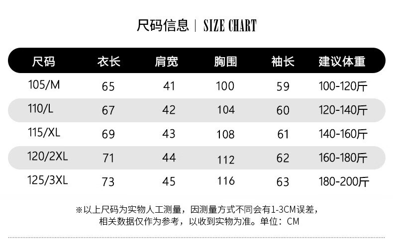 China (cm) 165 / 88-90 170 / 96-98 175 / 108-110 180 / 118-122 185 / 126-130