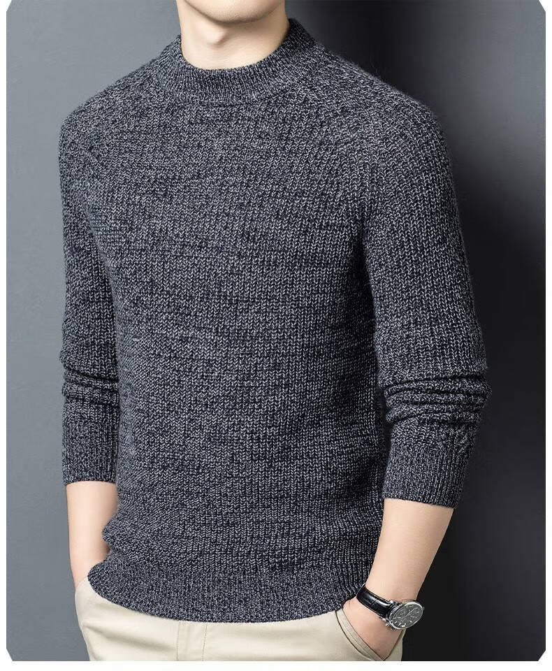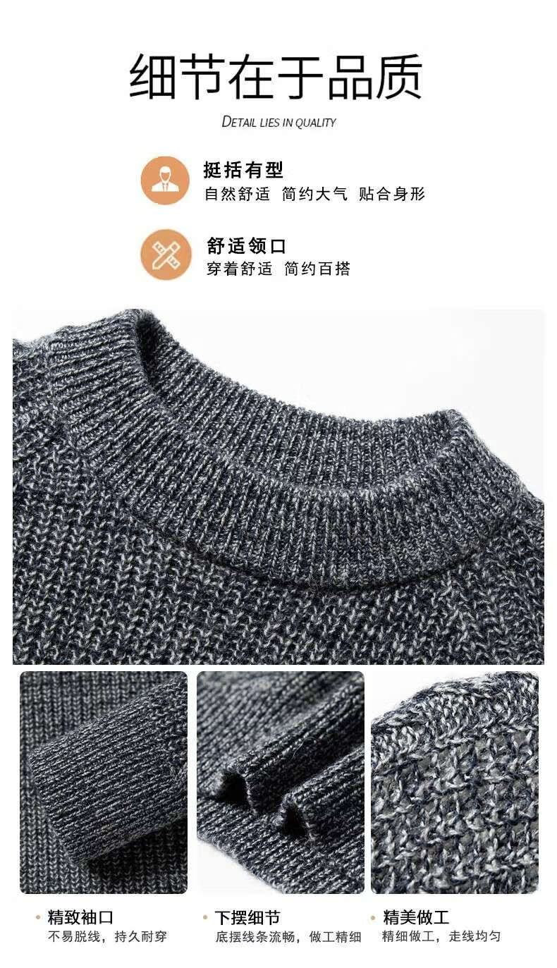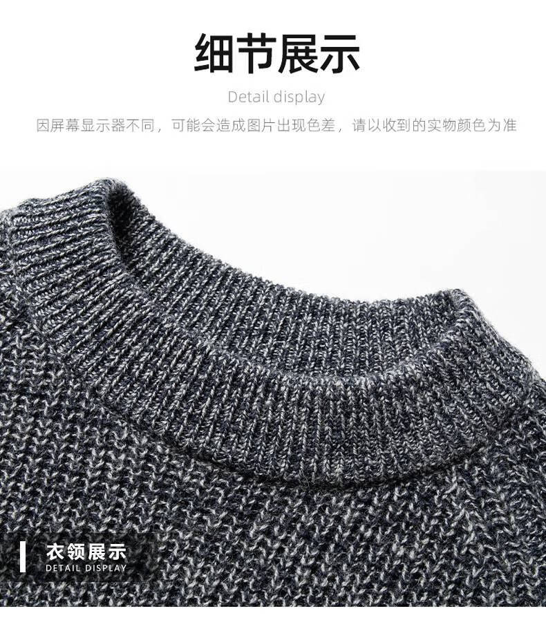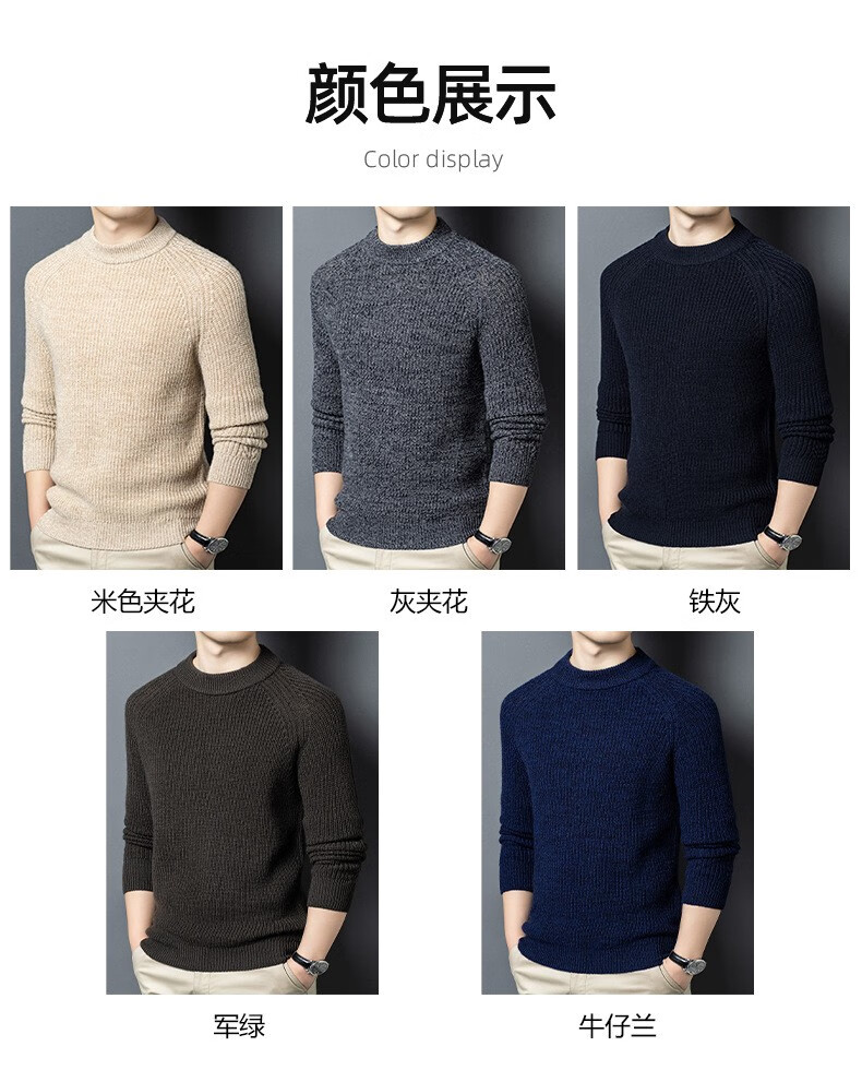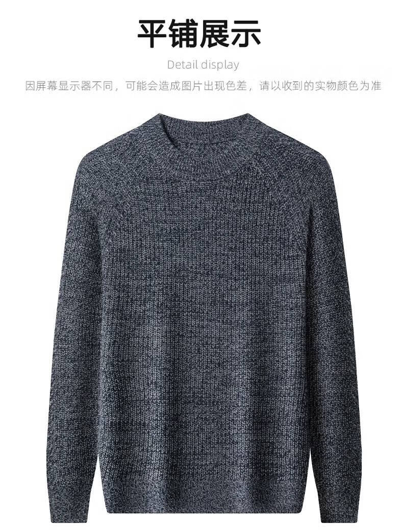 Lilang Men's Round Neck Wool Sweater Winter Thickened Warm Sweater Middle-aged Fashion Versatile 500g Thick Woolen Needle Denim Lan Thickened 4XL (190)