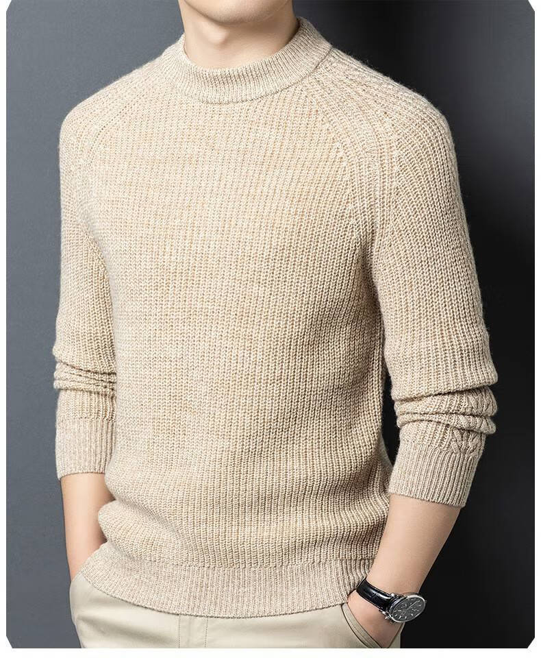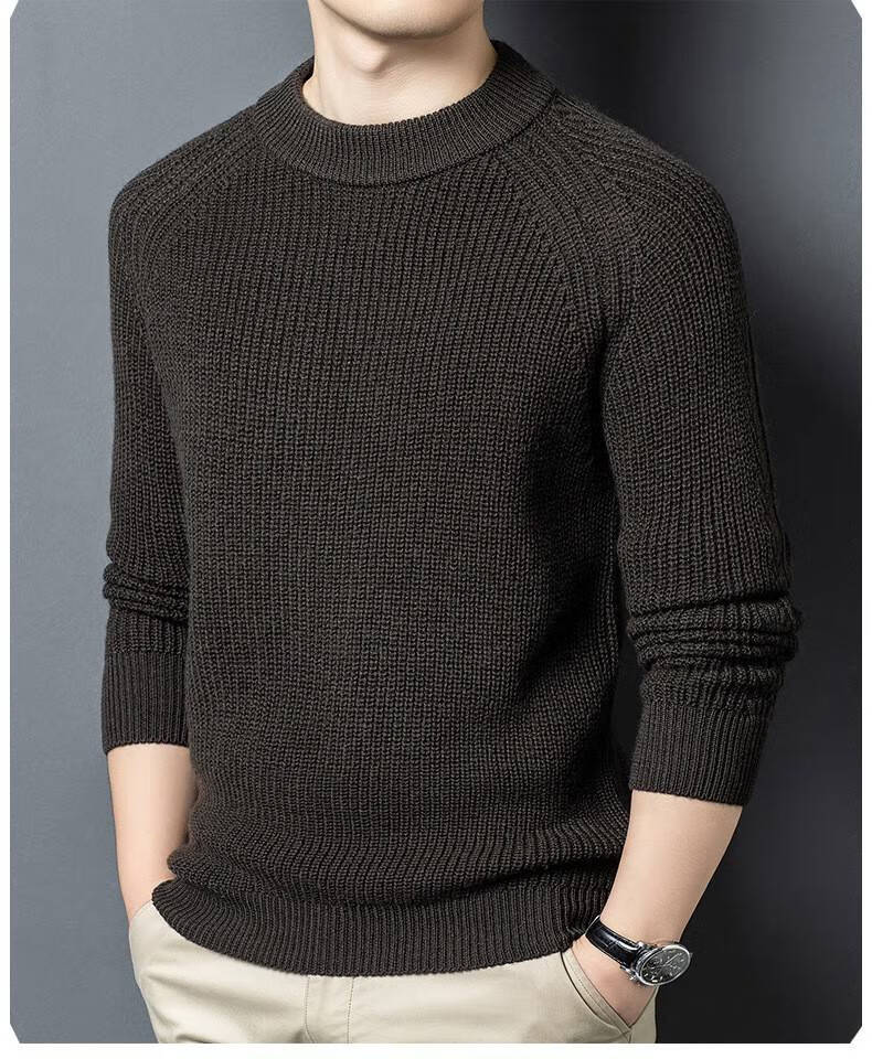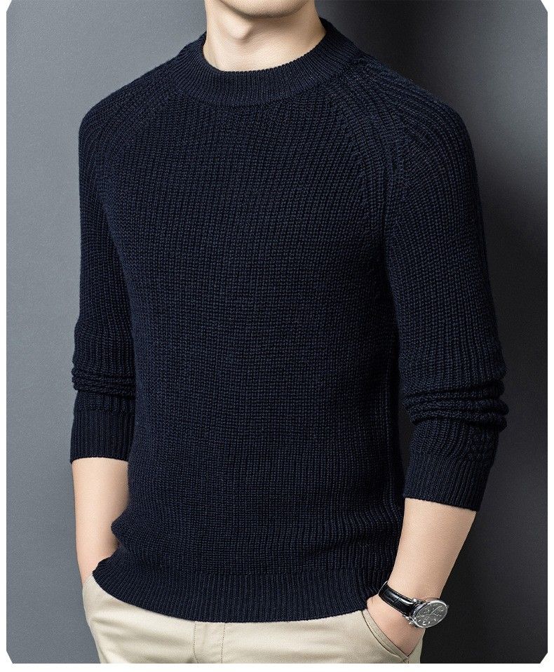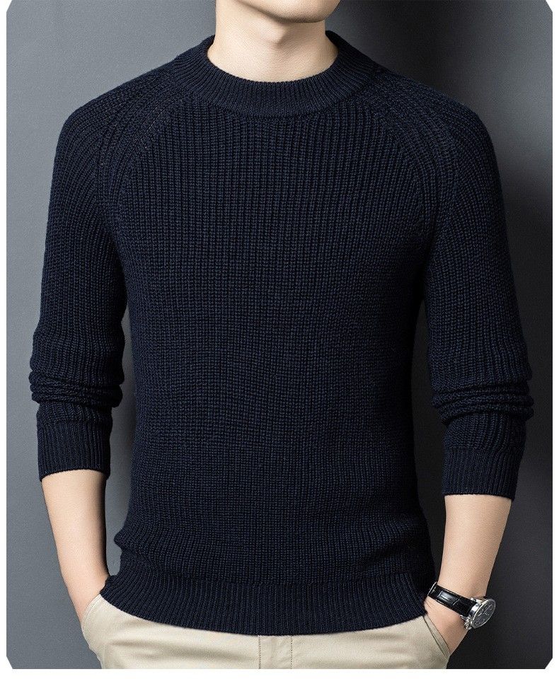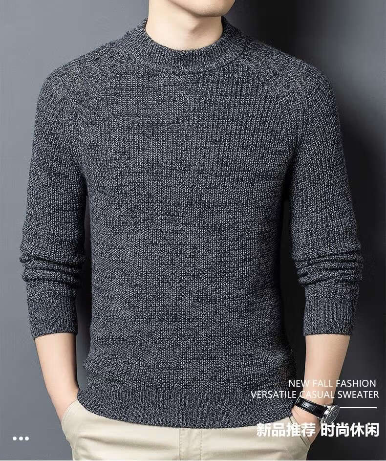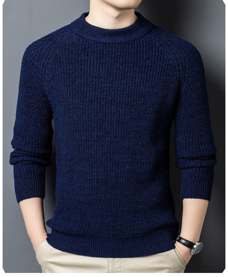 Lilang Men's Round Neck Wool Sweater Winter Thickened Warm Sweater Middle-aged Fashion Versatile 500g Thick Woolen Needle Denim Lan Thickened 4XL (190)