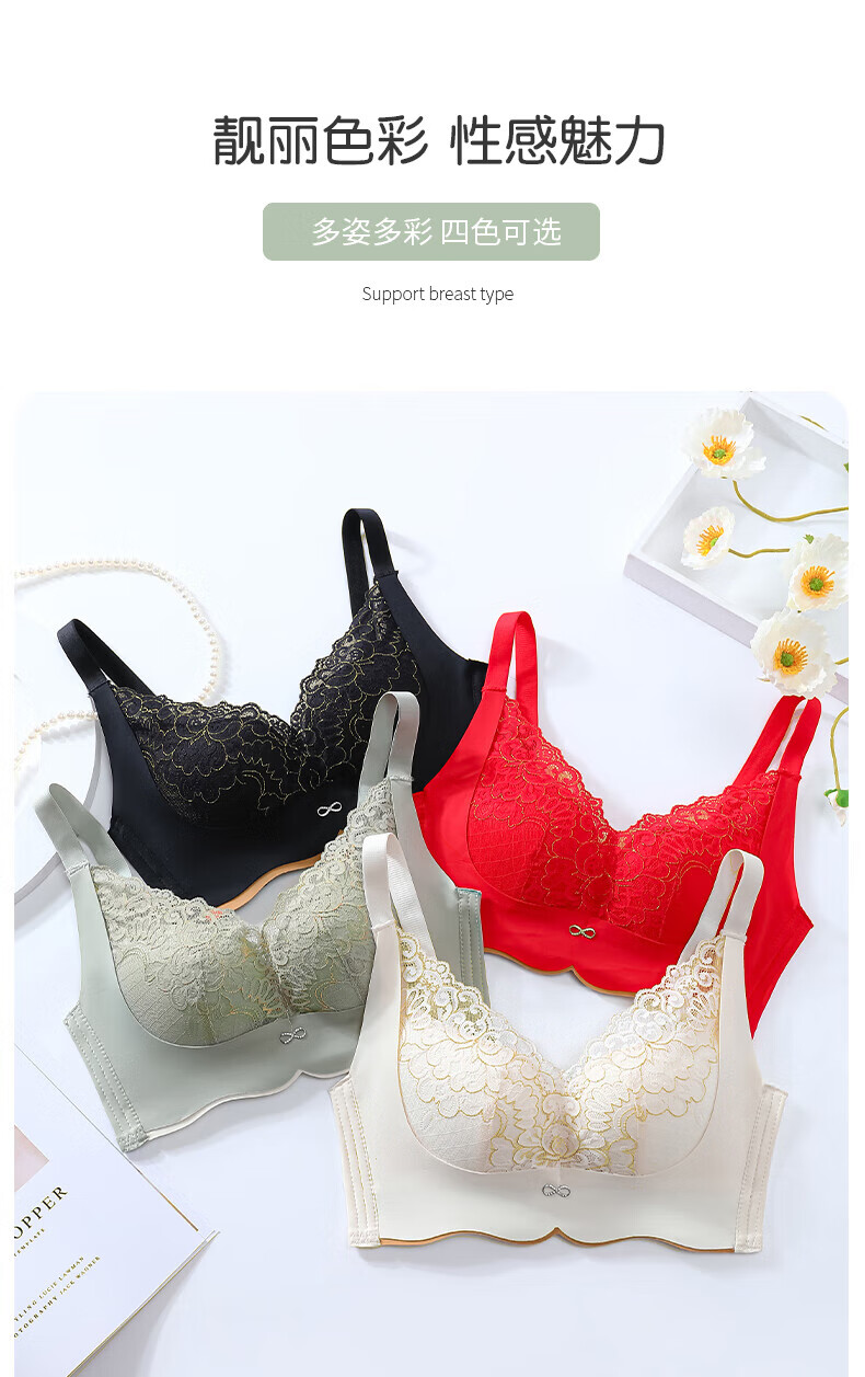 LangSha red underwear for women, wedding bride, birth year gift, sexy push-up, breast-retracting, anti-sagging bra, red 1 green 1 2XL 140-160Jin Jin equals 0.5kg 38/85AB