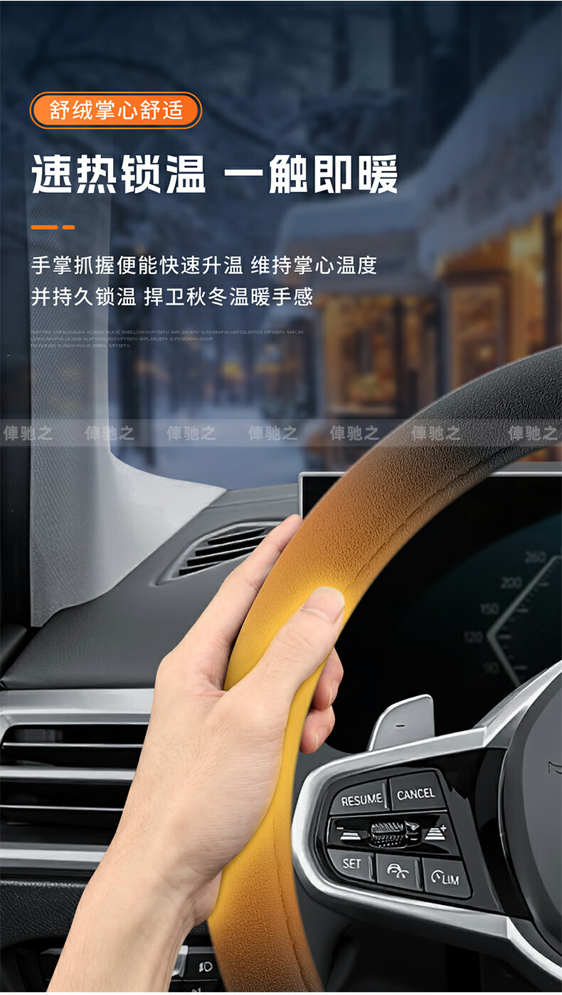 Yichi is suitable for Toyota Alphard steering wheel cover, short plush 11-25 models modified decorative anti-slip handlebar cover to keep warm in winter Toyota Alphard (warm winter black plush round) without car logo