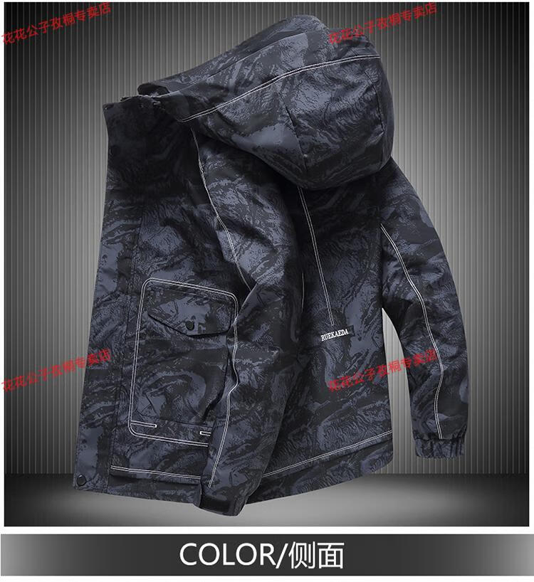 Playboy plus size men's windbreaker autumn and winter trendy fat man plus fat plus work clothes plus velvet thickened loose jacket hooded coat camouflage cotton coat thickened 6XL (220-240Jin Jin equals 0.5 kg)