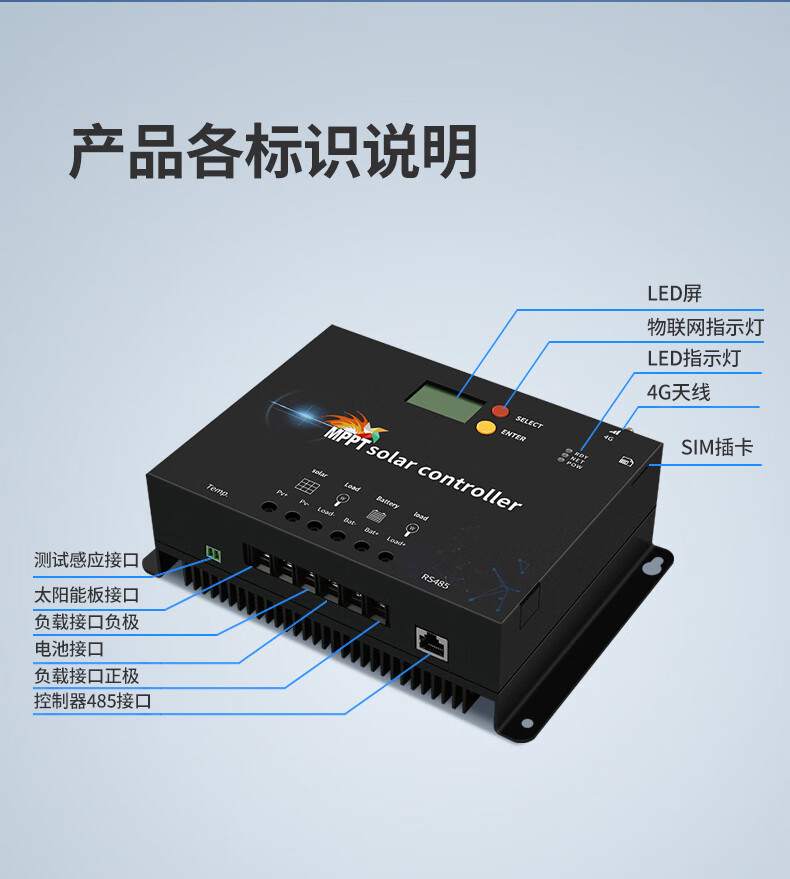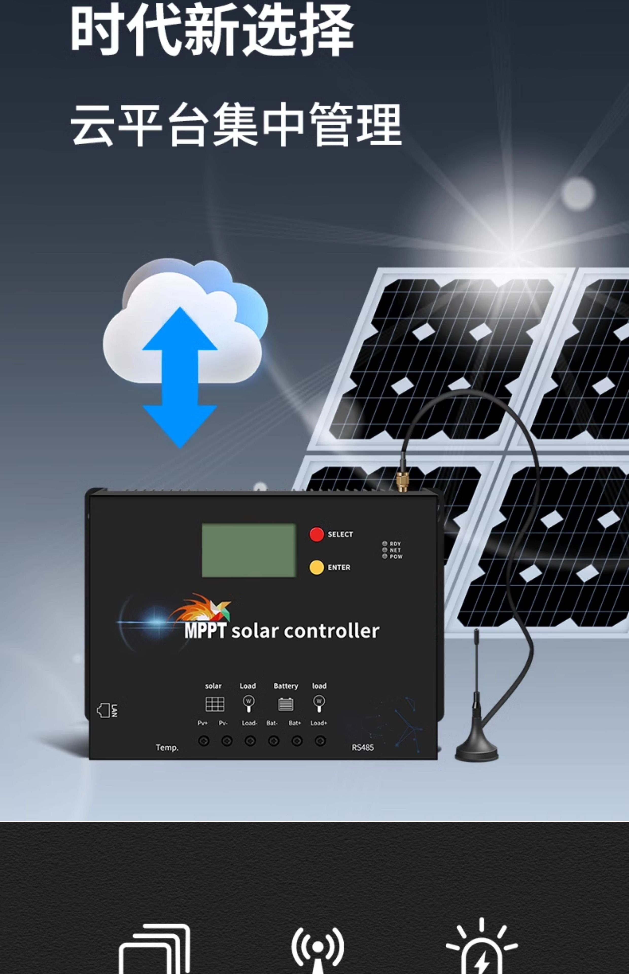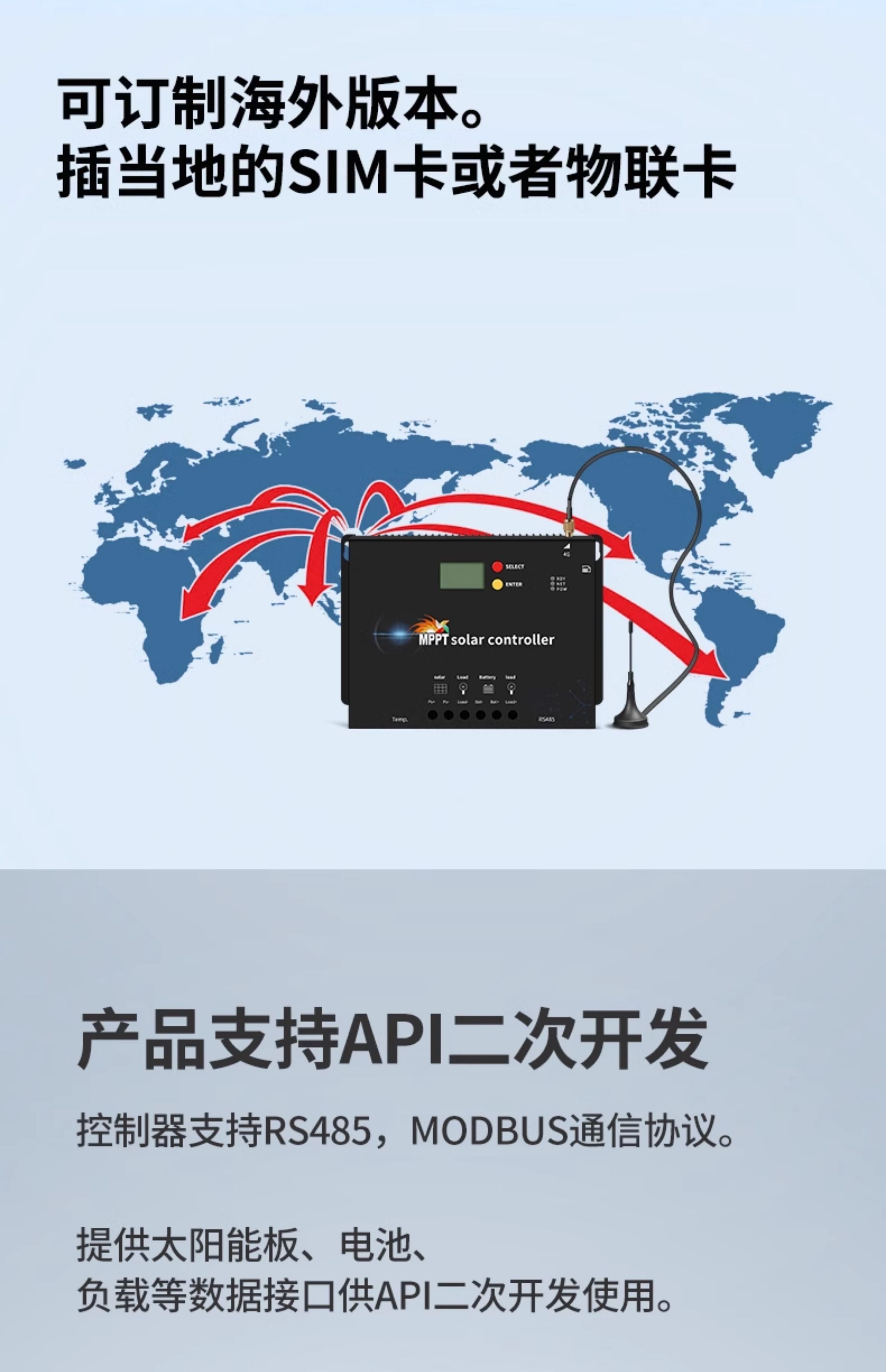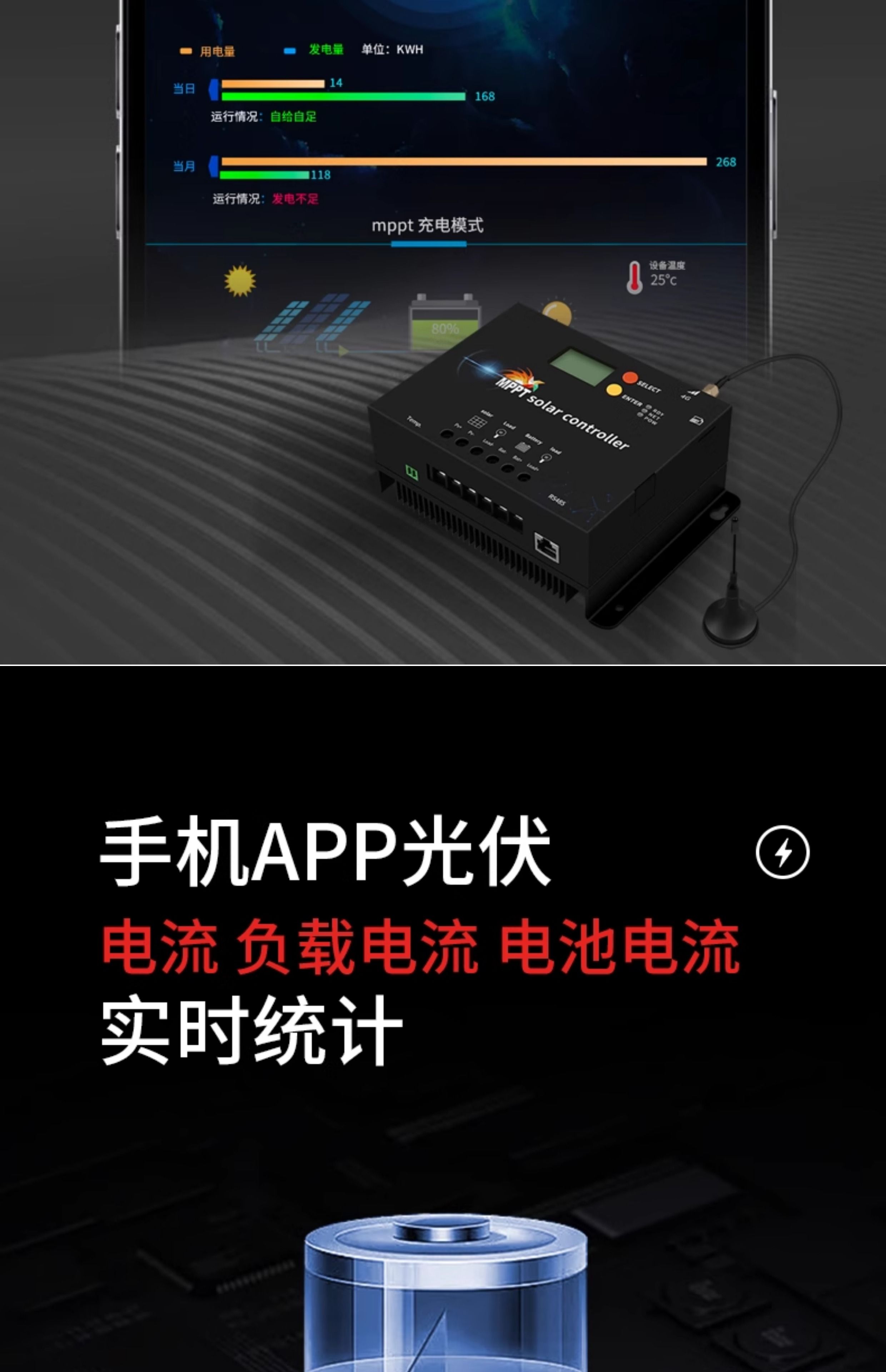 MPPT IoT solar controller fully automatic universal 4G remote photovoltaic lithium battery charger and discharger wifi 12V/24V40A IoT 4G version comes with 3 years of traffic (4