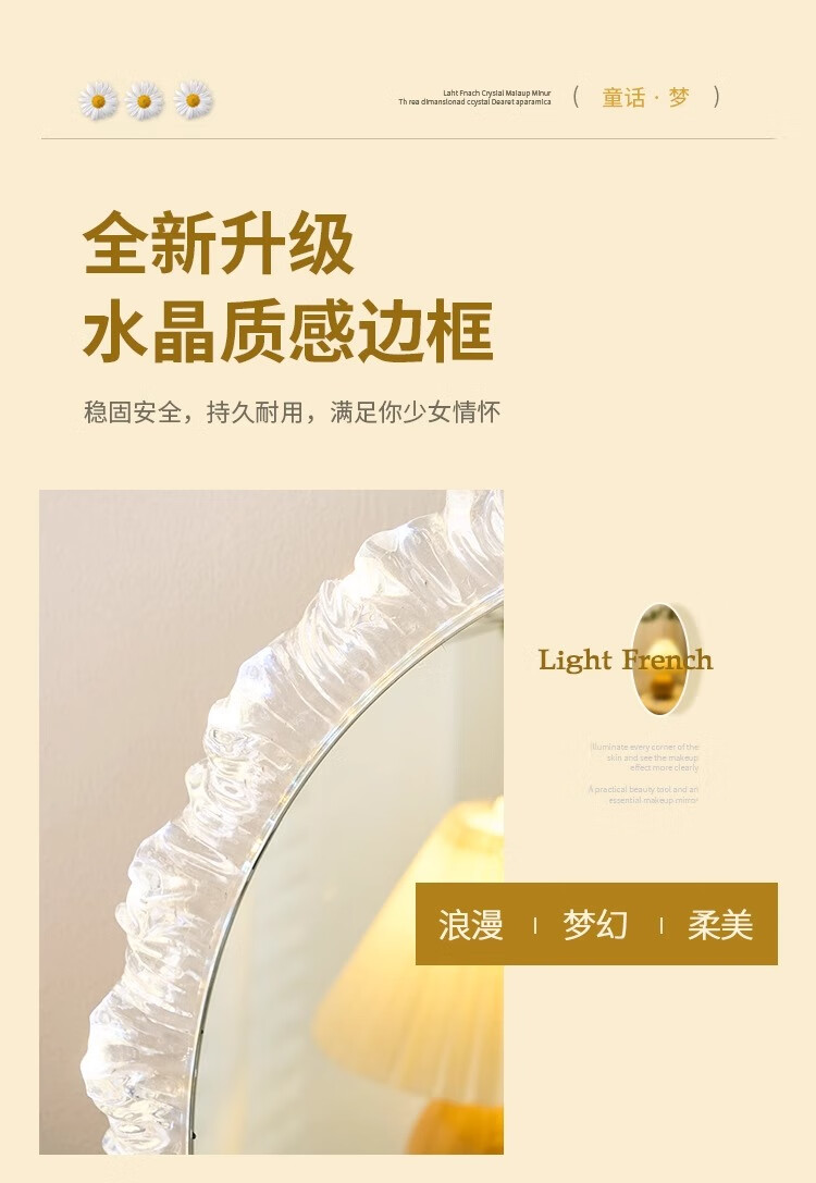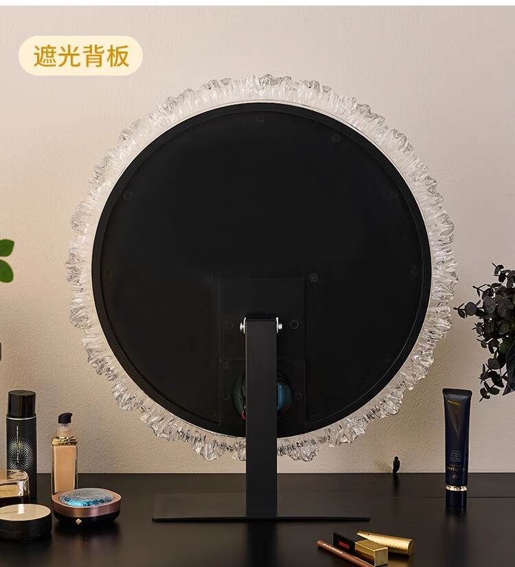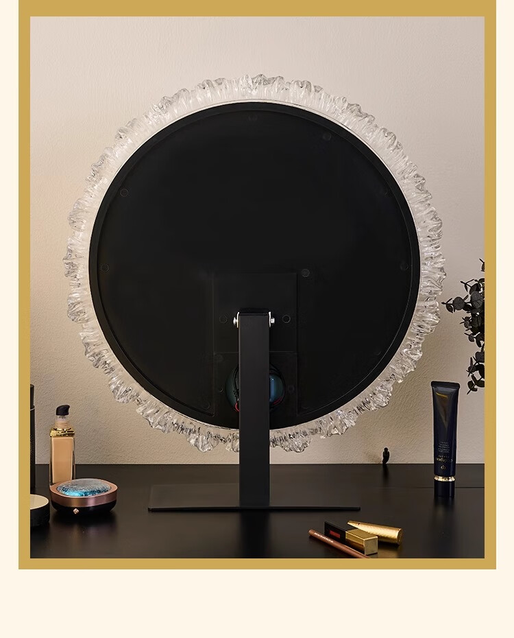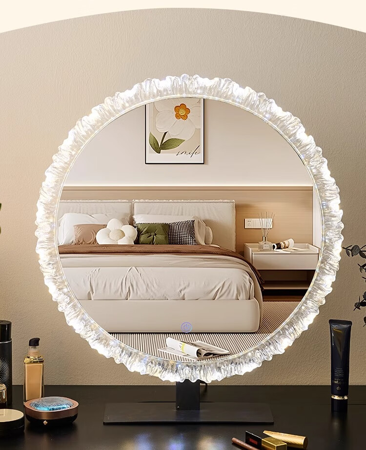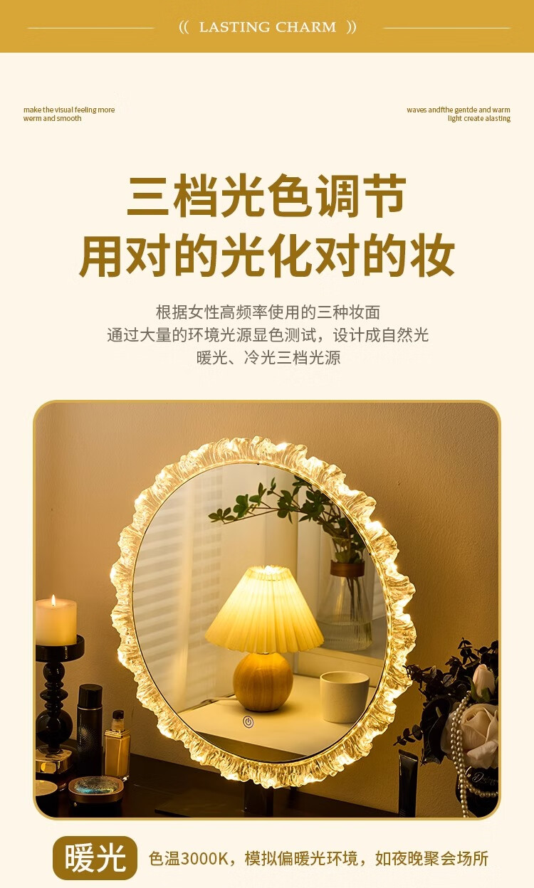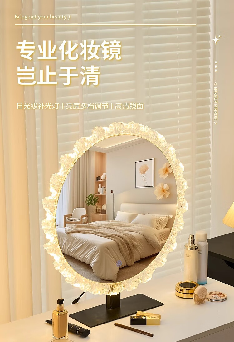 Cosmetic mirror with light desktop desktop LED mirror sunflower beauty mirror French master bedroom makeup mirror with real light, diameter 40cm, plug-in model + wall hanging (three-color light changing)