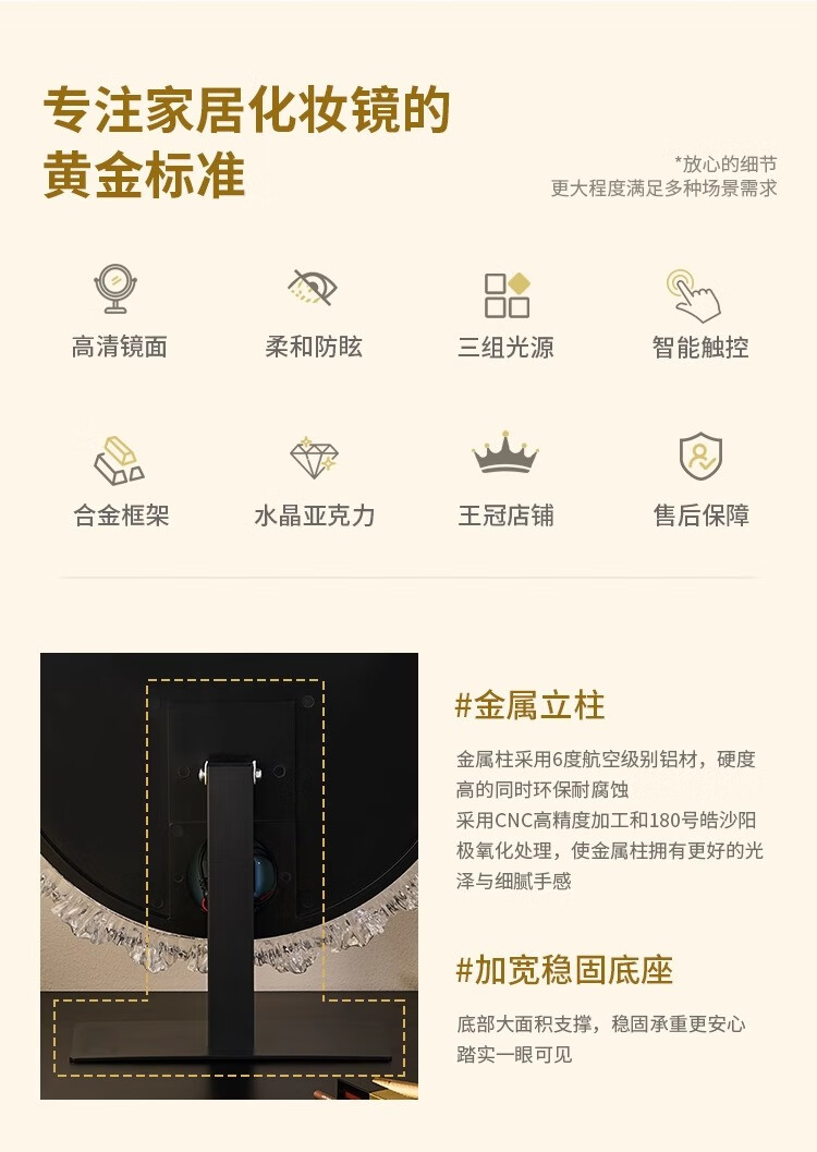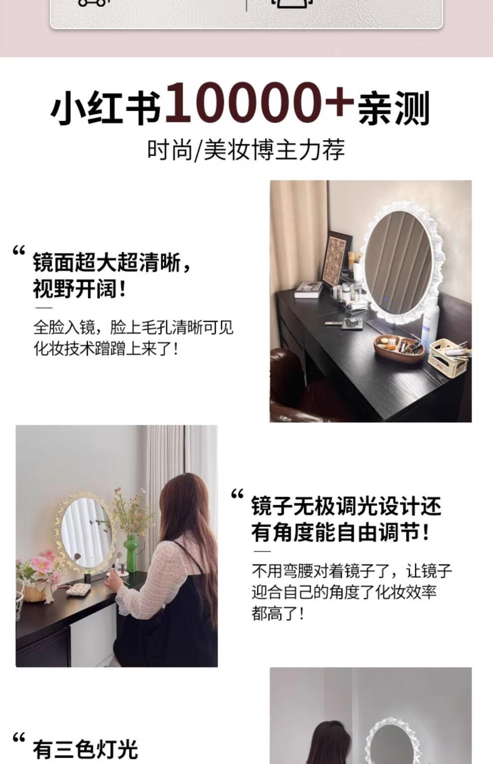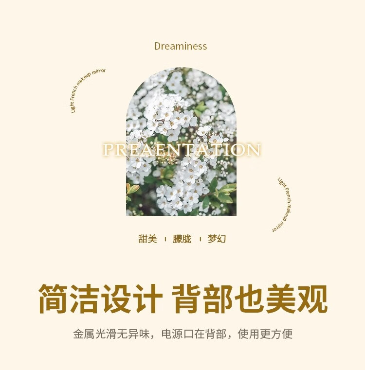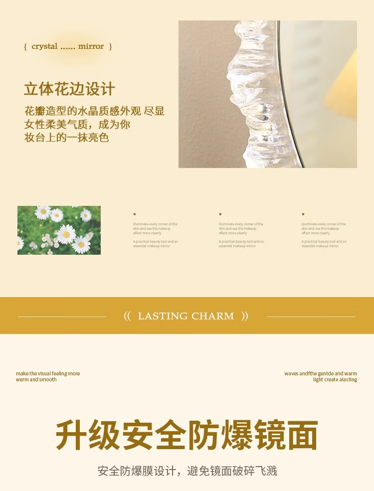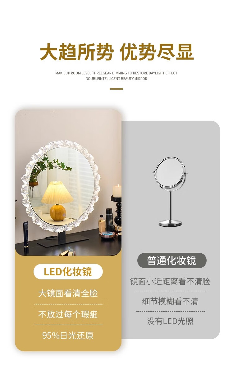 Cosmetic mirror with light desktop desktop LED mirror sunflower beauty mirror French master bedroom makeup mirror with real light, diameter 40cm, plug-in model + wall hanging (three-color light changing)