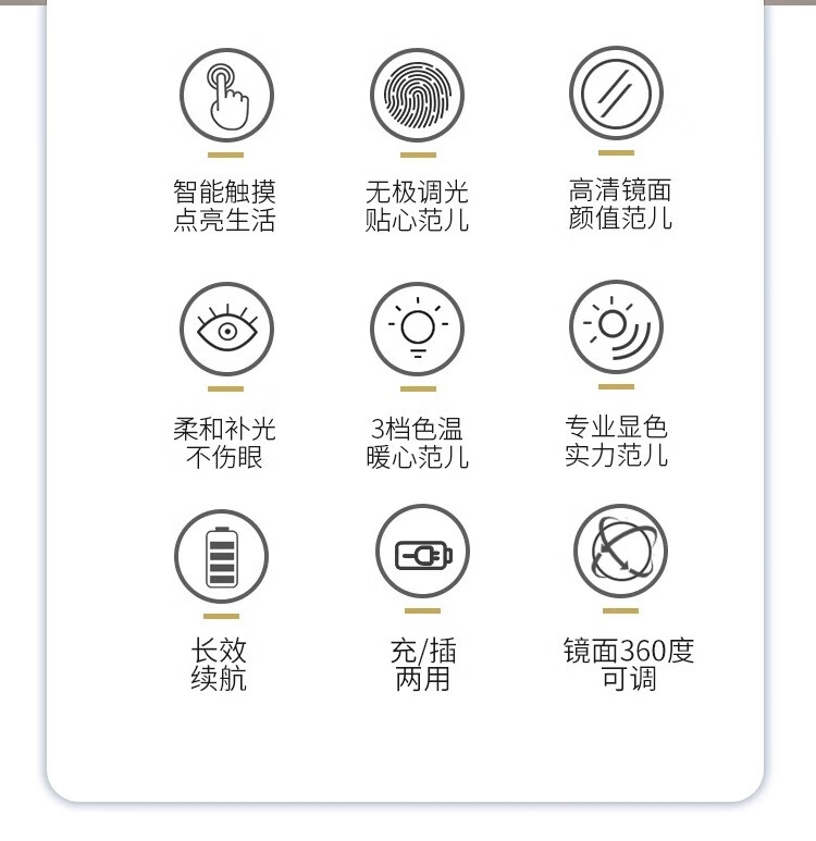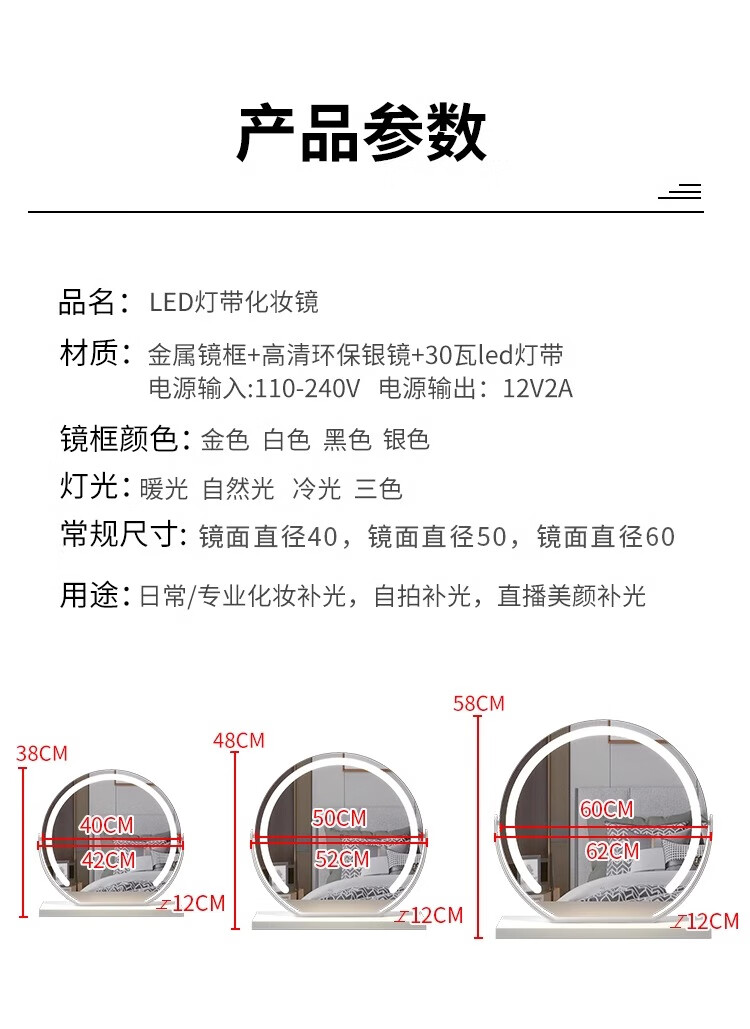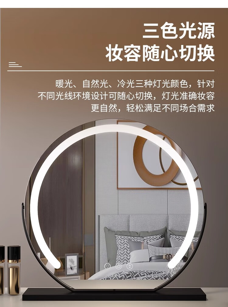 German high-definition LED makeup mirror with light vanity mirror desktop smart home simple master bedroom internet celebrity gold 40 diameter (rechargeable) rotating model