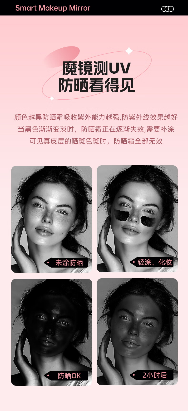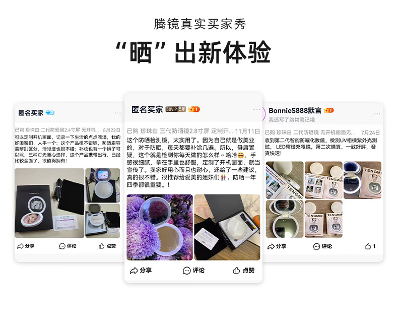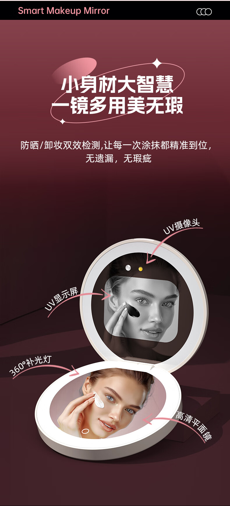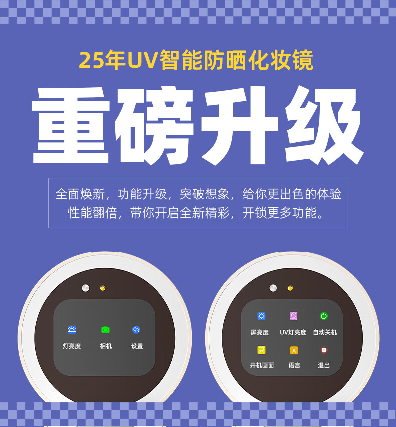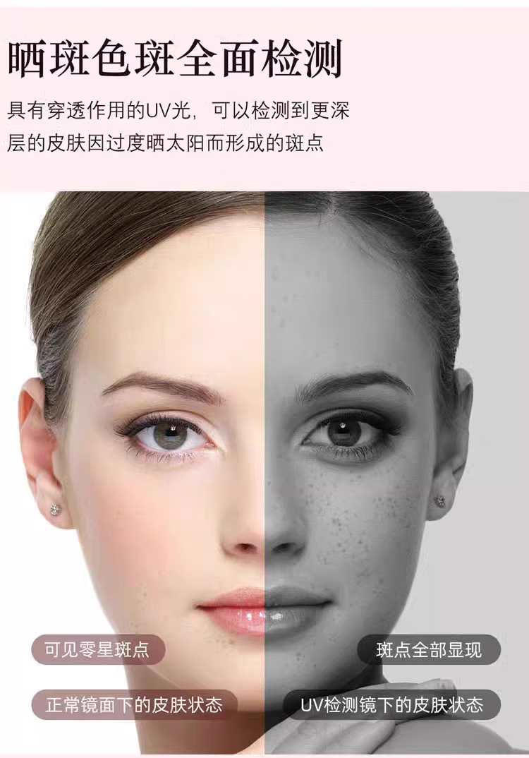 Newly upgraded UV smart sunscreen makeup mirror, ultraviolet ray detection mirror, UV camera, portable LED makeup mirror, third generation (2.8-inch screen) regular version, no startup picture