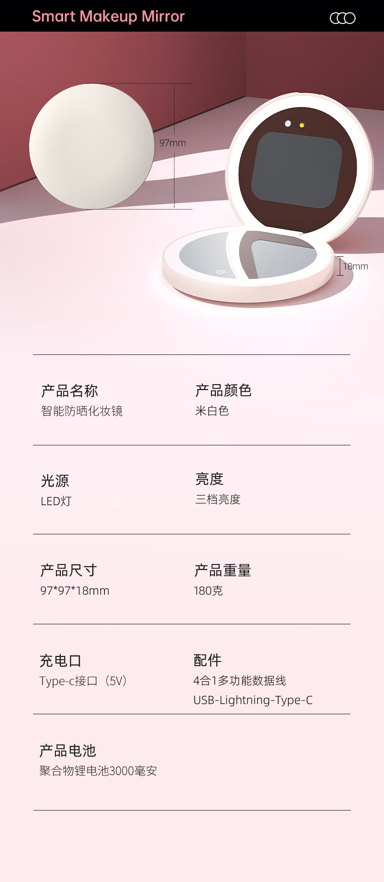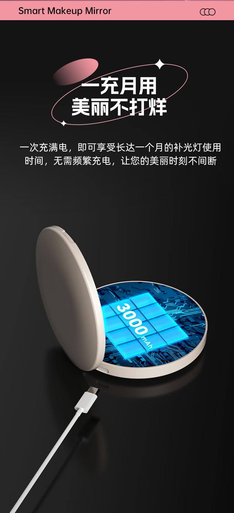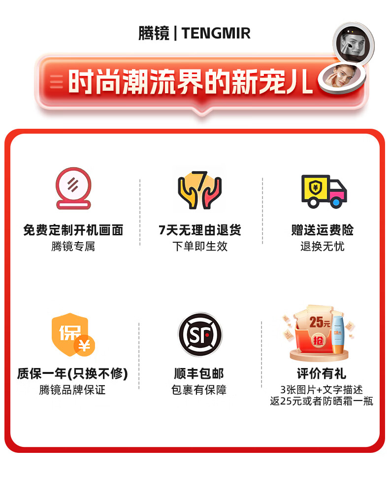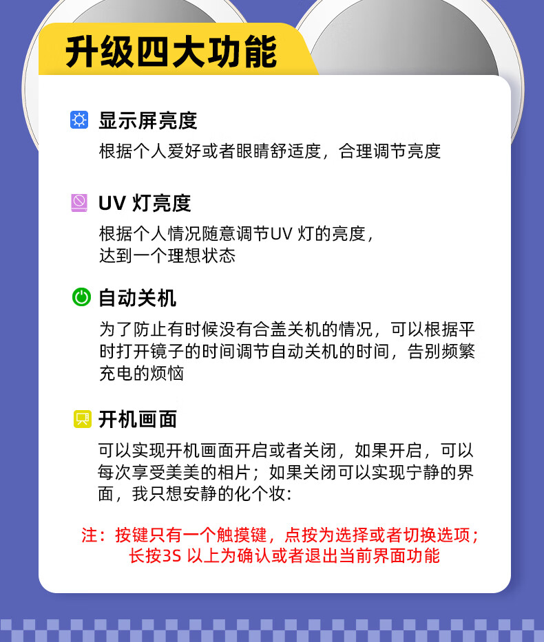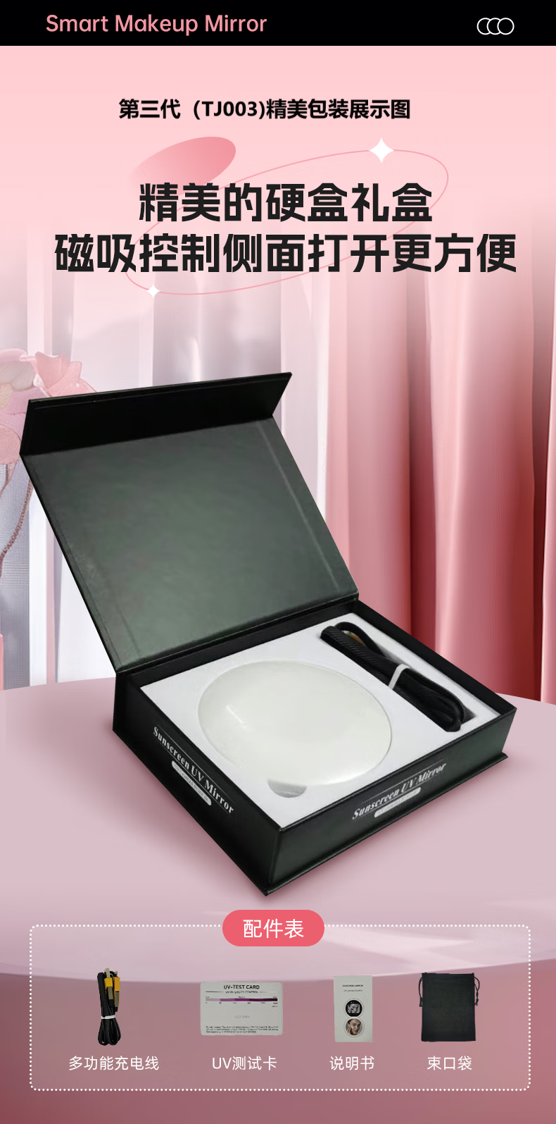 Newly upgraded UV smart sunscreen makeup mirror, ultraviolet ray detection mirror, UV camera, portable LED makeup mirror, third generation (2.8-inch screen) regular version, no startup picture
