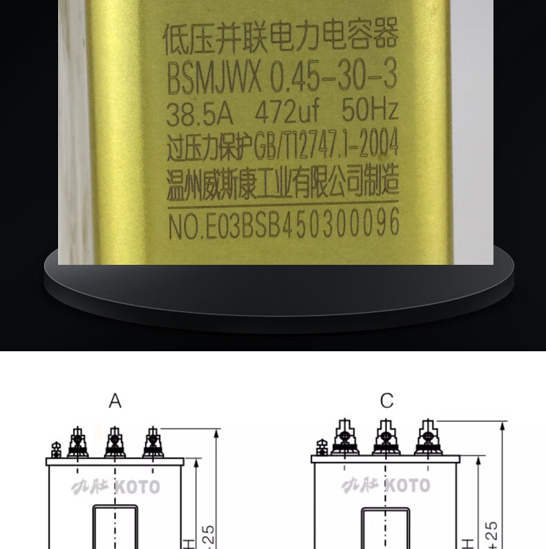 Wenzhou Weisikang Jiudu BSMJWX0.45-30-3 self-healing low-voltage parallel power capacitor BSMJ0.45-100-3