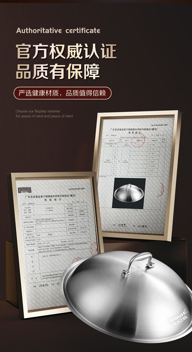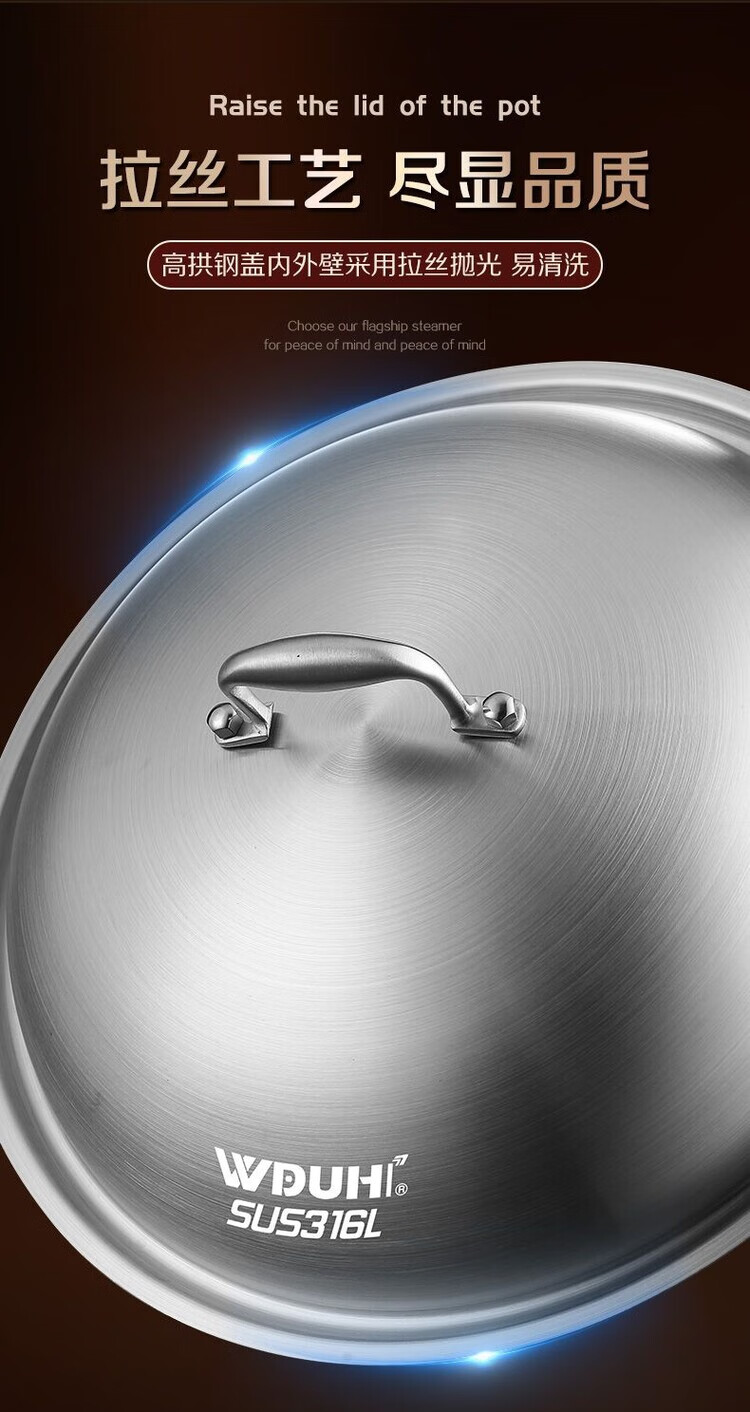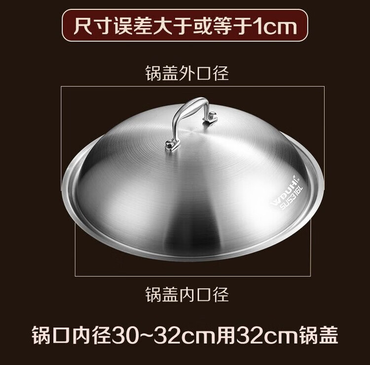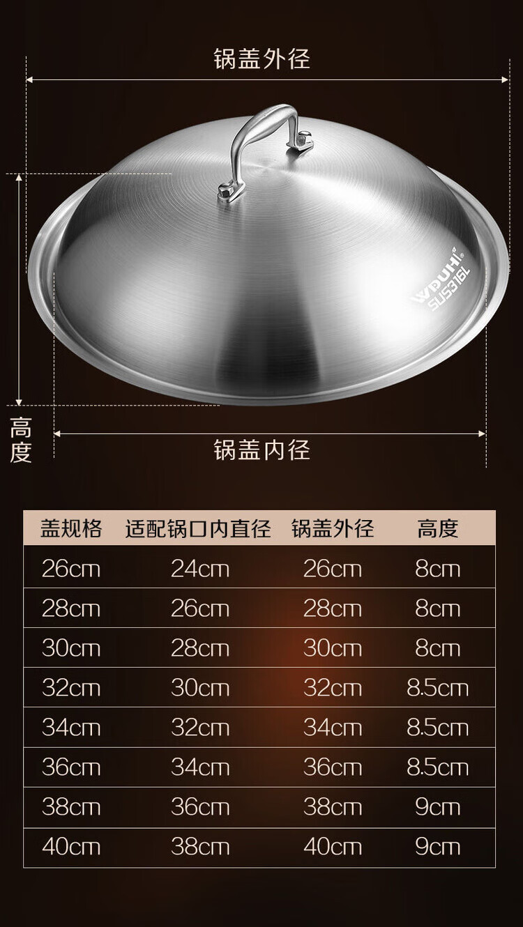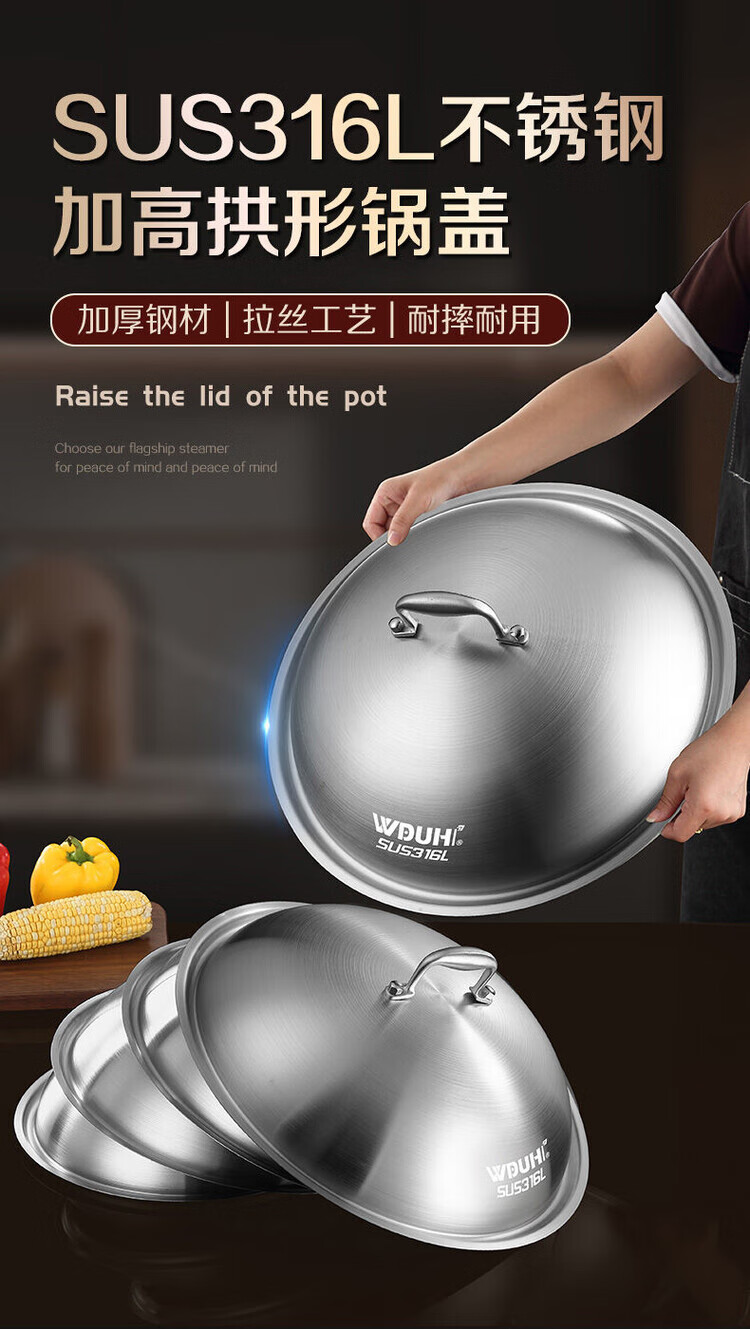 Yili rural large pot lid high arch pot lid 316L stainless steel household universal 32cm wok round lid universal steamer 316 steel inner diameter 38CM outer diameter 40CM