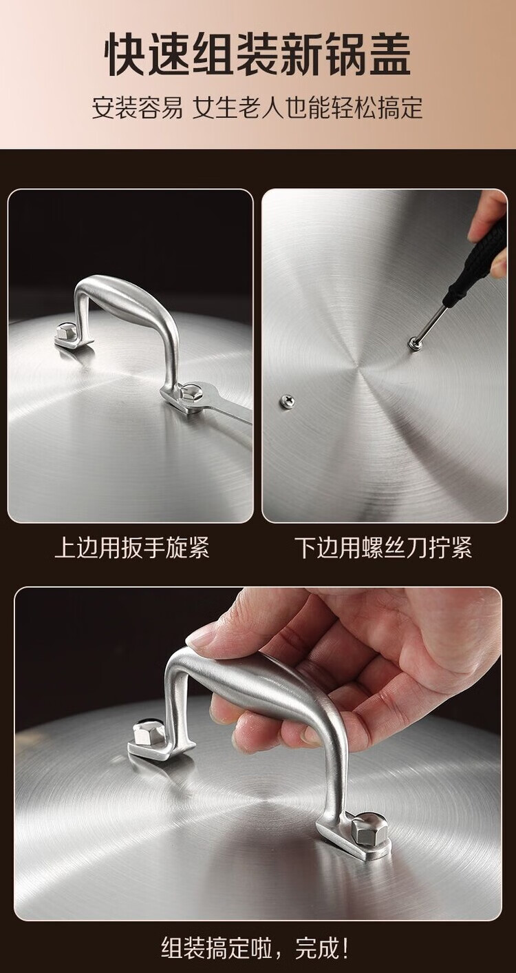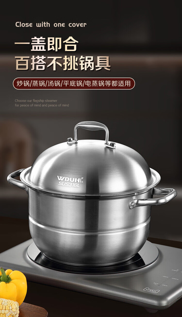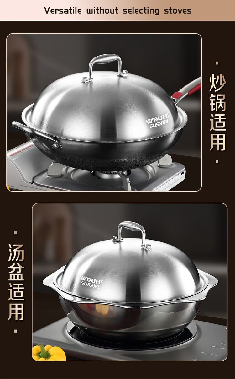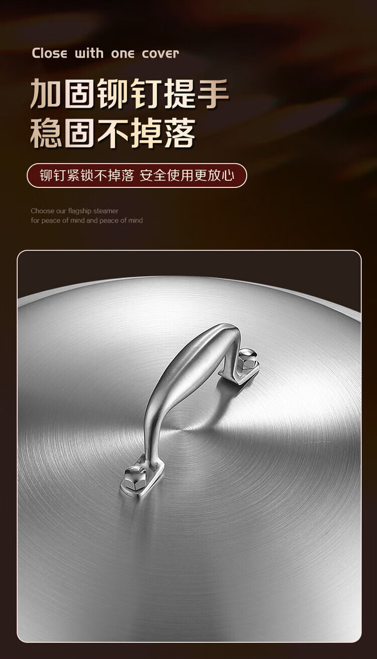 Yili rural large pot lid high arch pot lid 316L stainless steel household universal 32cm wok round lid universal steamer 316 steel inner diameter 38CM outer diameter 40CM
