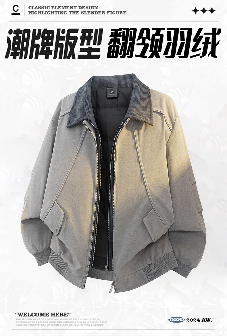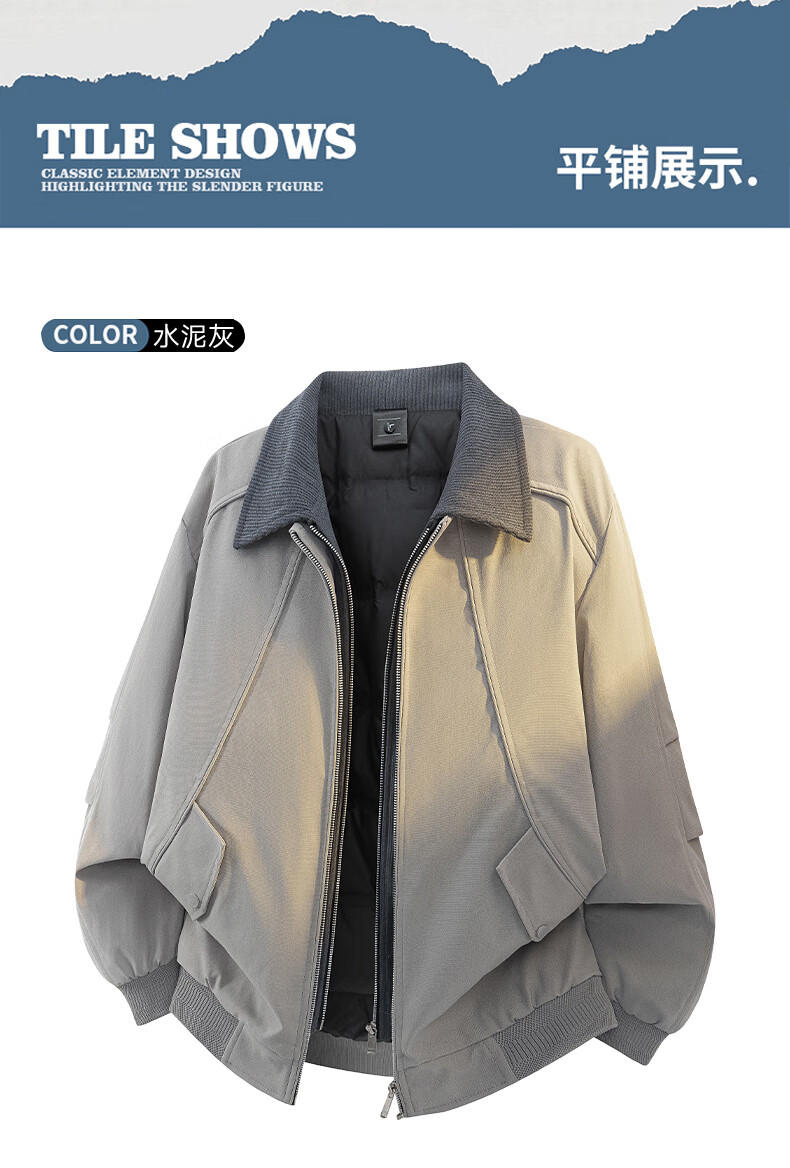 Down jacket men's new winter style 90 white duck down warm and cold-proof lapel fake two-piece casual workwear jacket top cement gray DYFF 2589 3XL recommended 175-190 Jin Jin equals 0.5 kg / down filling 112 grams
