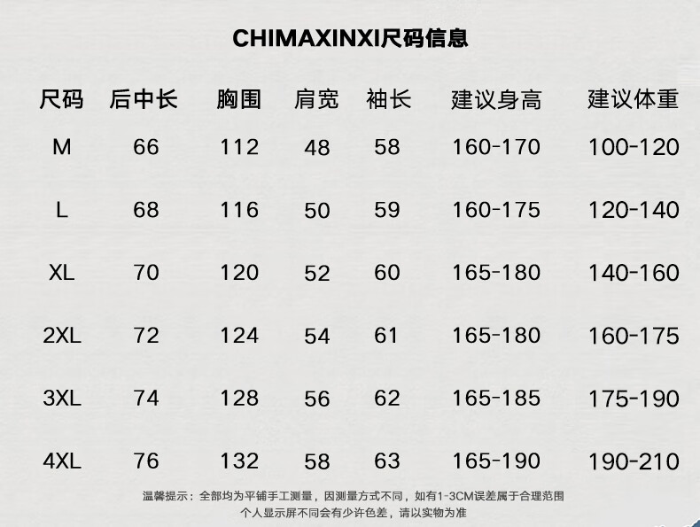 China (cm) 165 / 88-90 170 / 96-98 175 / 108-110 180 / 118-122 185 / 126-130