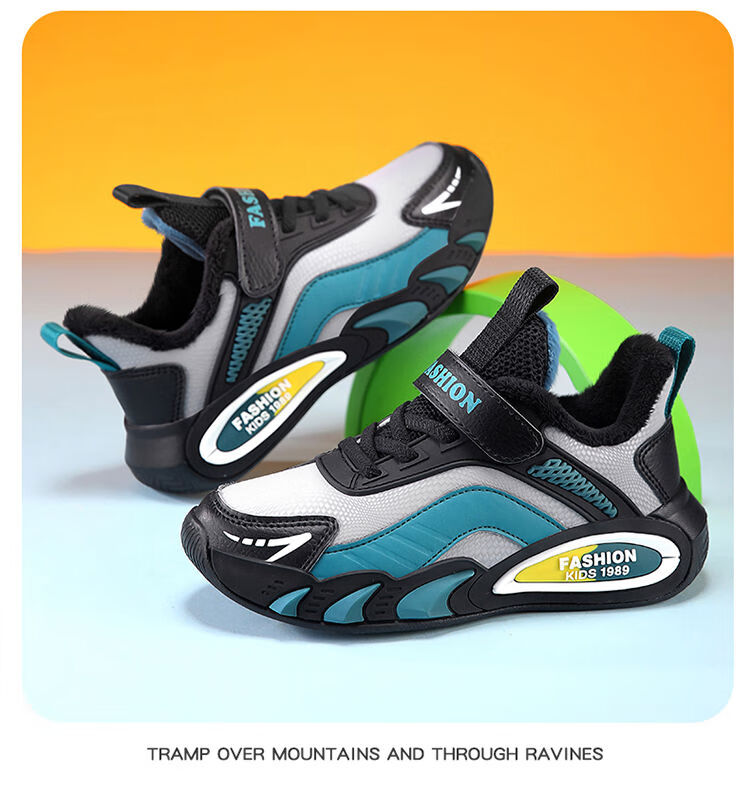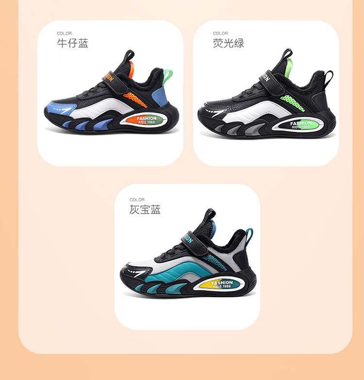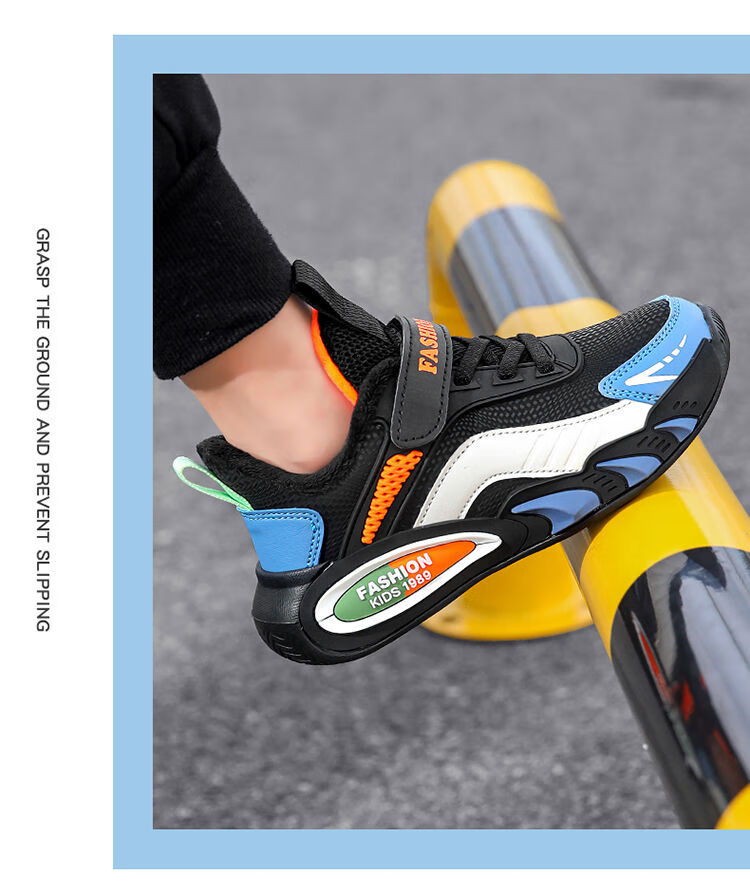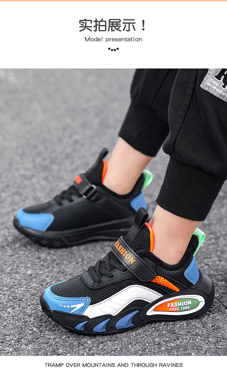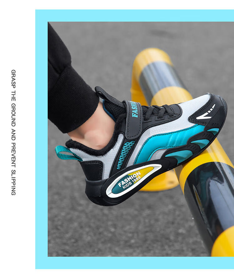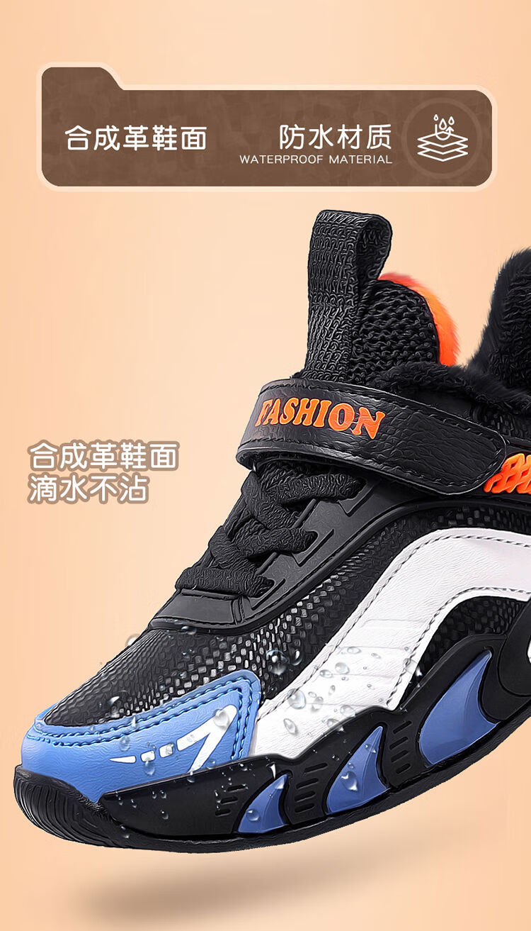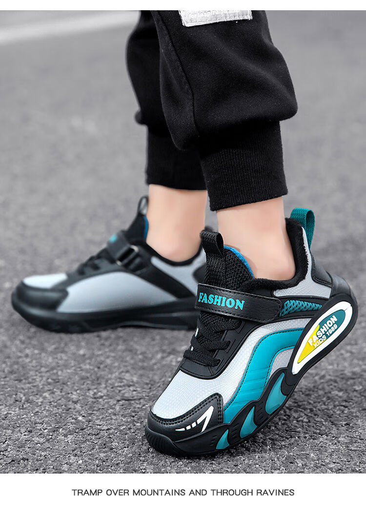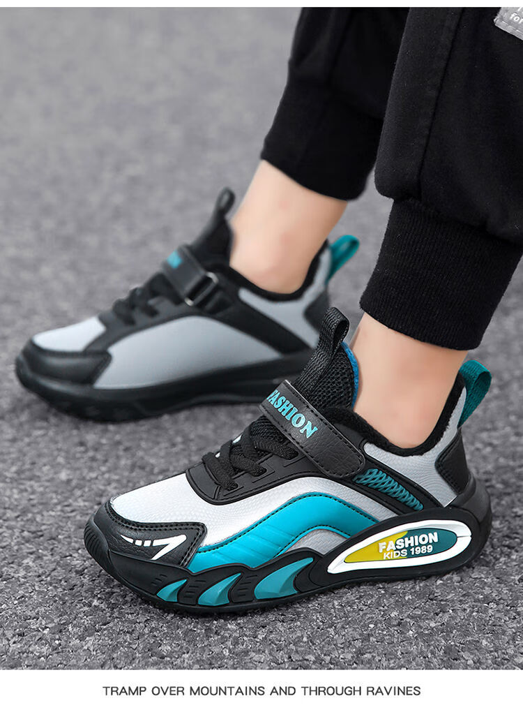 Hongxing Hongerke 2025 Children's Cotton Shoes Boys' Sports Shoes Plus Velvet Leather Waterproof Spring and Autumn Winter Model for Middle and Large Children 6888 Gray Sapphire Blue Plus Velvet 37 Size 37 Inner Length 23 Points 5cm