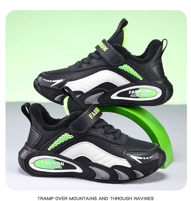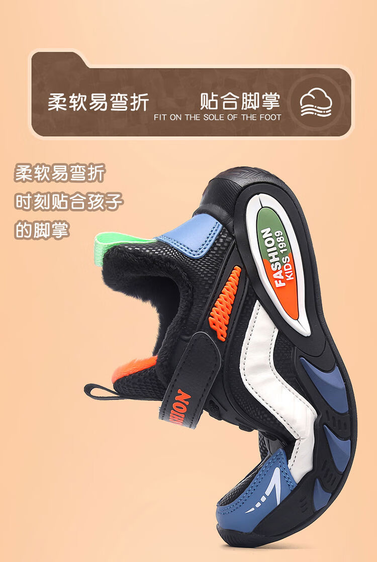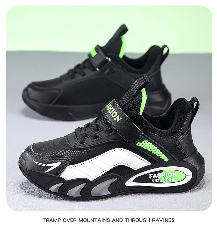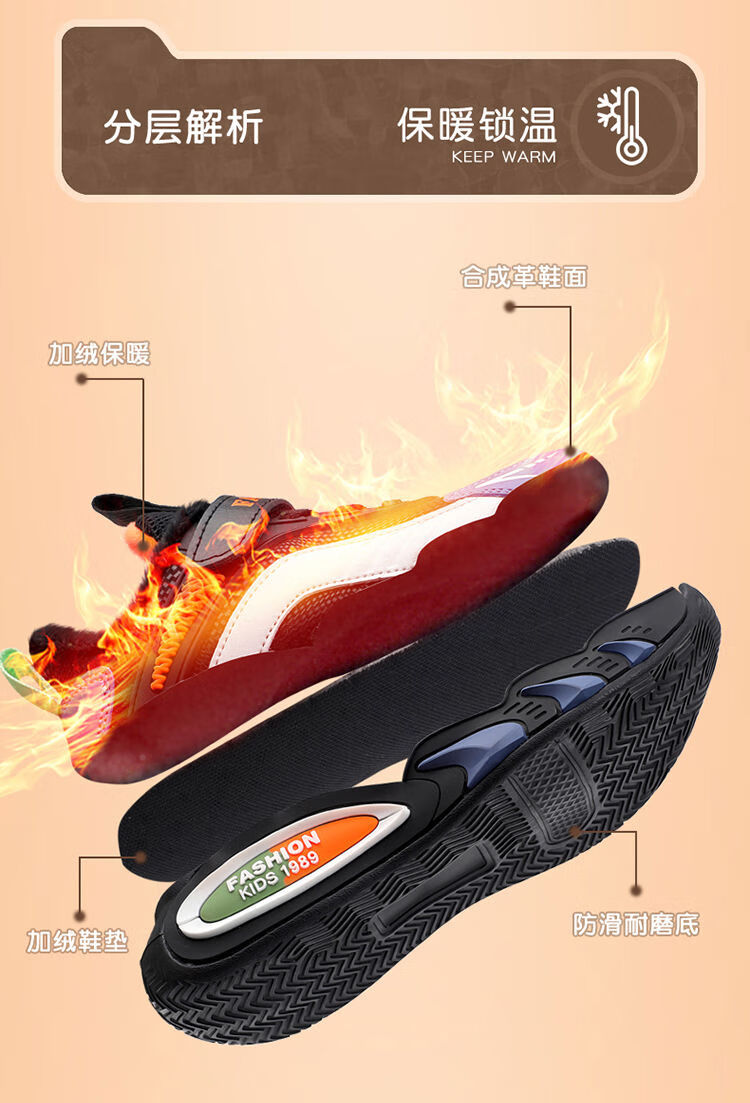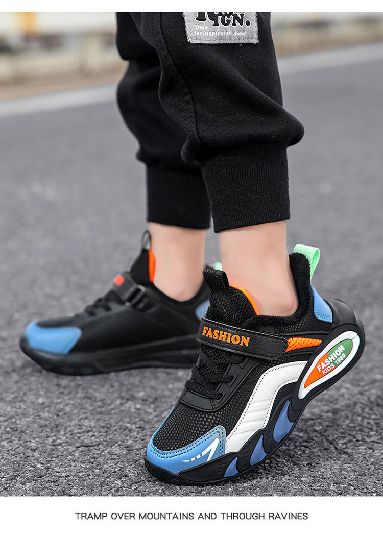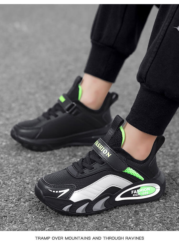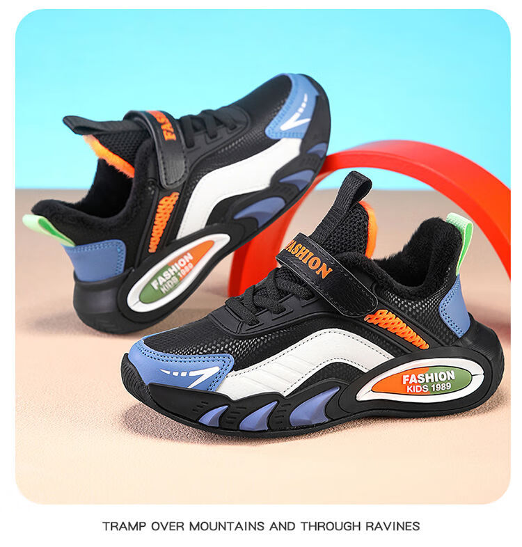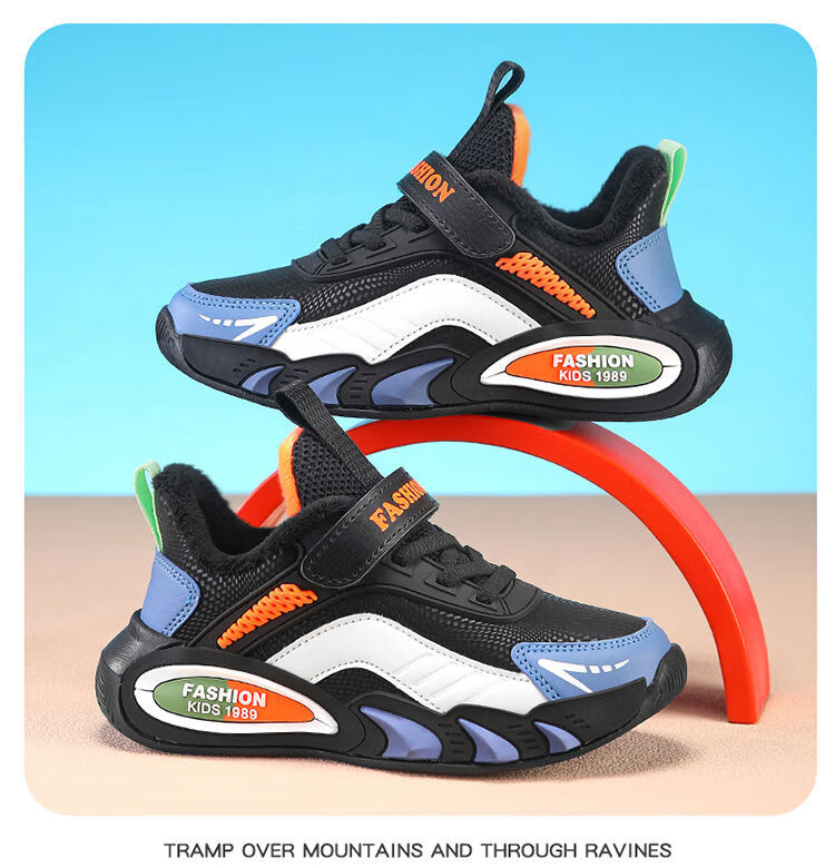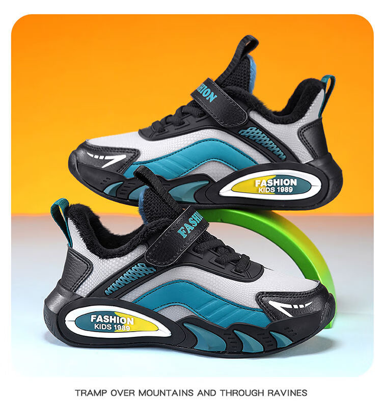 Hongxing Hongerke 2025 Children's Cotton Shoes Boys' Sports Shoes Plus Velvet Leather Waterproof Spring and Autumn Winter Model for Middle and Large Children 6888 Gray Sapphire Blue Plus Velvet 37 Size 37 Inner Length 23 Points 5cm