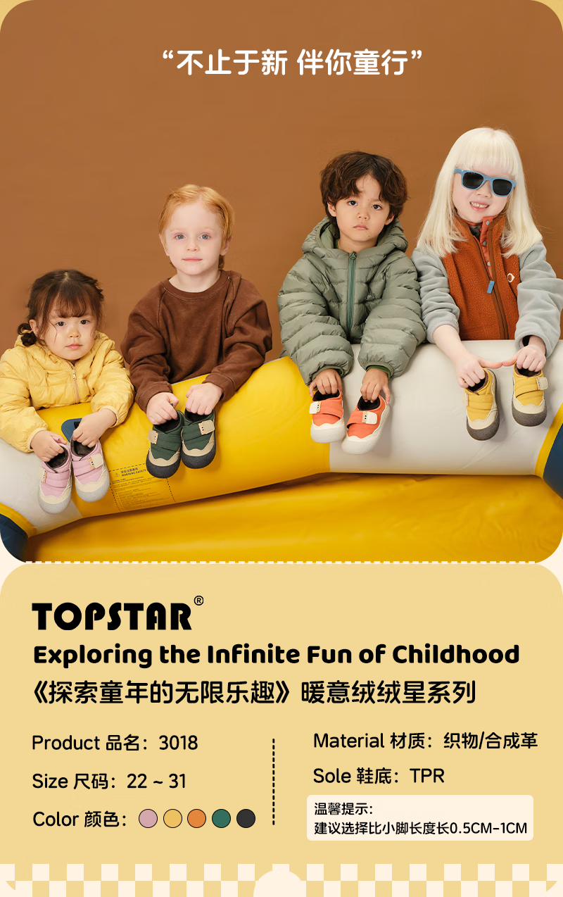 TOPSTAR soft-soled children's cotton shoes winter new boys' casual cotton shoes girls' Velcro casual shoes yellow 28 inner length 18.0cm recommended foot length 17.0cm