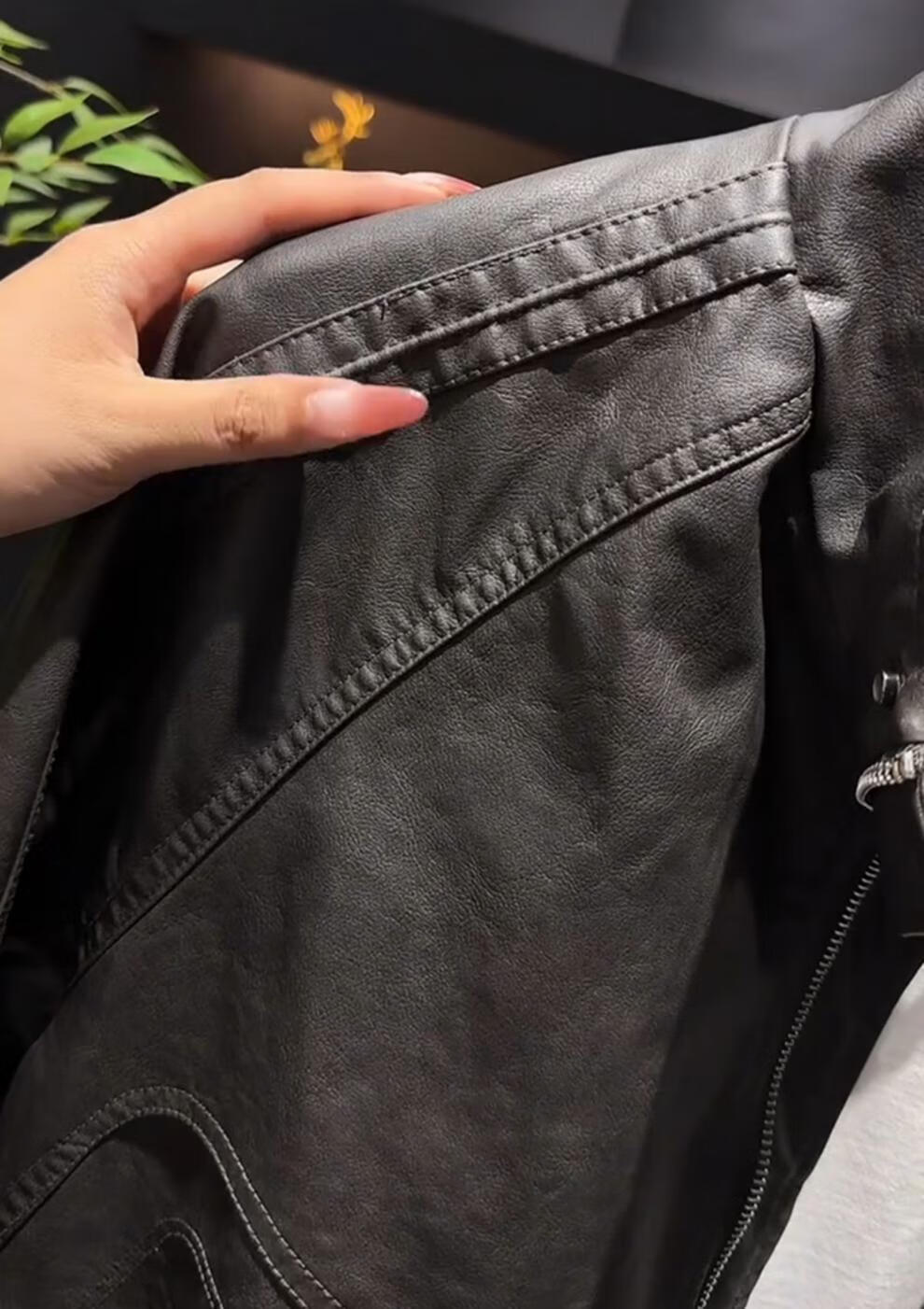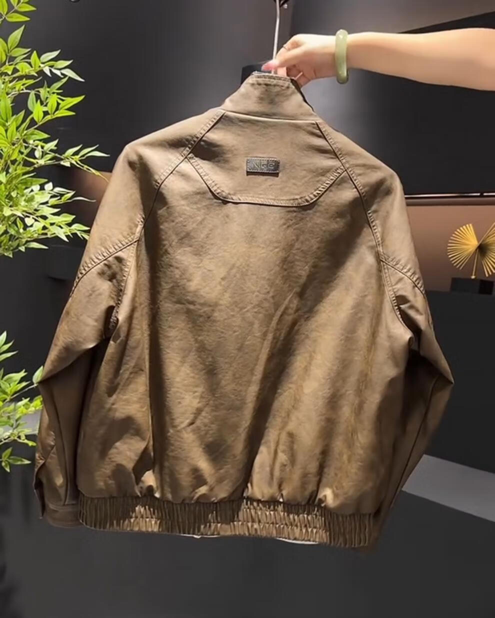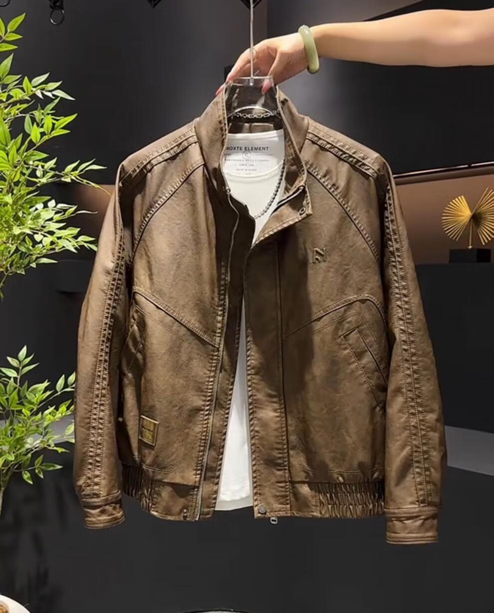 Yimeimei autumn and winter velvet American retro micro-wide leather jacket men's trendy street stand-up collar motorcycle jacket brown 2XL recommended 160-180Jin Jin equals 0.5 kg