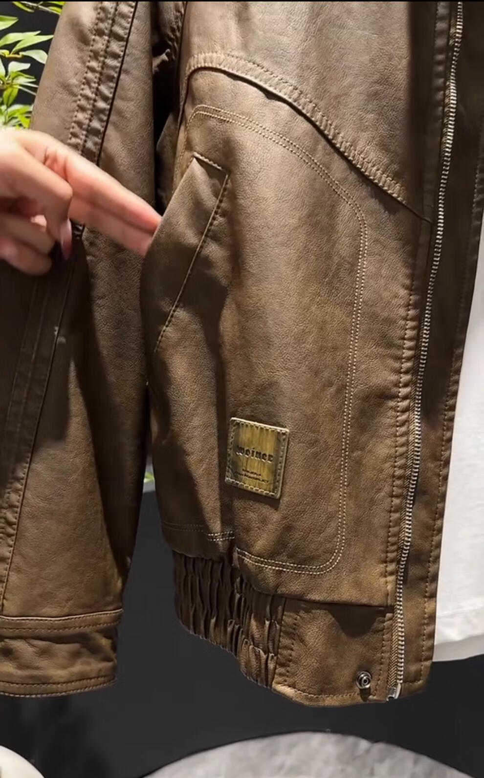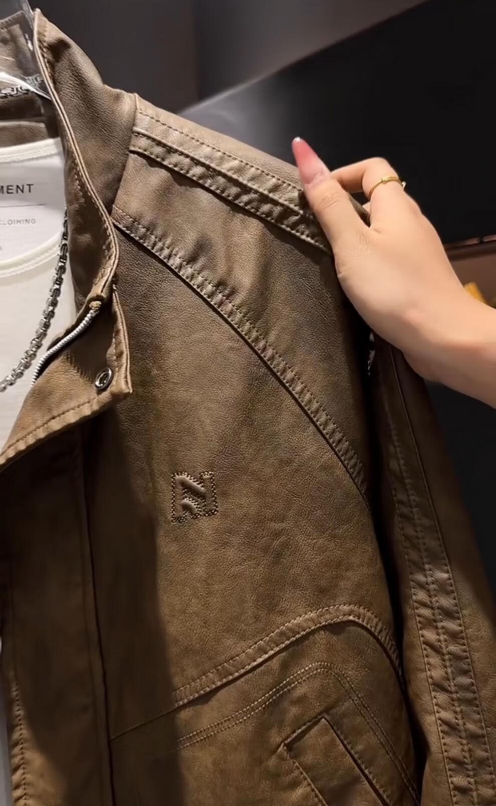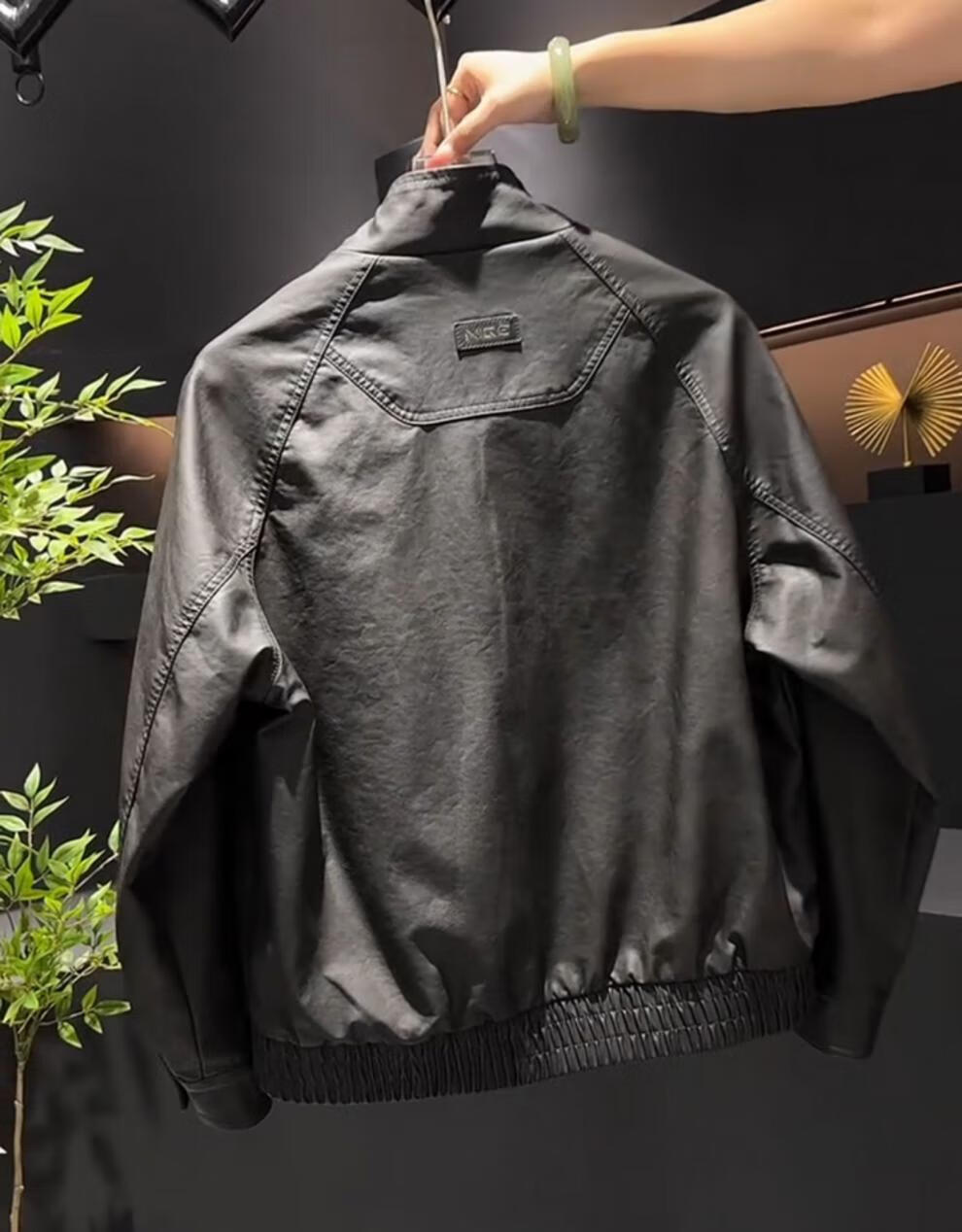 Yimeimei autumn and winter velvet American retro micro-wide leather jacket men's trendy street stand-up collar motorcycle jacket brown 2XL recommended 160-180Jin Jin equals 0.5 kg