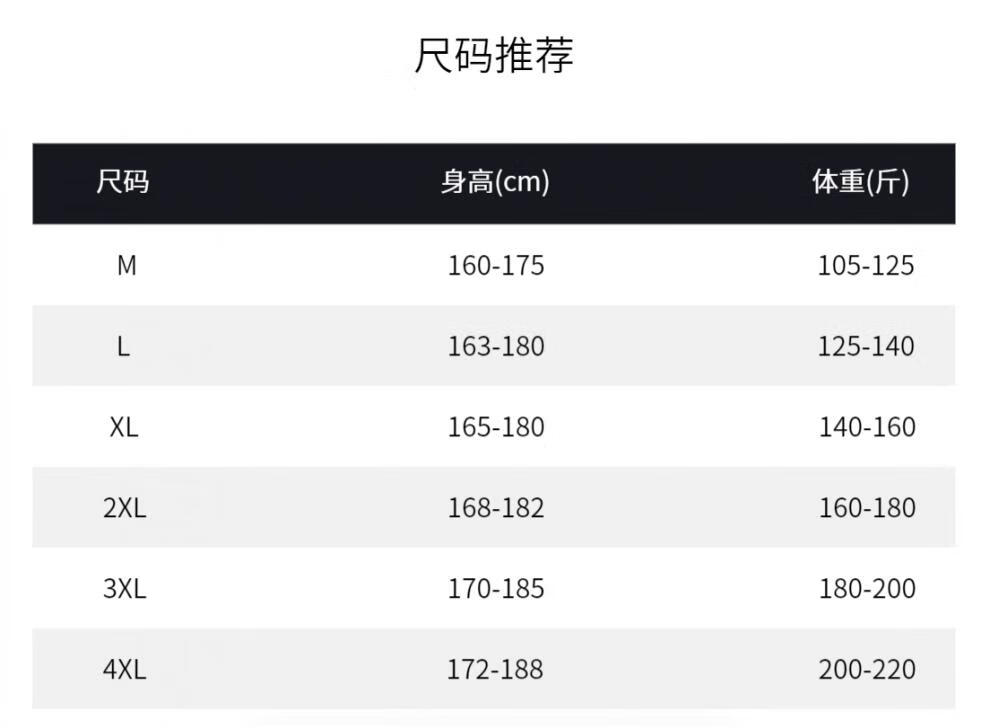China (cm) 165 / 88-90 170 / 96-98 175 / 108-110 180 / 118-122 185 / 126-130