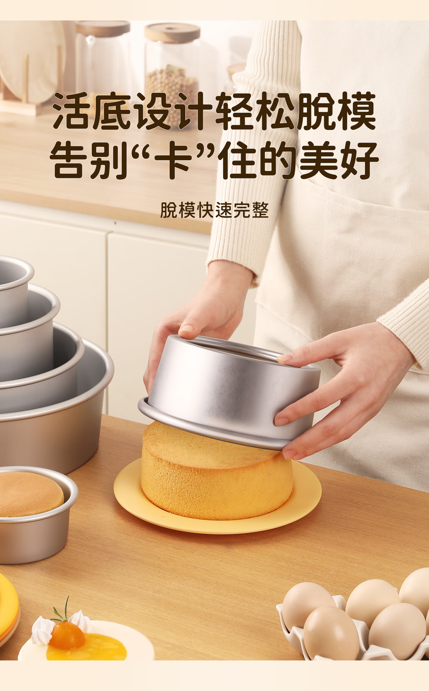 Anode living bottom chiffon cake mold baking mold 6 inches 8 inches 10 inches oven high temperature resistant food grade aluminum alloy 6 inches anode living bottom single product