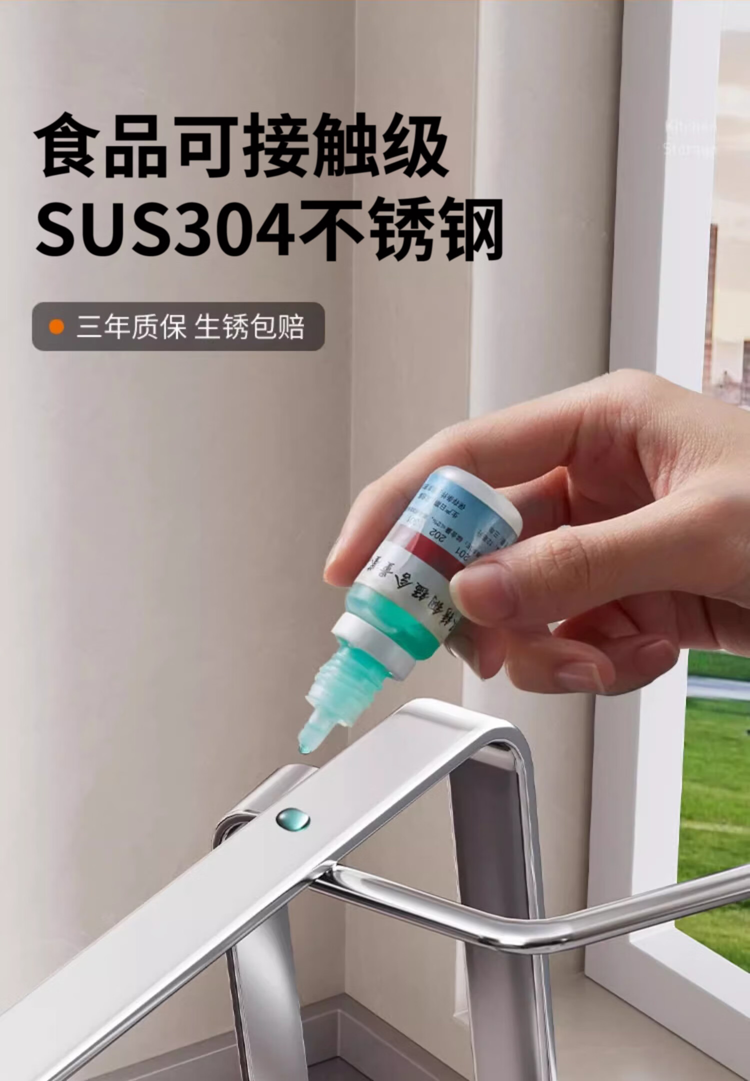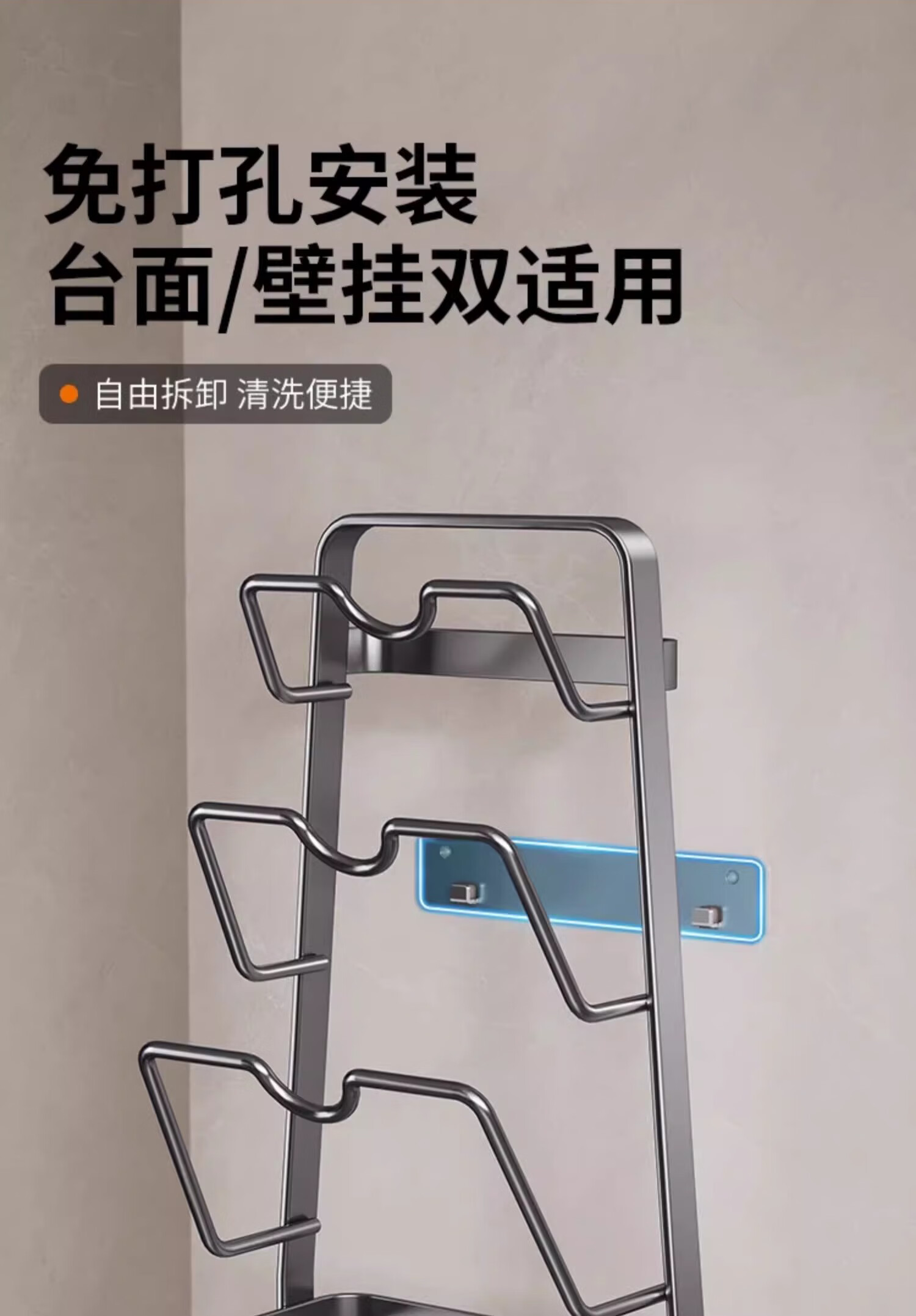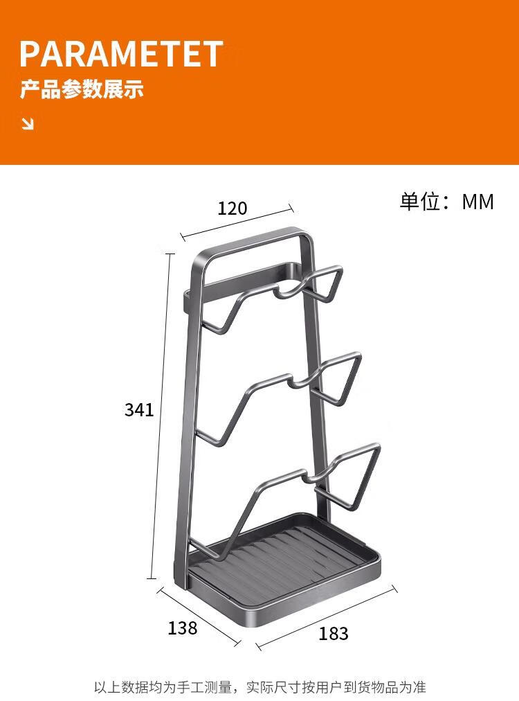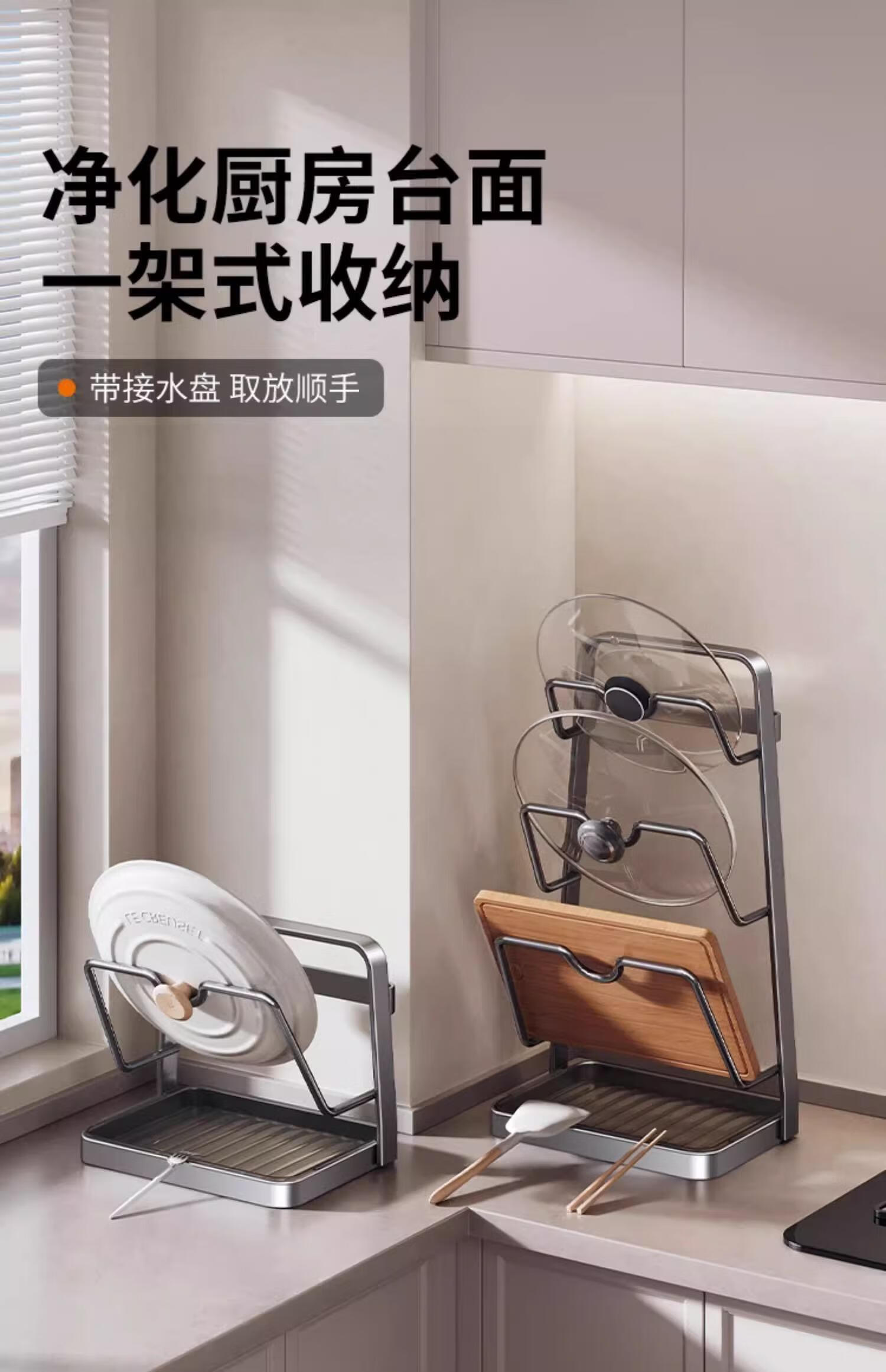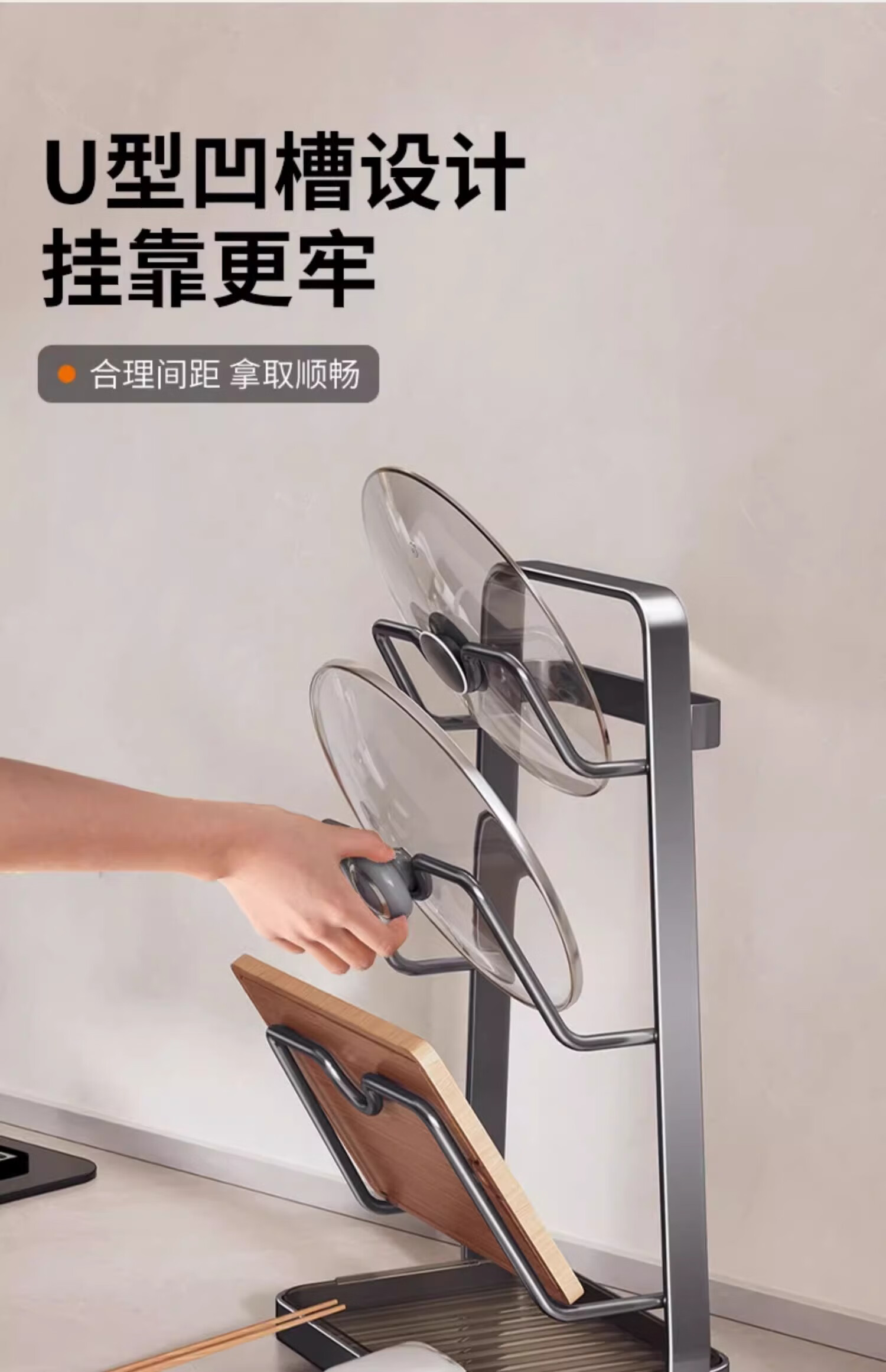 Chuidahuang 304 stainless steel kitchen rack wall-mounted punch-free pot lid rack multi-functional countertop chopping board cutting board spatula rack C3 natural color stainless steel three-layer