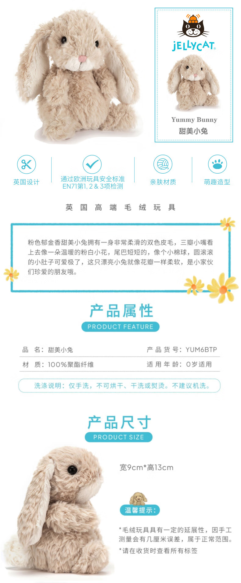 Jellycat Sweet Curly Doll Sweet Rabbit Beige Cute Plush Doll Toy Chinese Valentine's Day Gift for Girlfriend Sweet Rabbit Beige 15cm Genuine