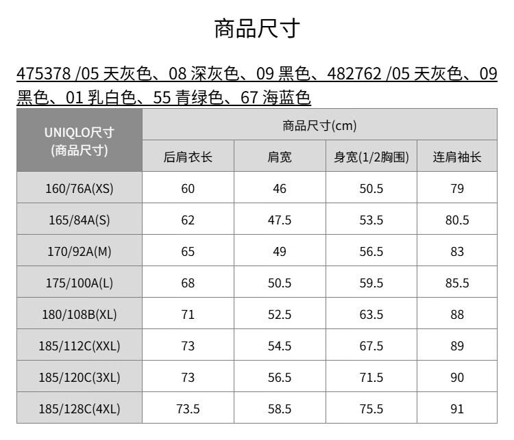 China (cm) 160-165/84-86 165-170 / 88-90 167-172 / 92-96 168-173 / 98-102 170-176 / 106-110