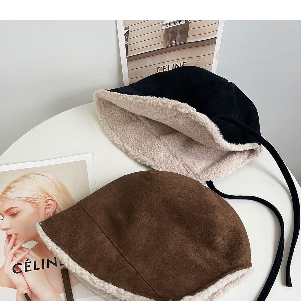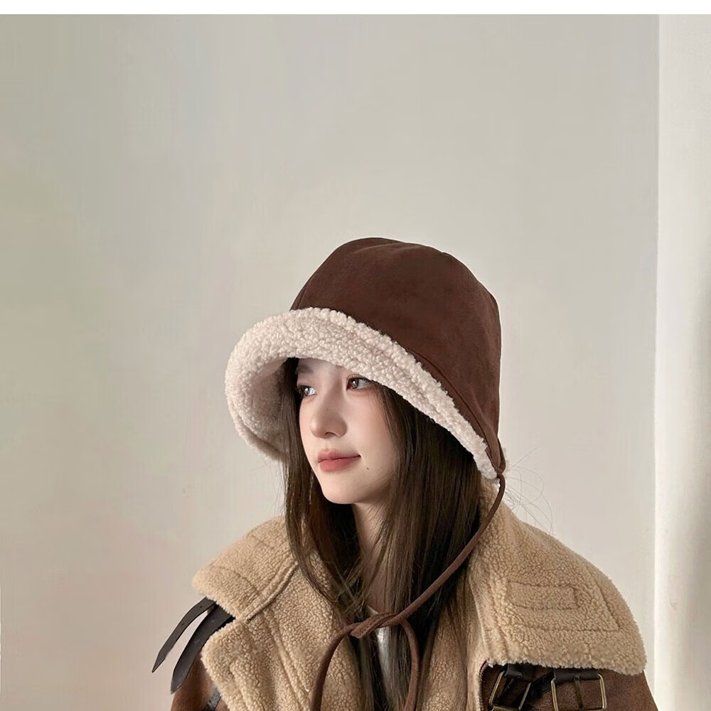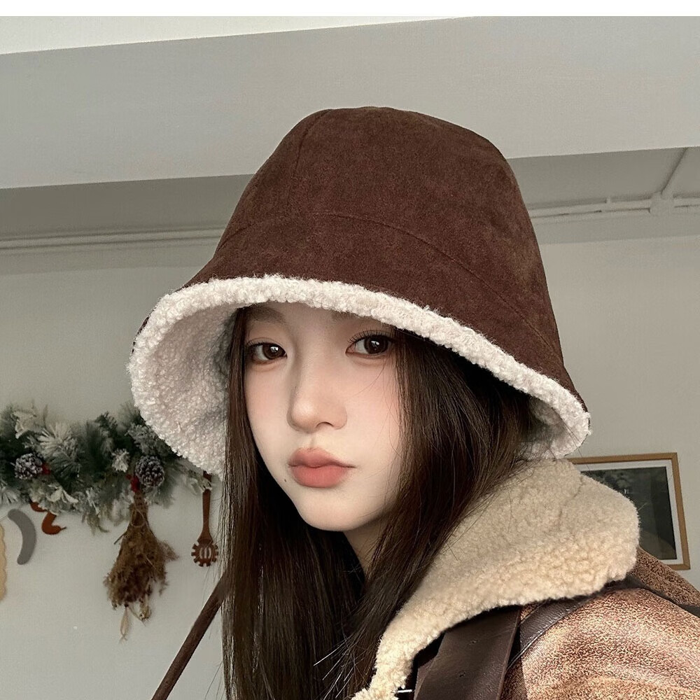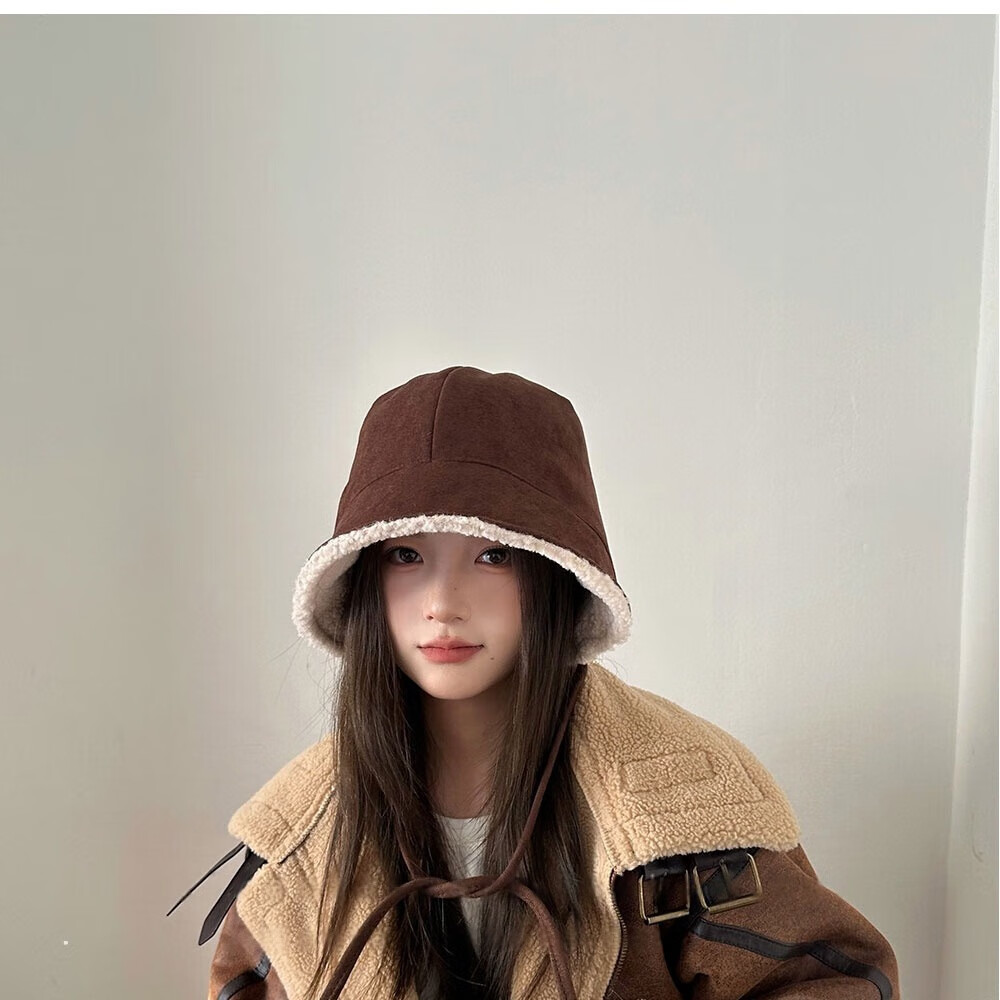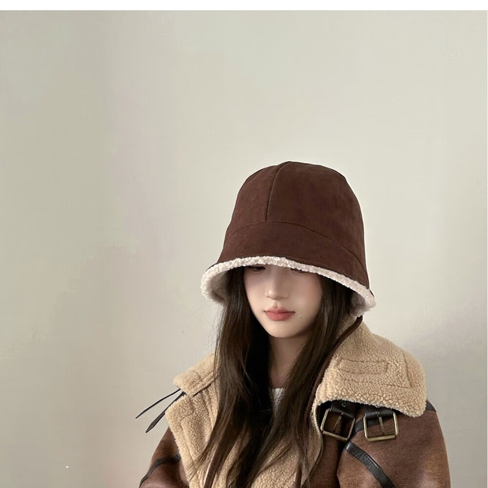 JIOESC hat women's retro Korean style ins style suede autumn and winter thickened warm ear protection Lei Feng hat basin hat fisherman hat brown hat circumference 54-58cm 1 piece